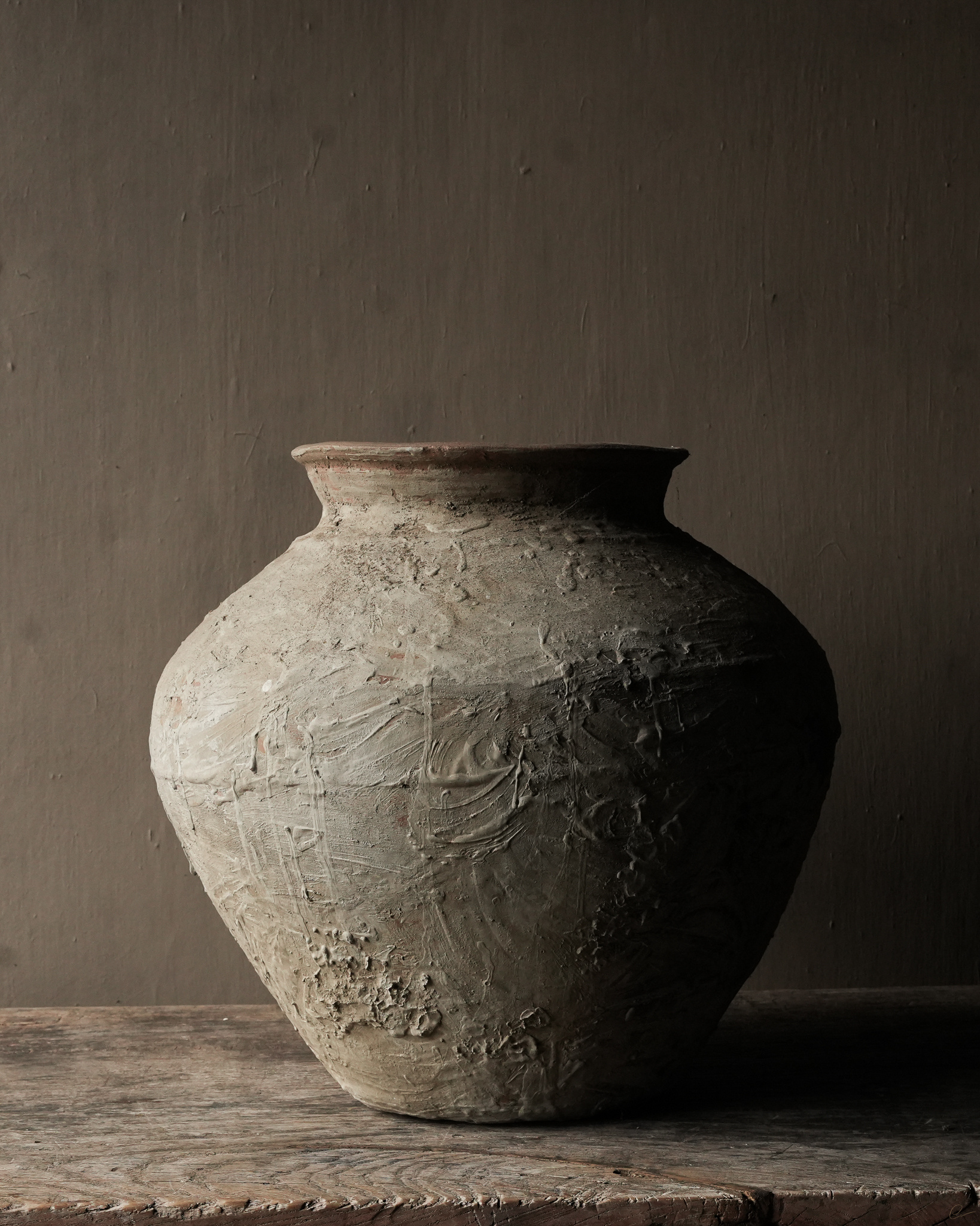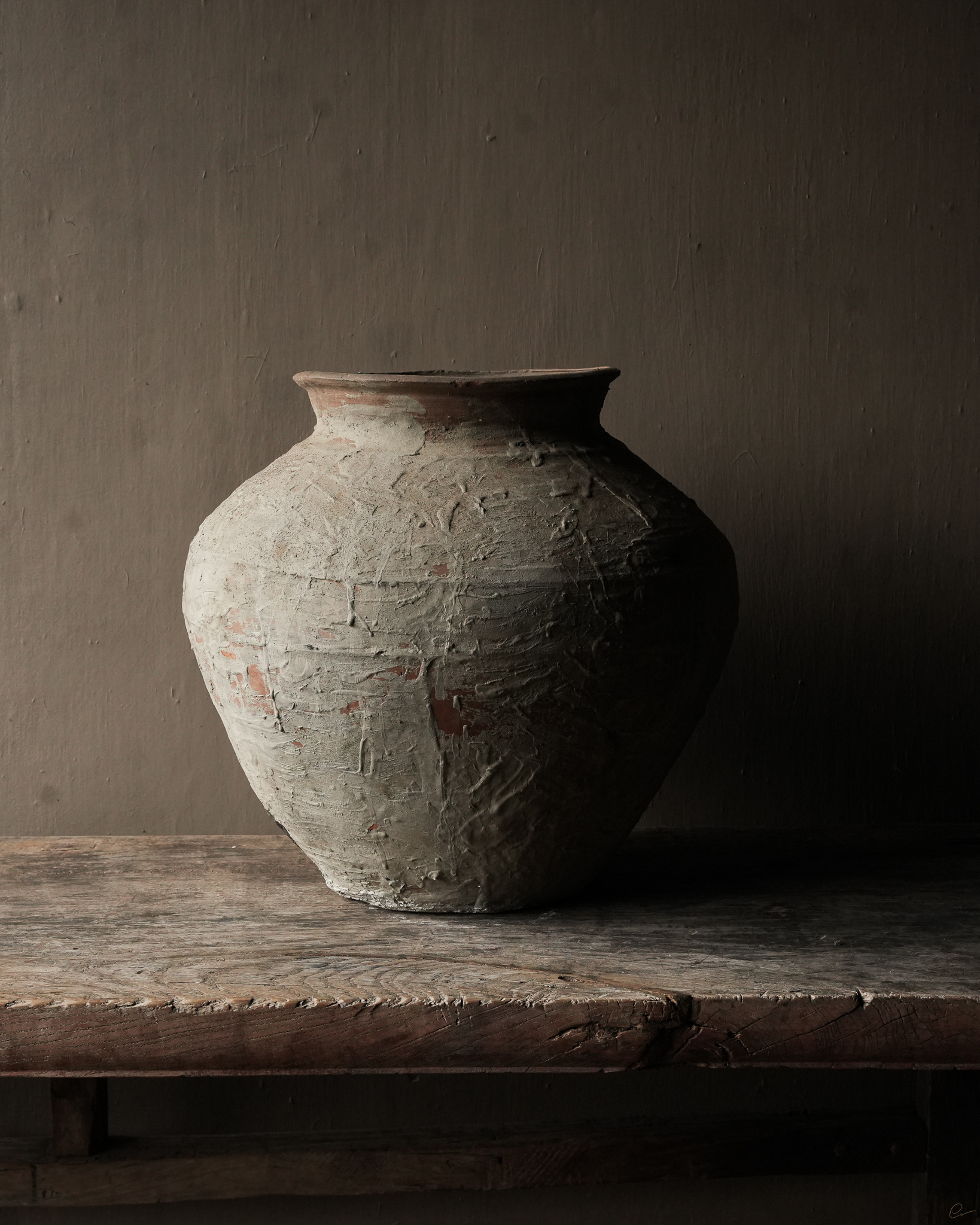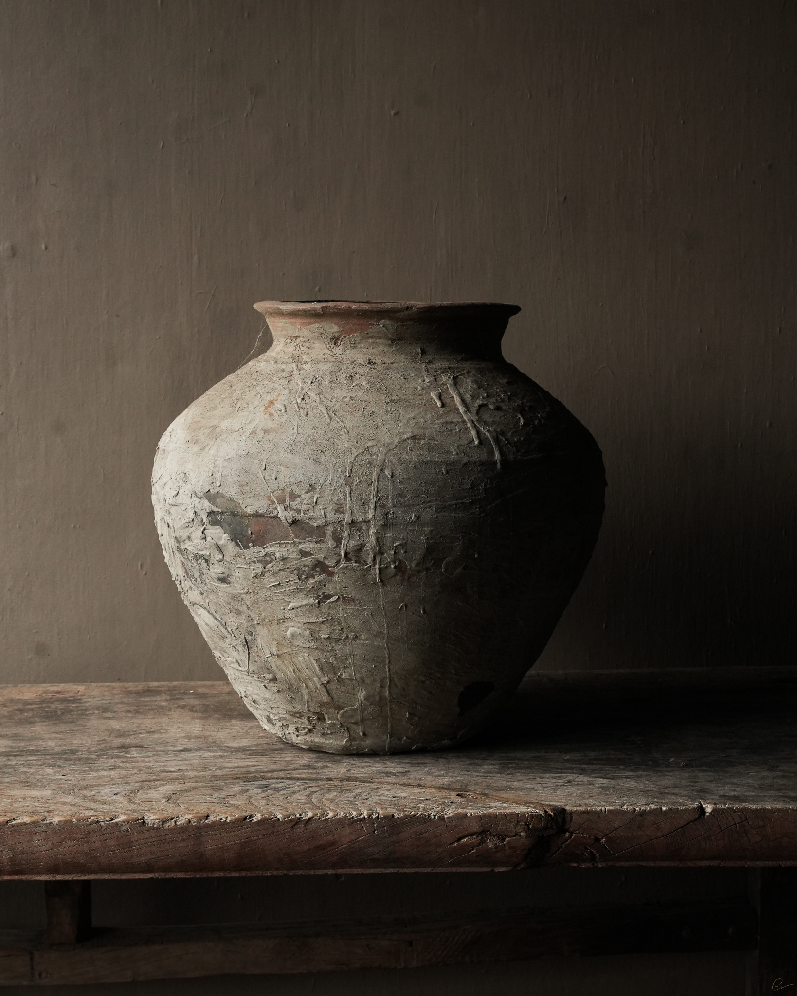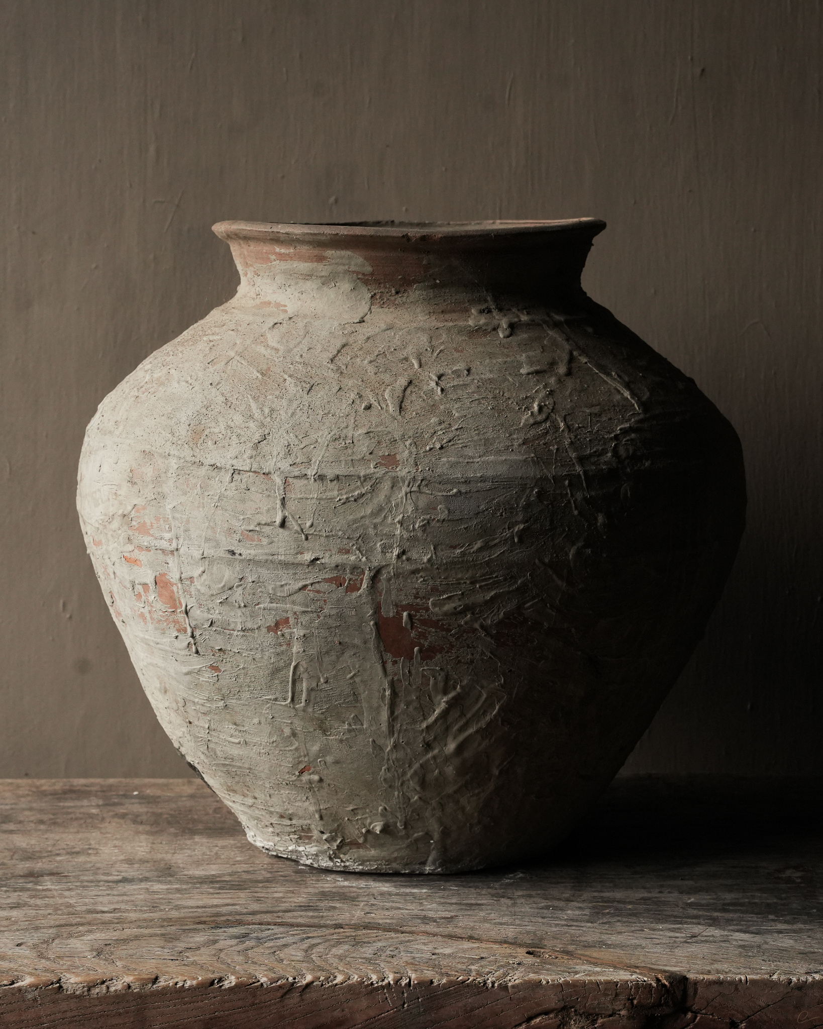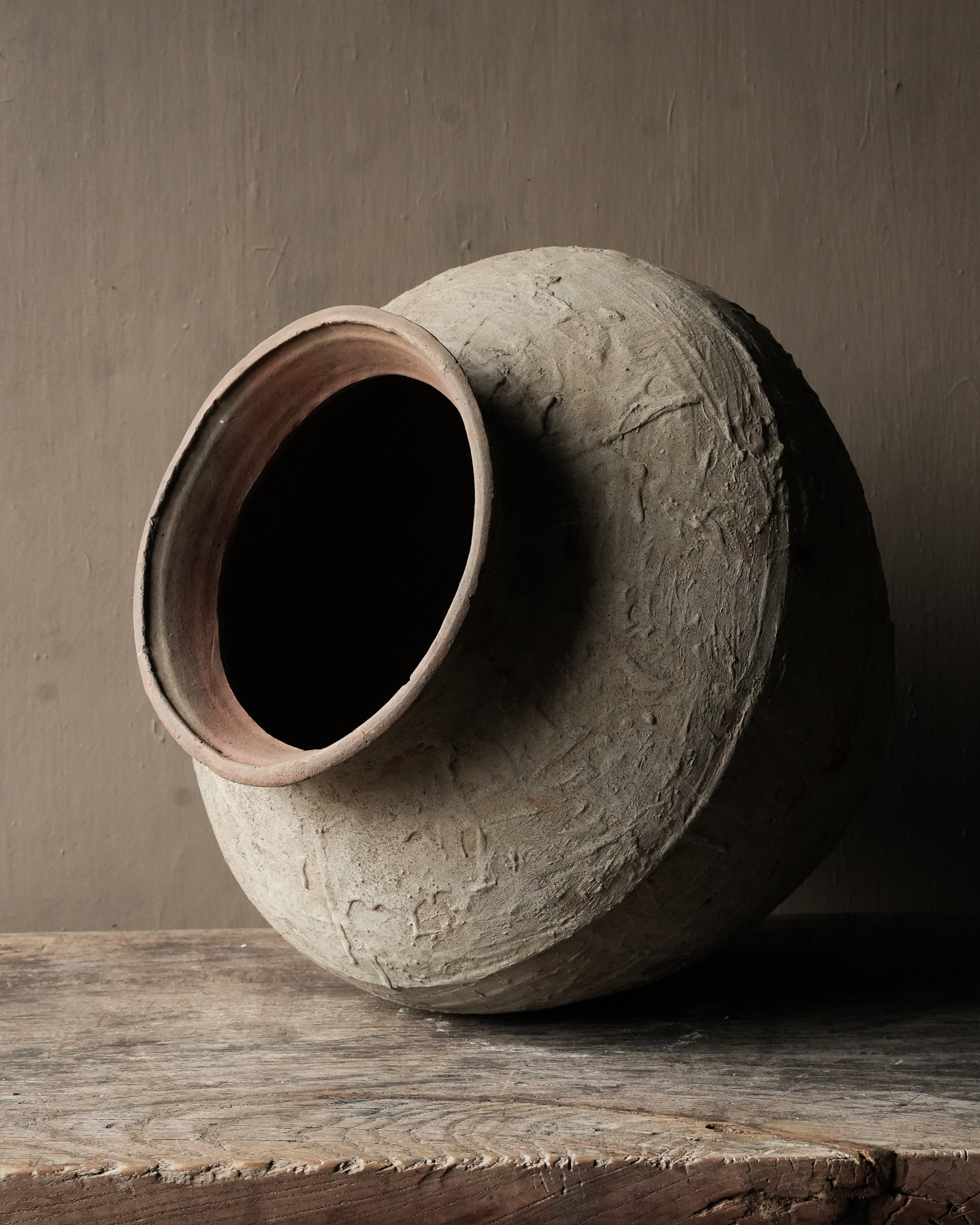 Alter authentischer Steingutkrug/indischer Wassertopf