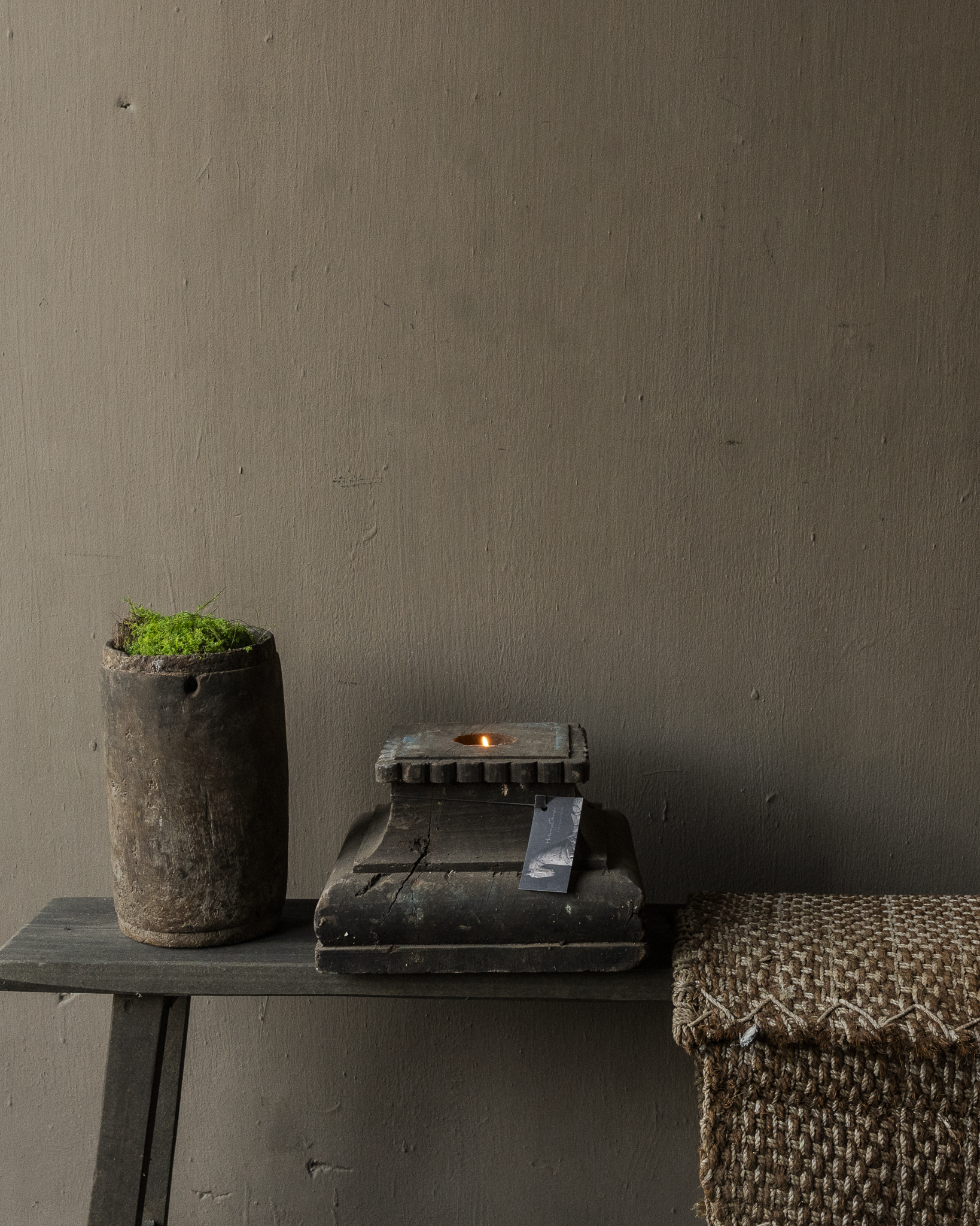 Ideal für Stumpenkerzen oder LED-Kerzen, kombiniert mit Grünpflanzen, einem Kranz oder saisonaler Dekoration. Die natürliche Patina und die einzigartige Form machen jedes Stück zu einem Unikat und fügen sich mühelos in ein rustikales, schlichtes und gemütliches Interieur ein.