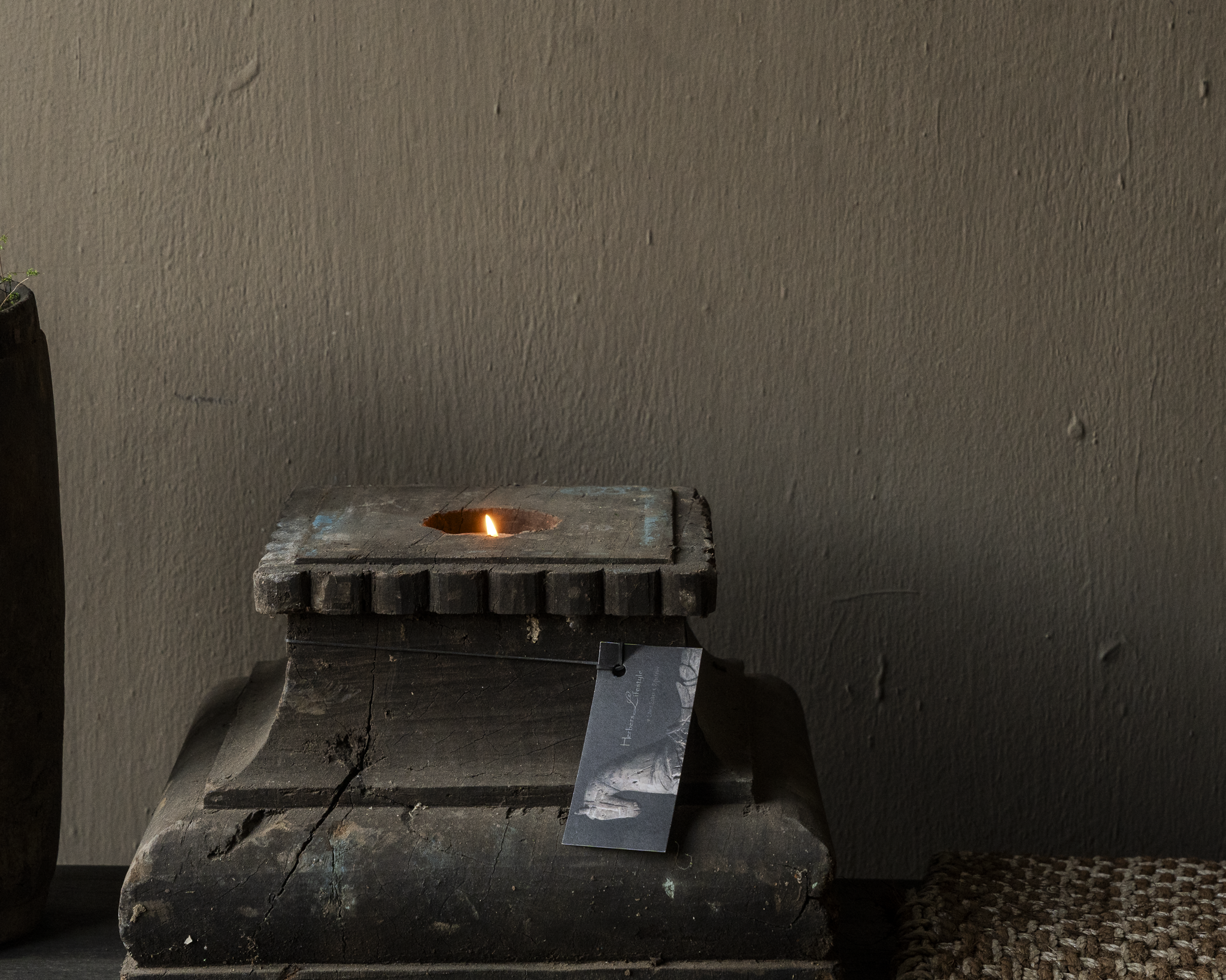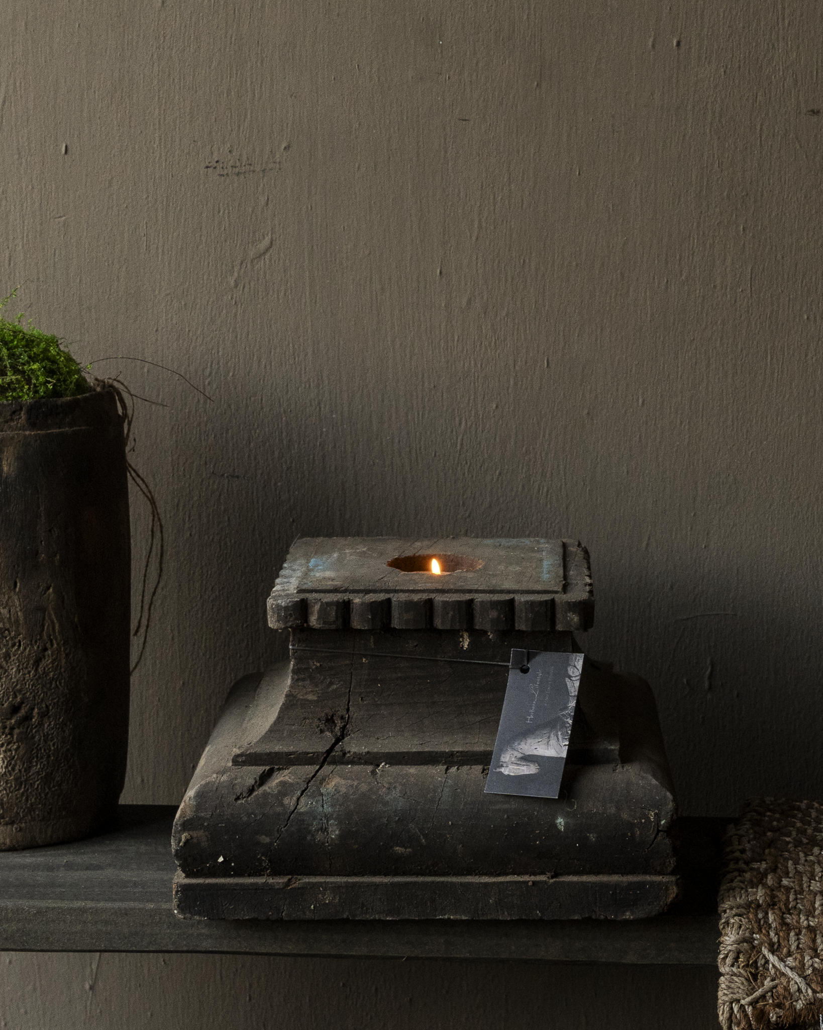 Dieser robuste Holzkerzenständer verleiht Ihrem Interieur sofort Wärme und Charakter. Er wurde aus einem alten indischen Gebäudefragment gefertigt und diente einst als Sockel oder Teil einer Säule. Nun erstrahlt er als authentischer Kerzenständer in neuem Glanz – mit wunderschönen, handgeschnitzten Details und einem charmanten Vintage-Look.