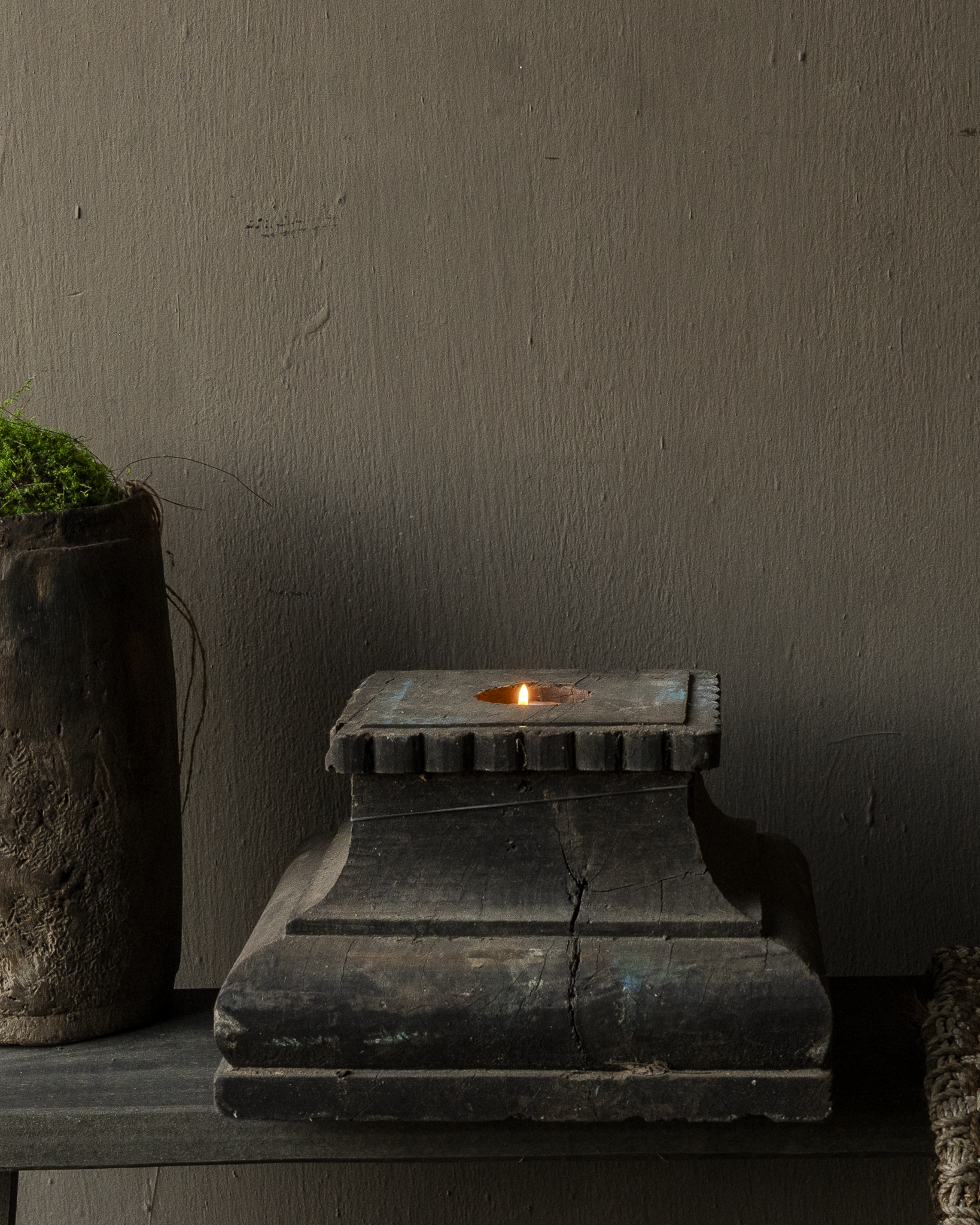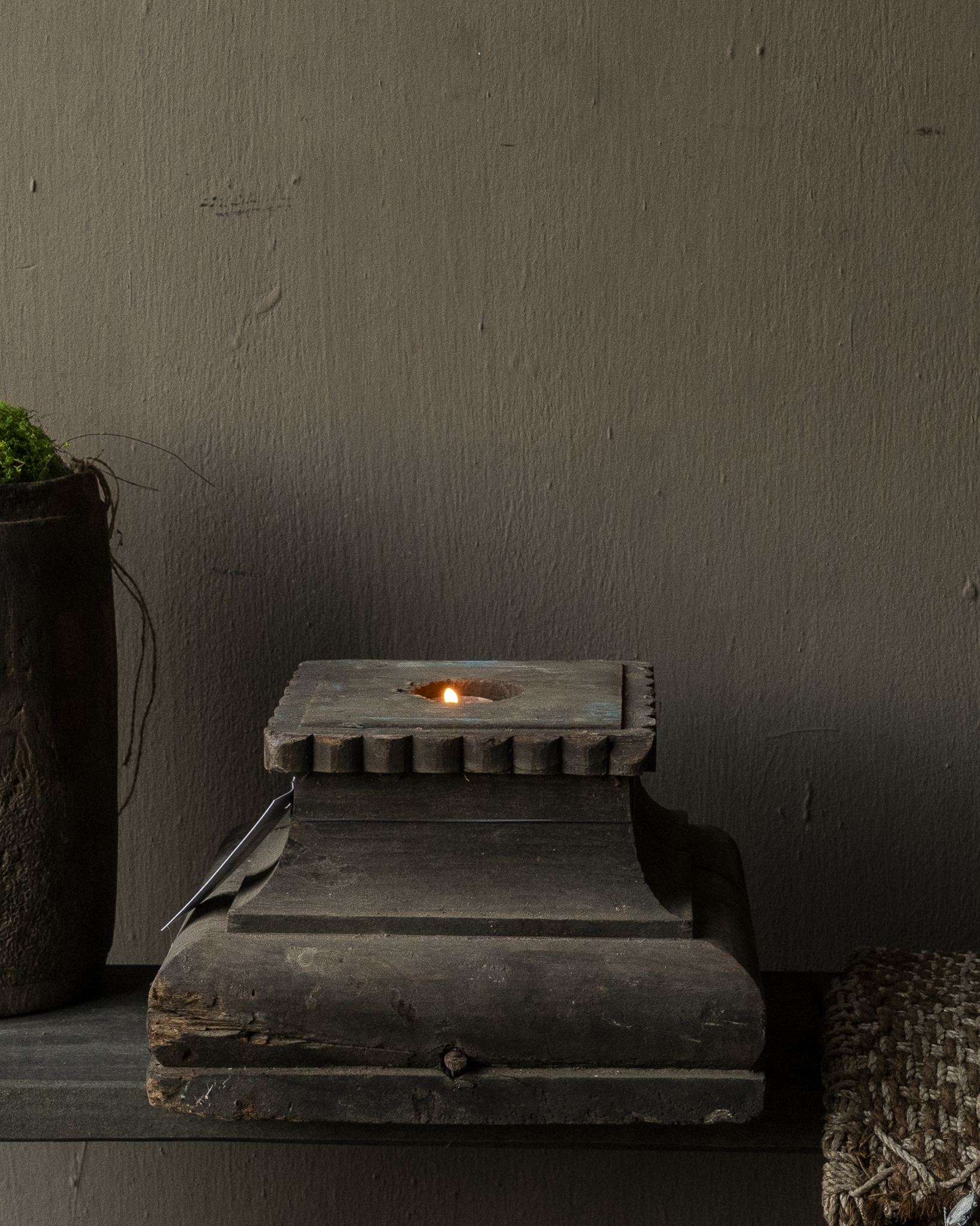 Alter, authentischer Holzsockel – einzigartiger Sockelkerzenständer aus Indien