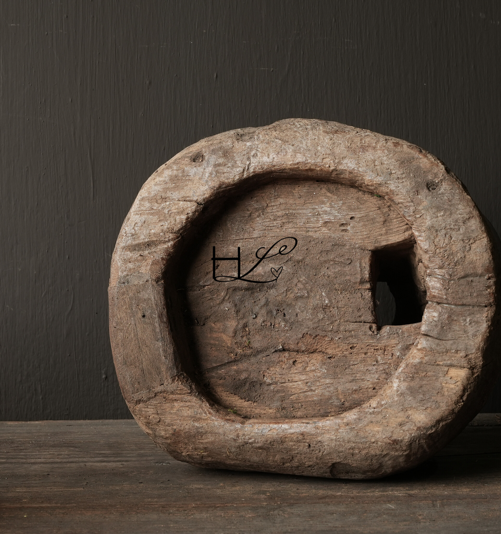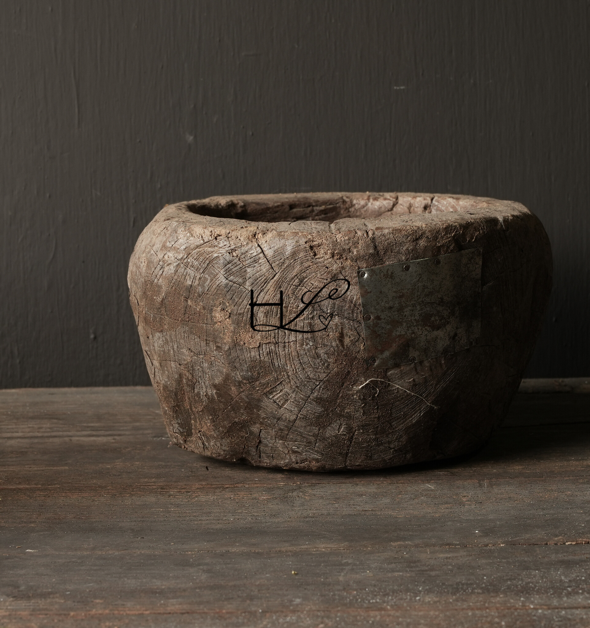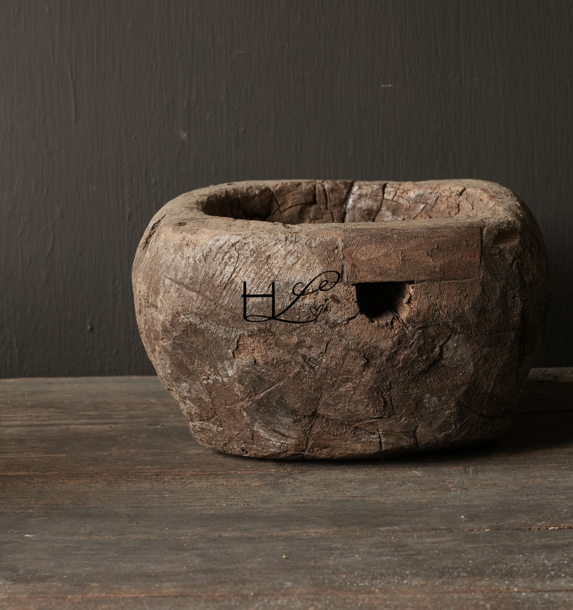 Alte, robuste, authentische Wasserschale aus Holz