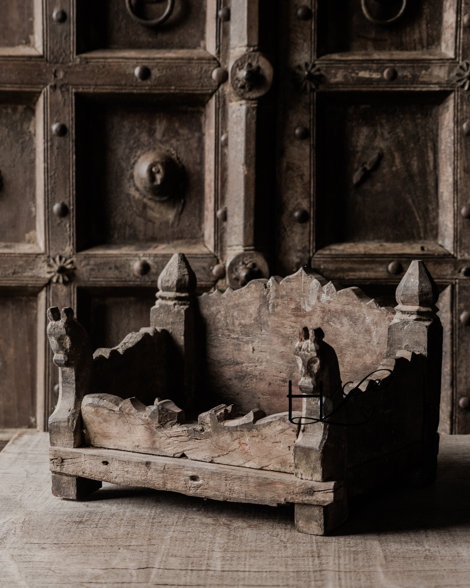 HOFFZ Alter indischer Bajot-Tisch mit Pferden | Tempeltisch