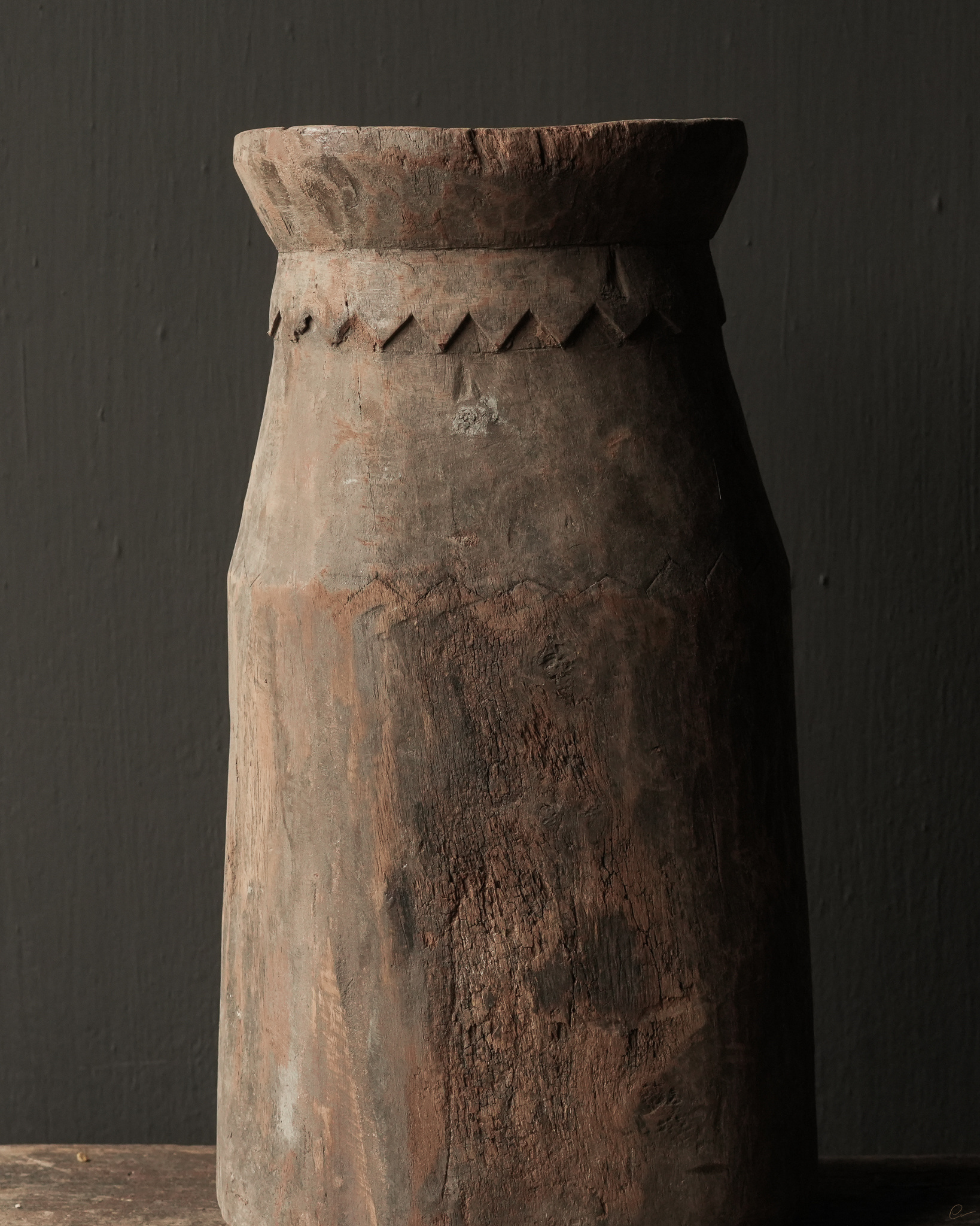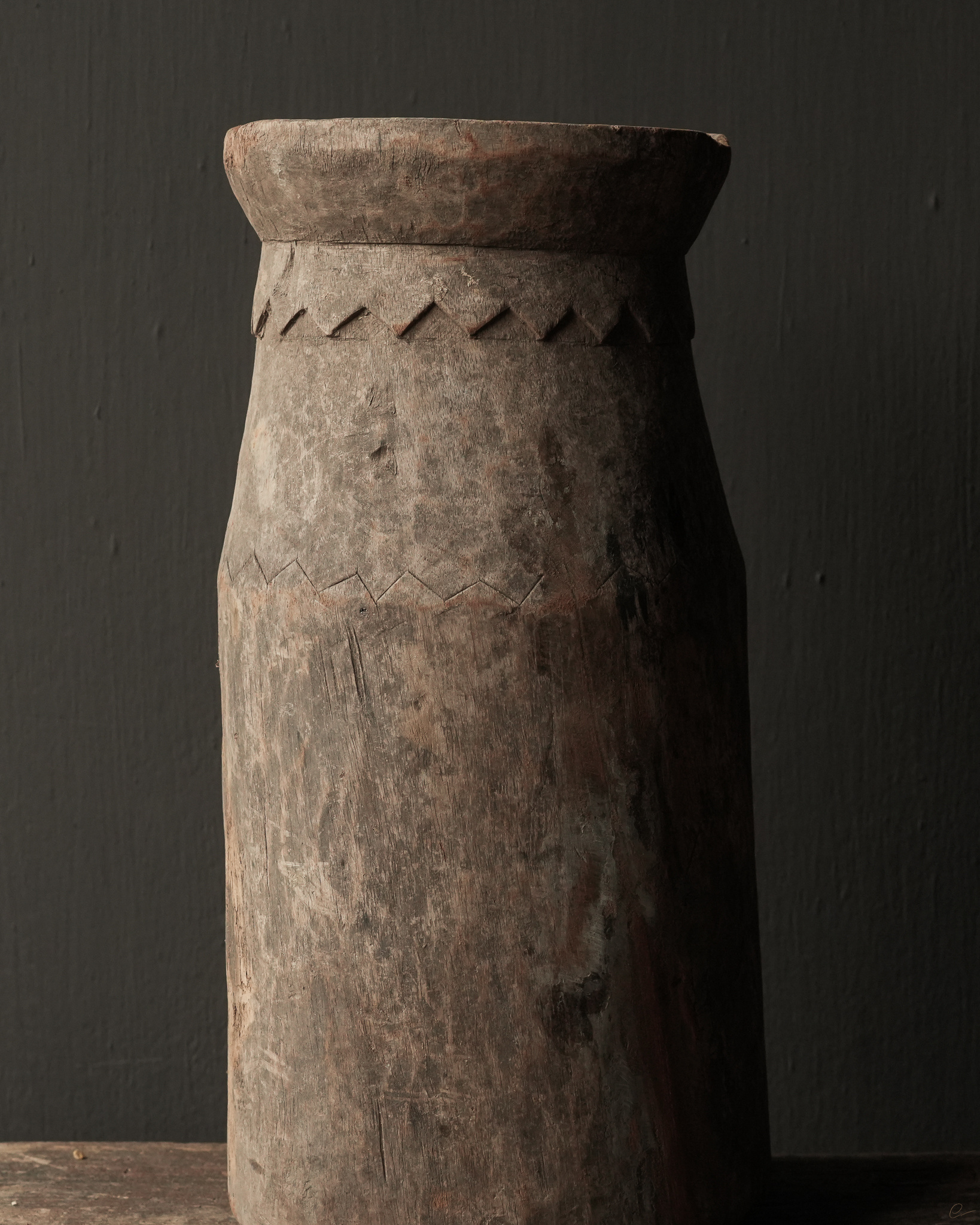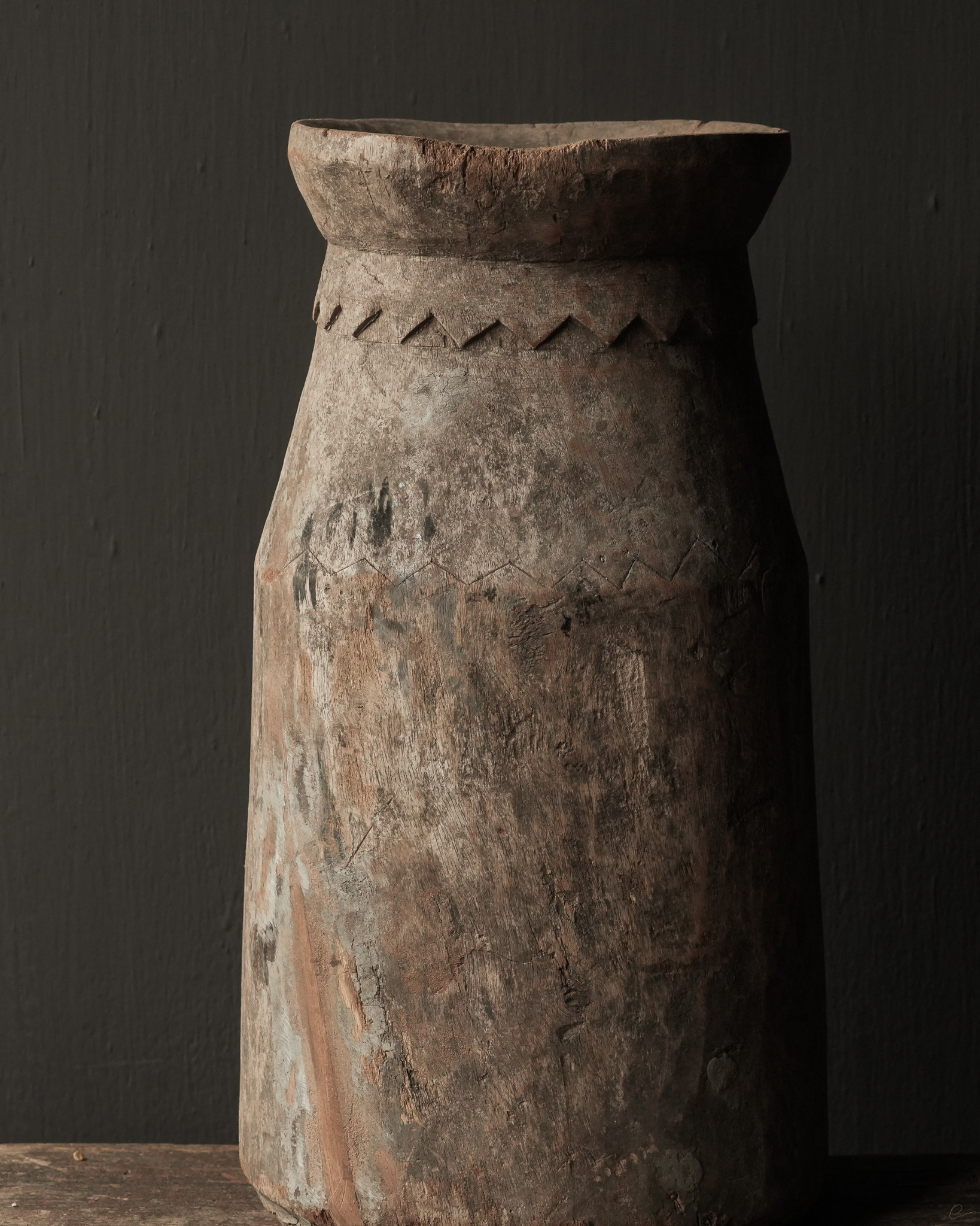 Alter nepalesischer Wabi Sabi Krug aus Holz
