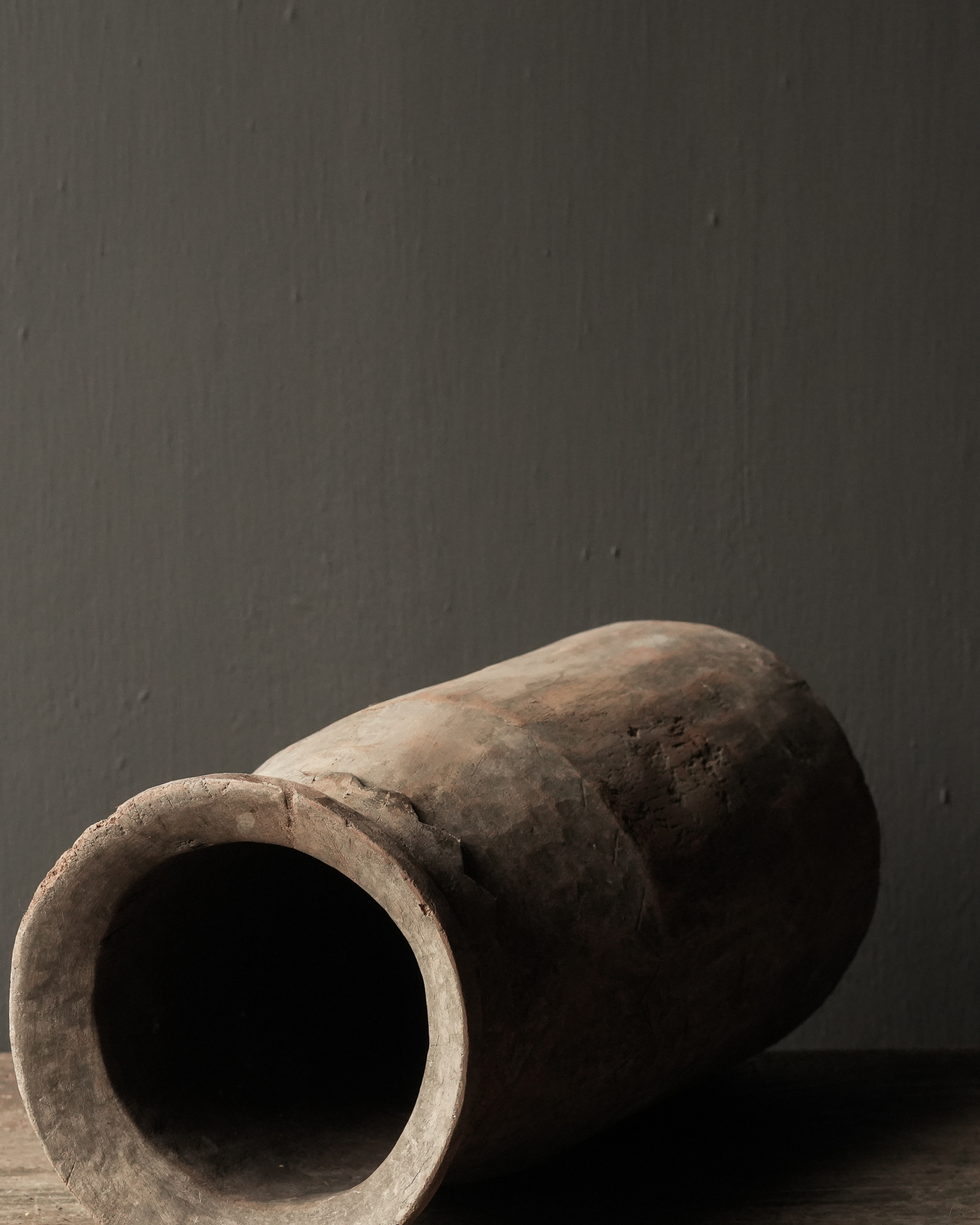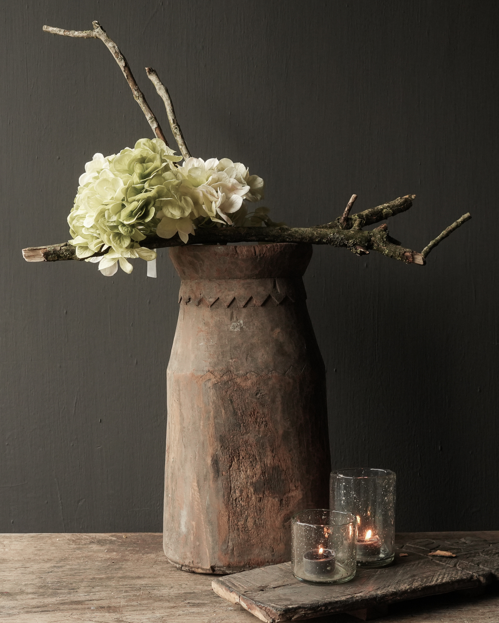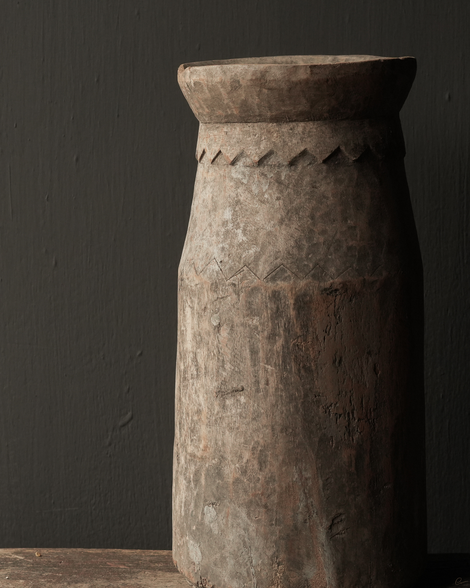 Alter nepalesischer Wabi Sabi Krug aus Holz