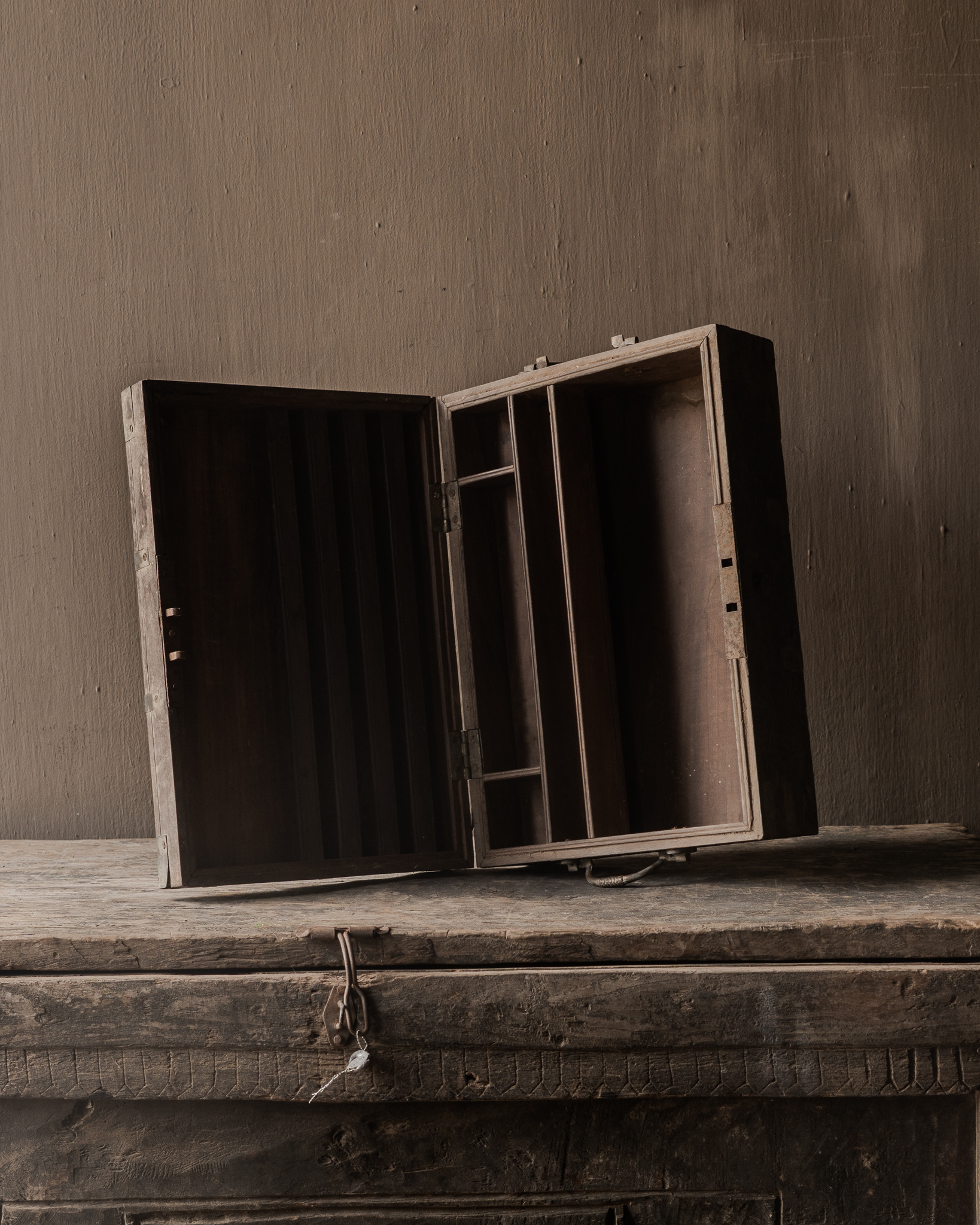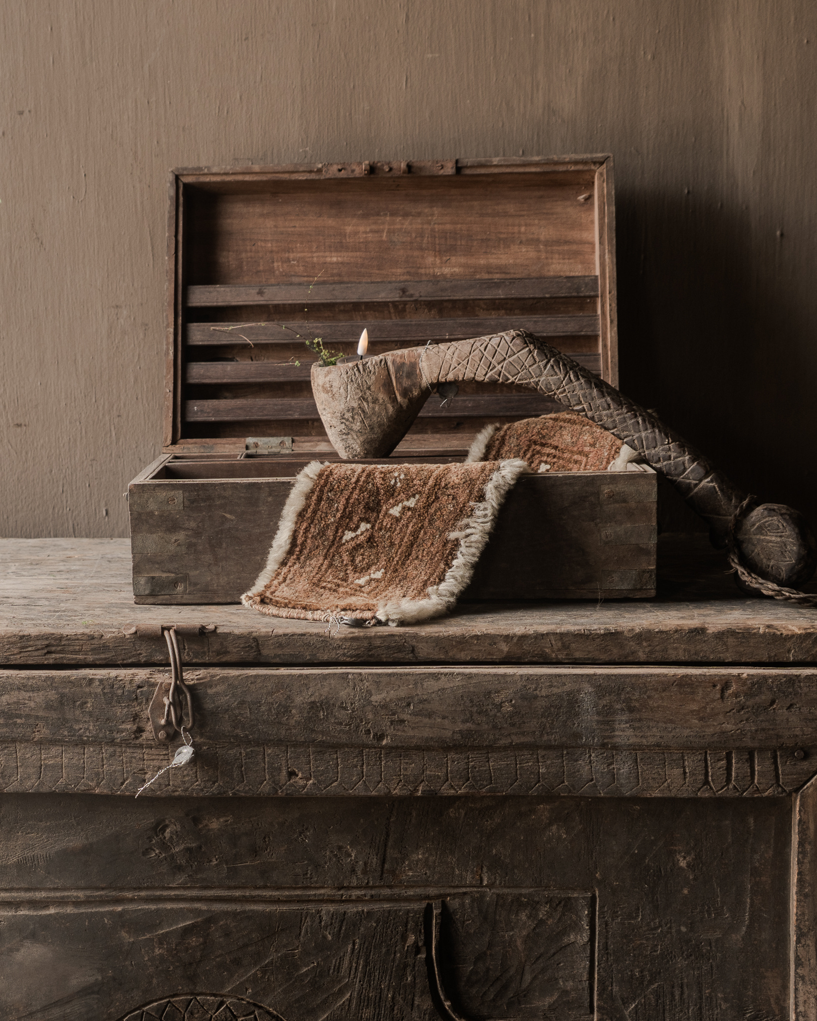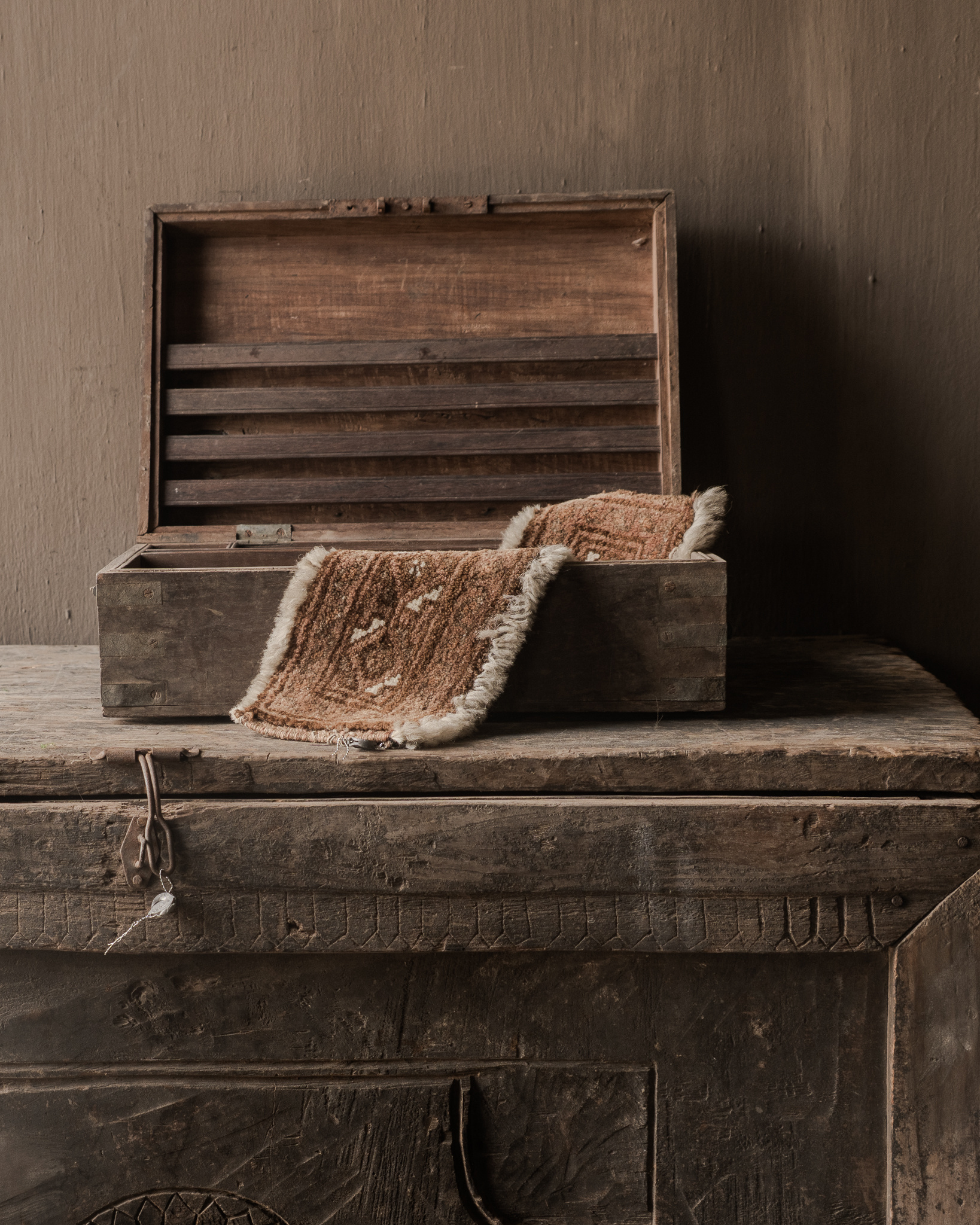 Jede Truhe wird in Handarbeit gefertigt und über Jahre hinweg geformt, wodurch eine wunderschöne Patina und dezente Unvollkommenheiten entstehen, die ihren Charme sogar noch unterstreichen. Der Innenraum bietet praktischen Stauraum, und im geschlossenen Zustand eignet sich die Truhe auch hervorragend als Dekorationsobjekt.