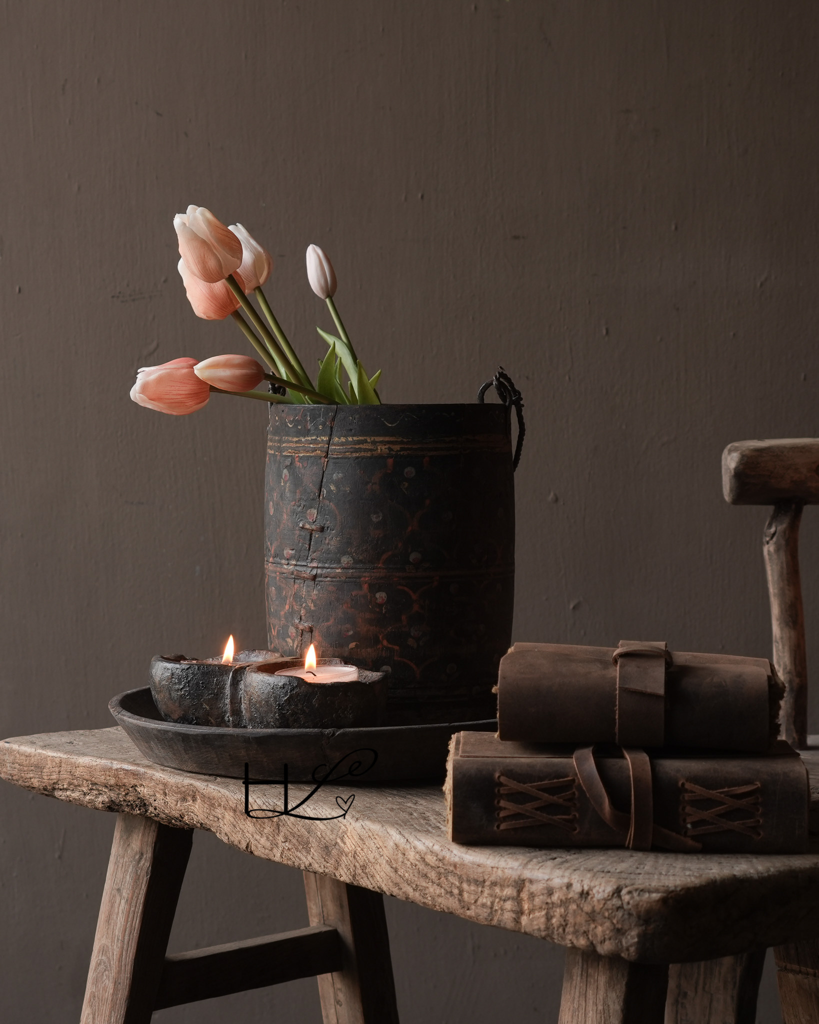 Heute werden diese Töpfe vorwiegend als Dekorationsobjekte in einem rustikalen, schlichten oder Wabi-Sabi-Interieur verwendet. Sie sehen wunderschön auf einem Tisch, in einer Vitrine oder in Kombination mit anderen alten Holzgegenständen aus.