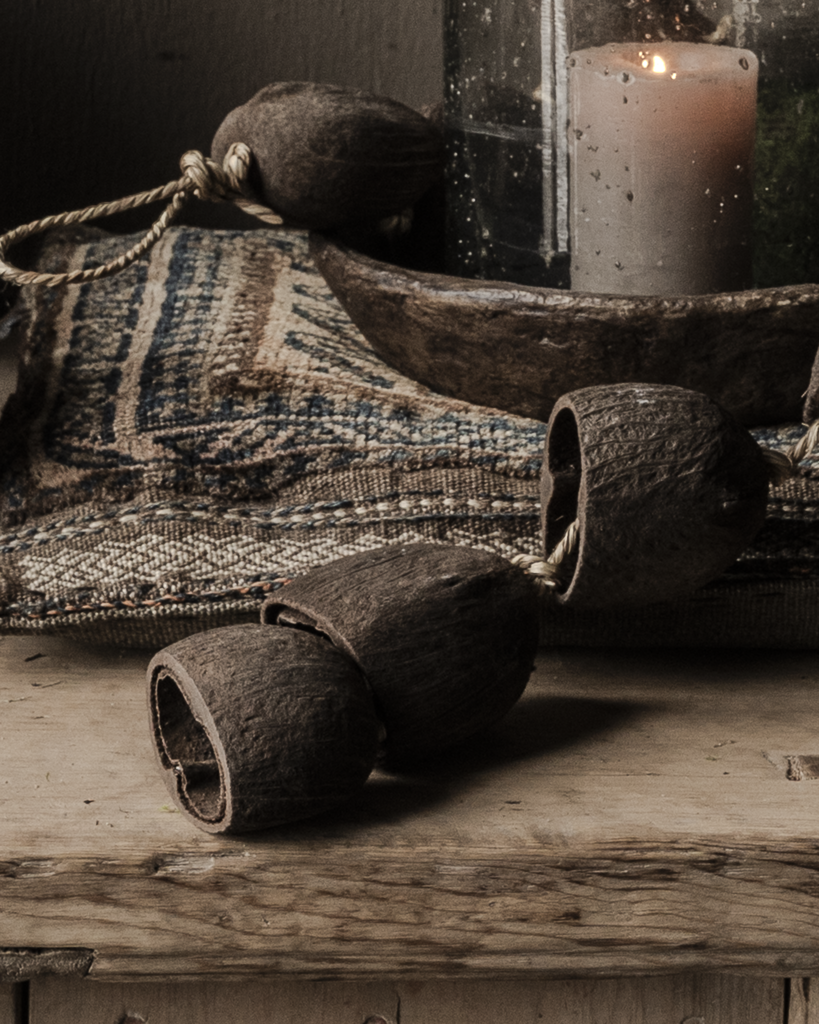 Diese dekorative Palmensamengirlande in Naturtönen verleiht Ihrem Interieur sofort Wärme und Charakter. Hergestellt aus getrockneten Palmensamenkapseln, besticht sie durch ihre schlichte, natürliche Optik, die perfekt zum Landhaus- und Wabi-Sabi-Einrichtungsstil passt.