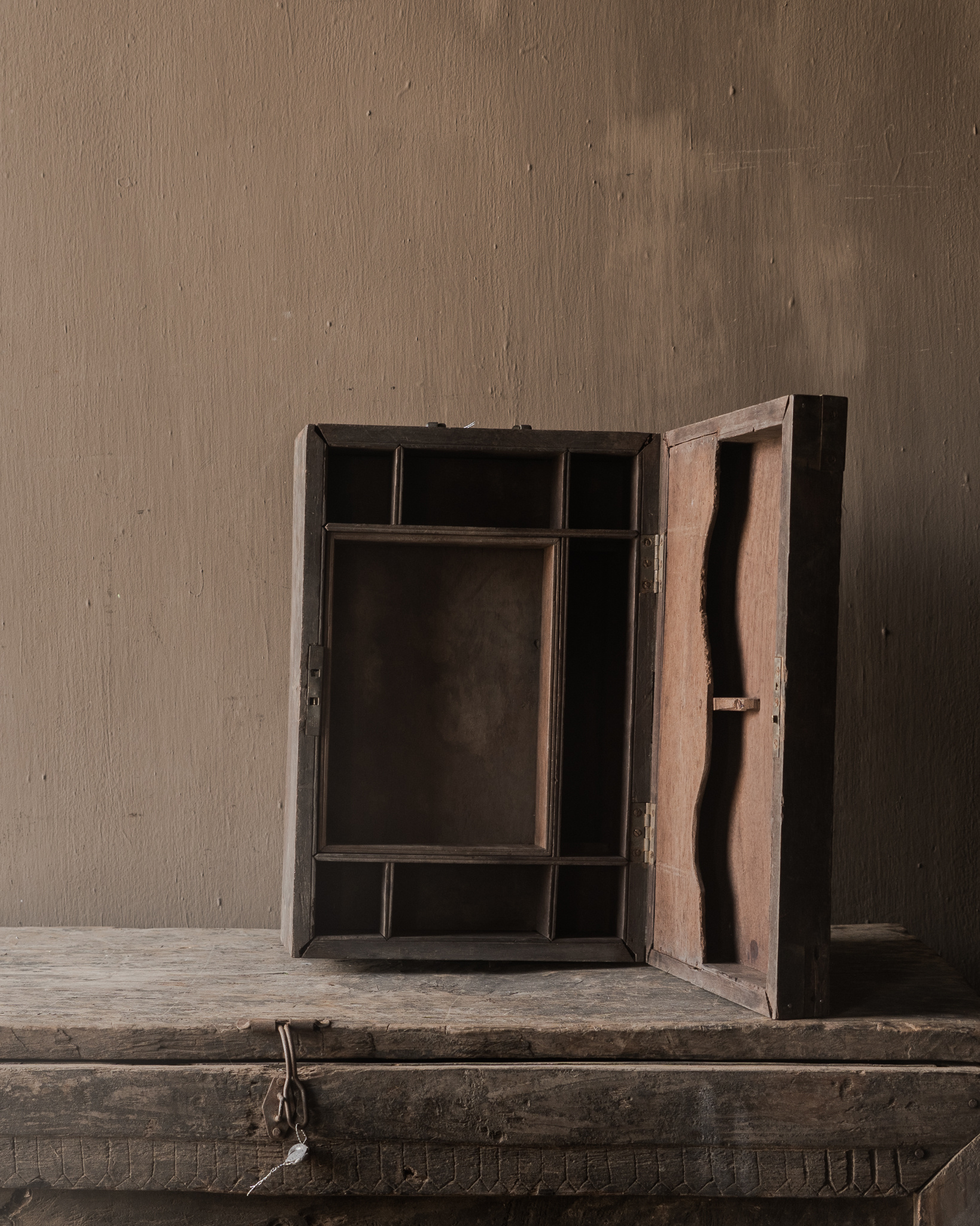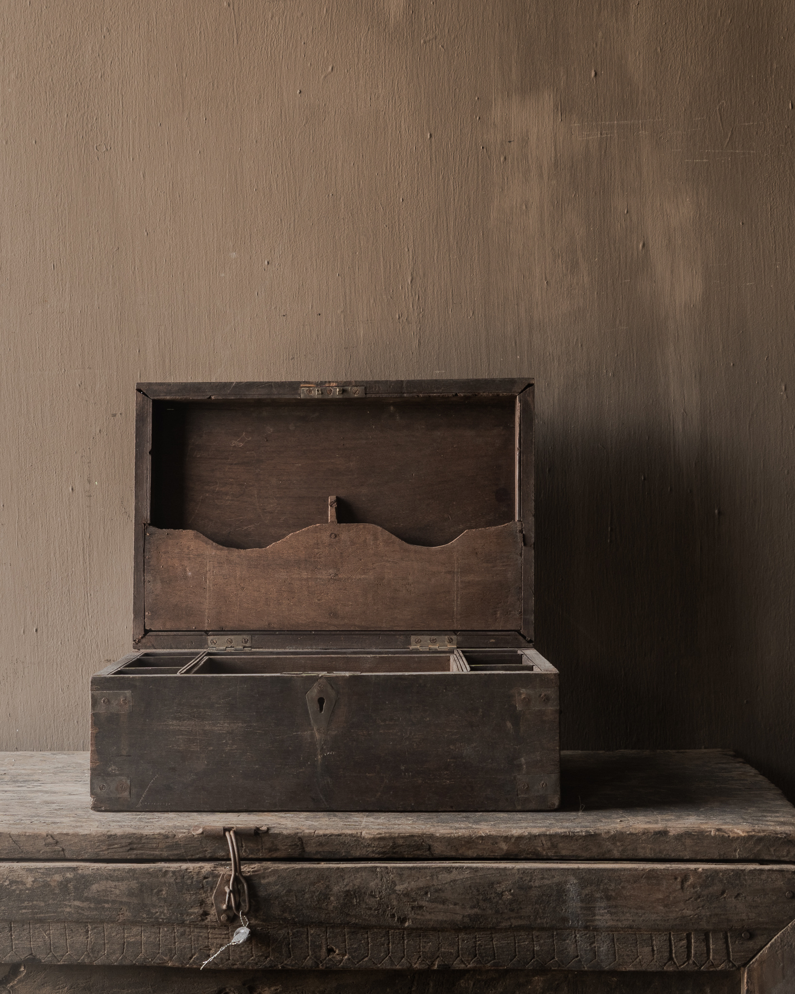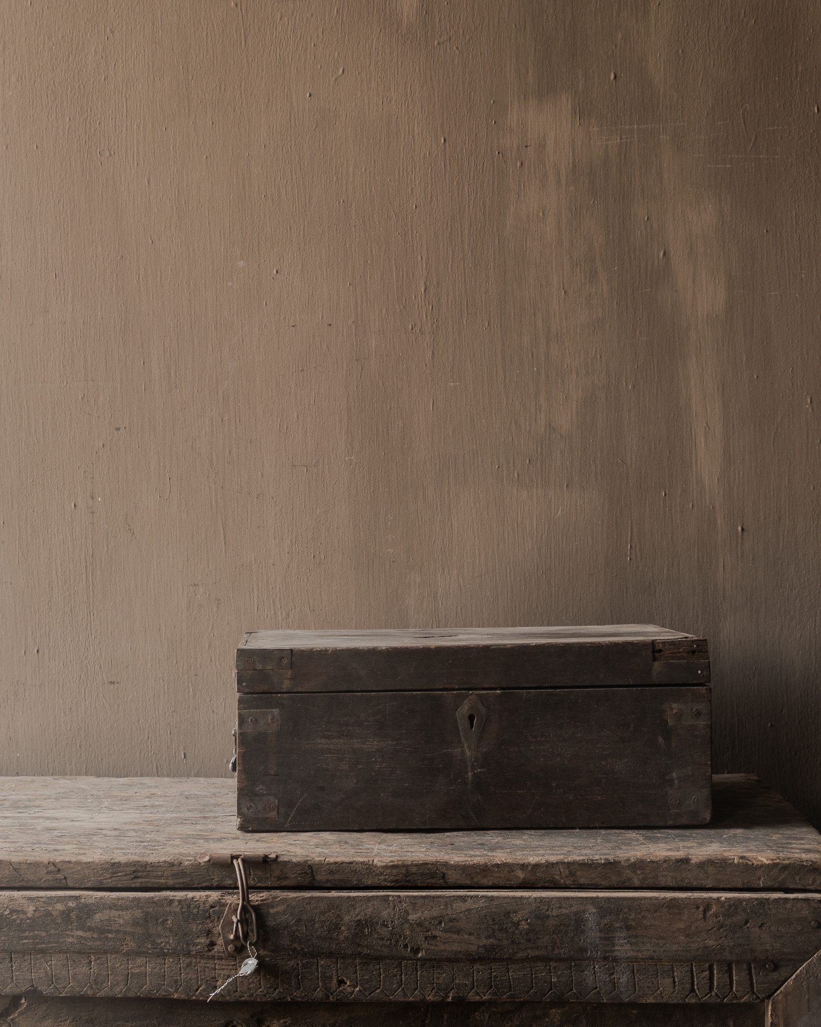 HOFFZ Antike Holztruhe Hoffz – Unikat. Maße: 47 x 31 x H 18 cm.