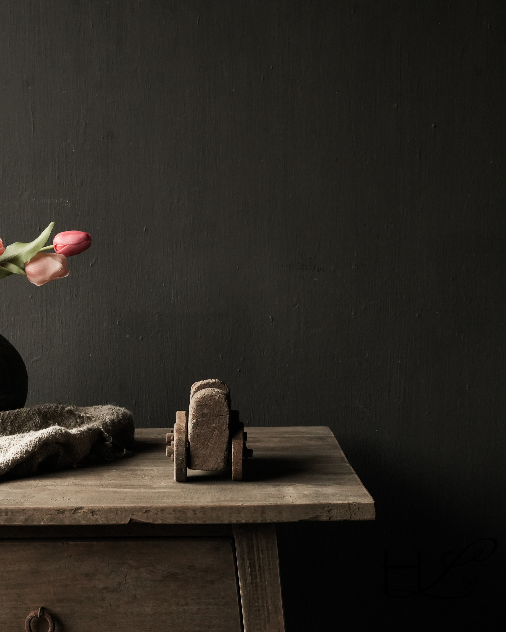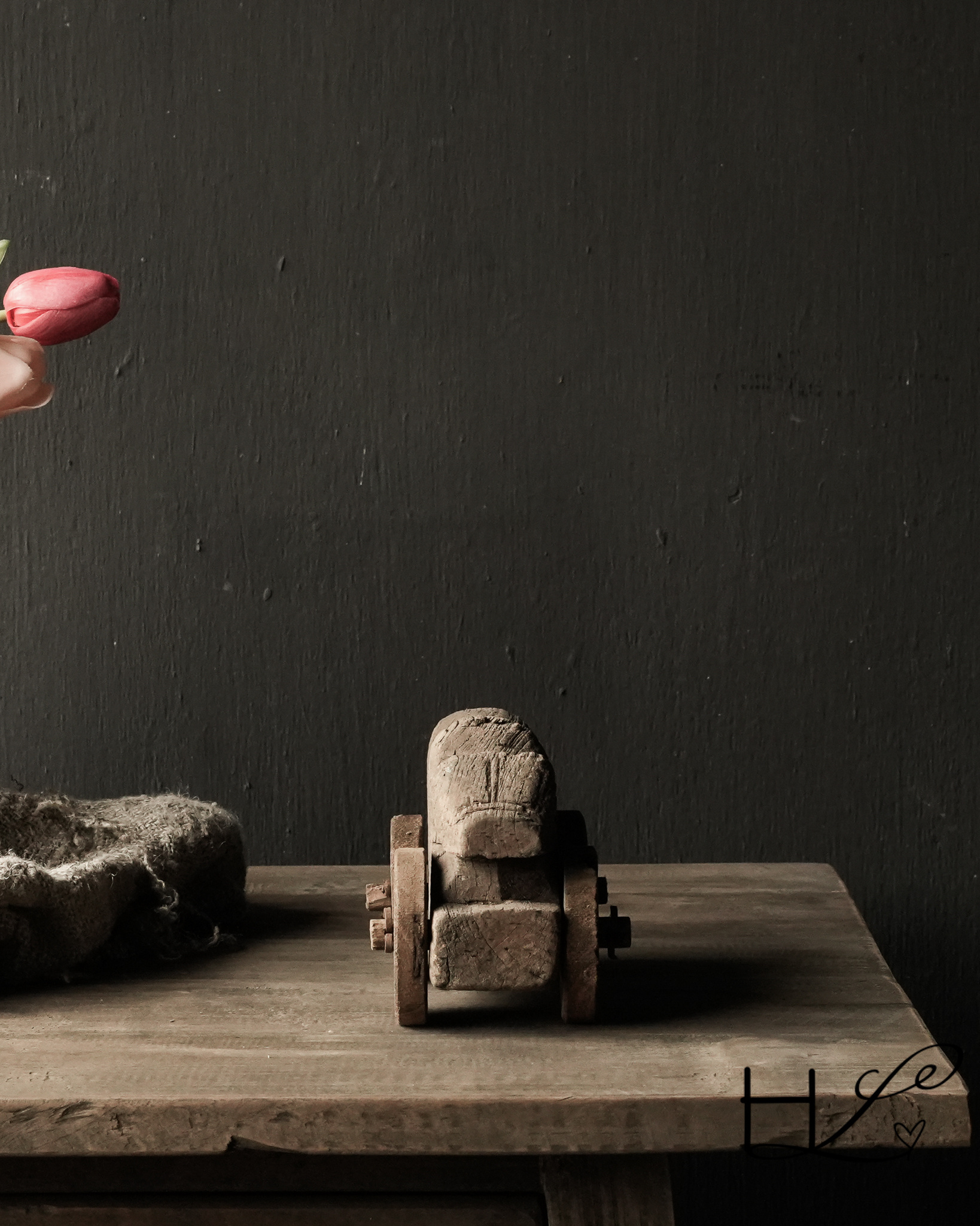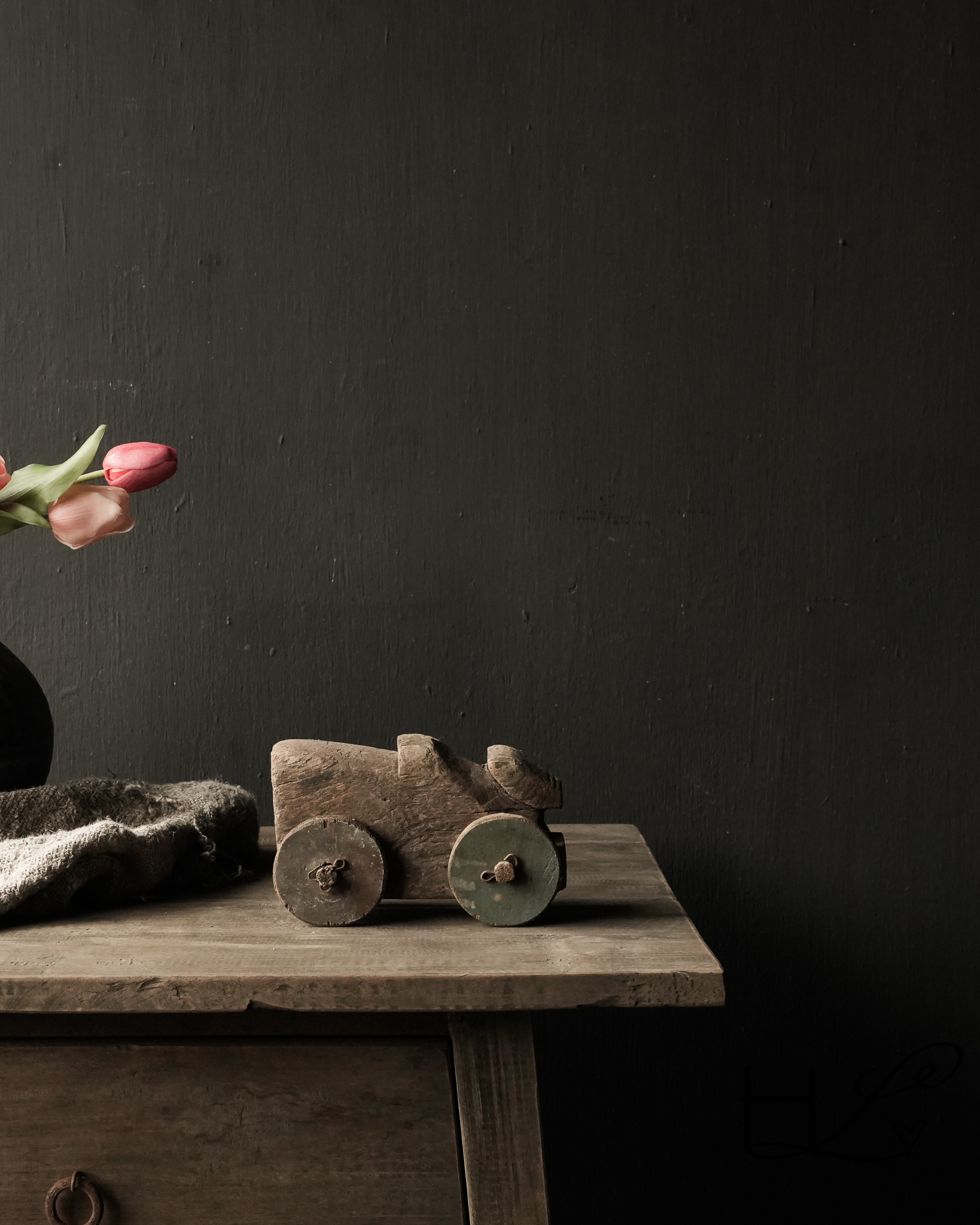 Einzigartiger alter authentischer Nandi auf Holzrädern