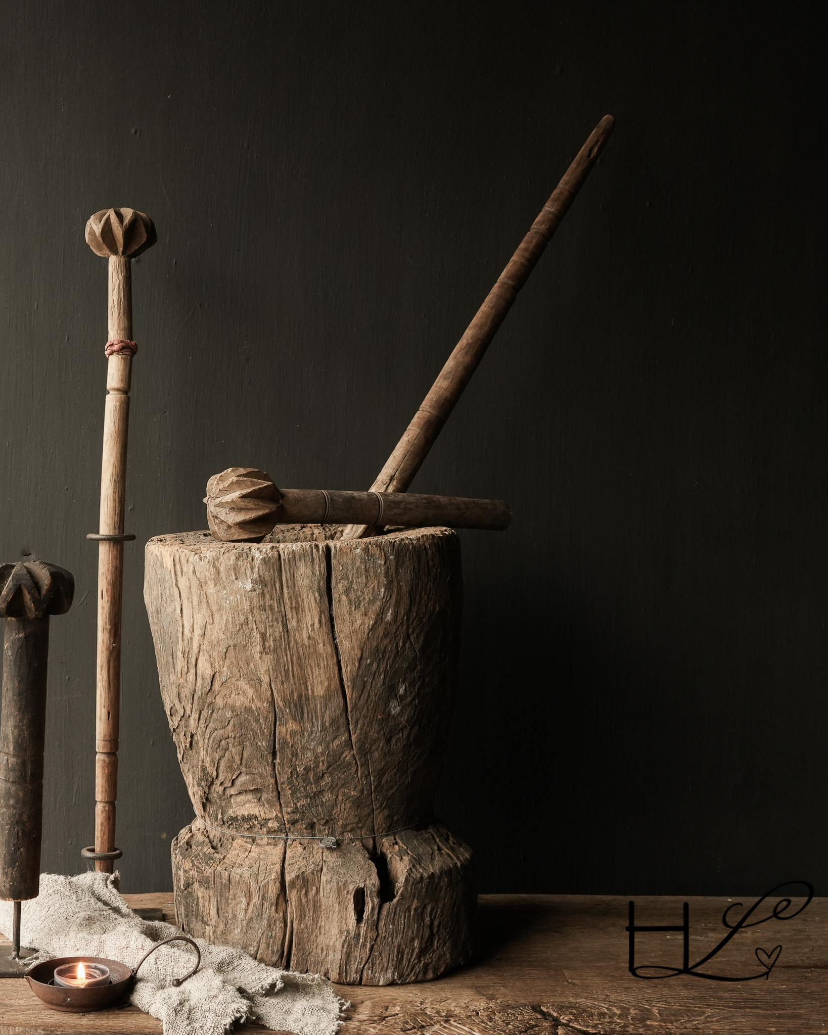 Einzigartiger antiker nepalesischer Stößel aus Holz von