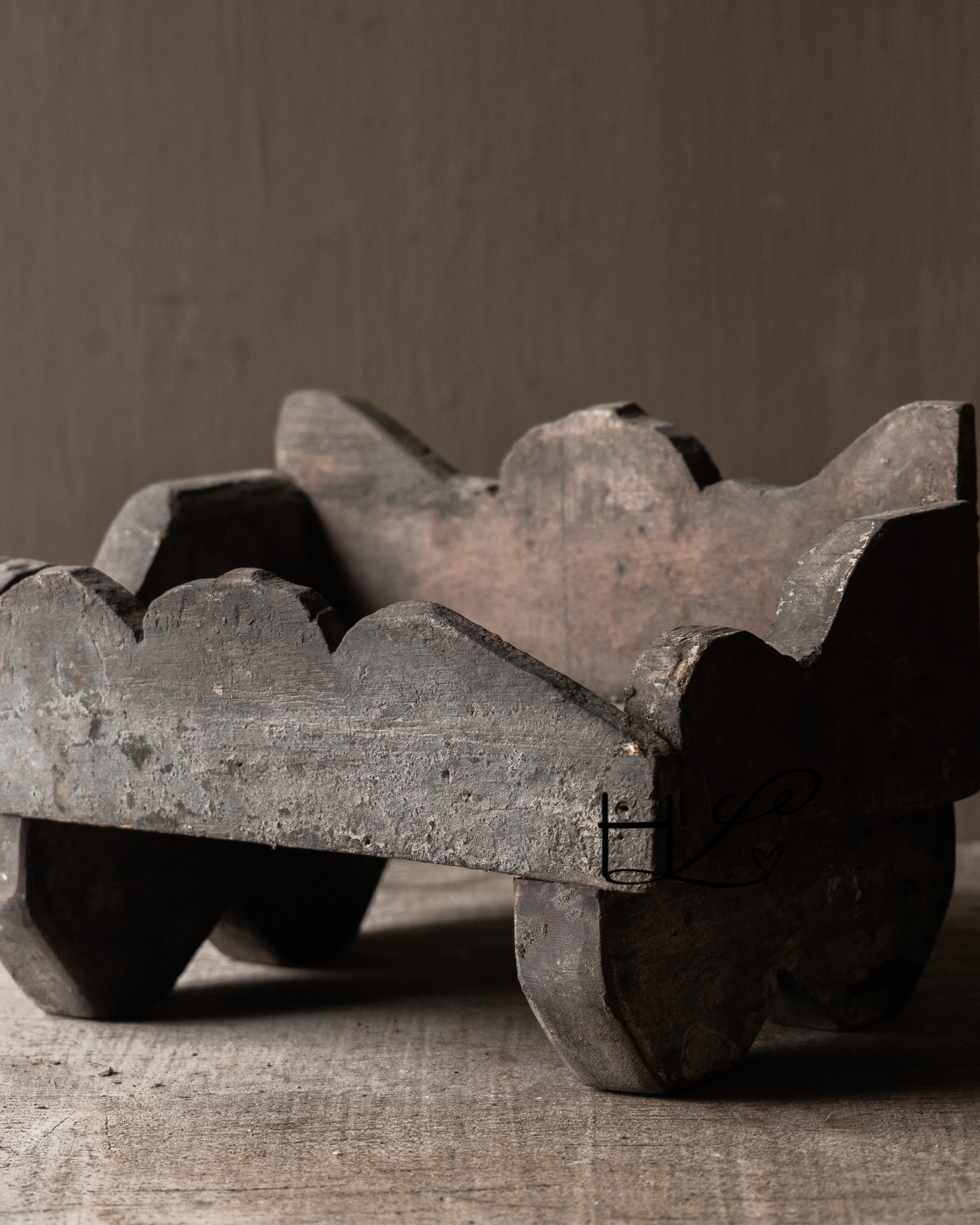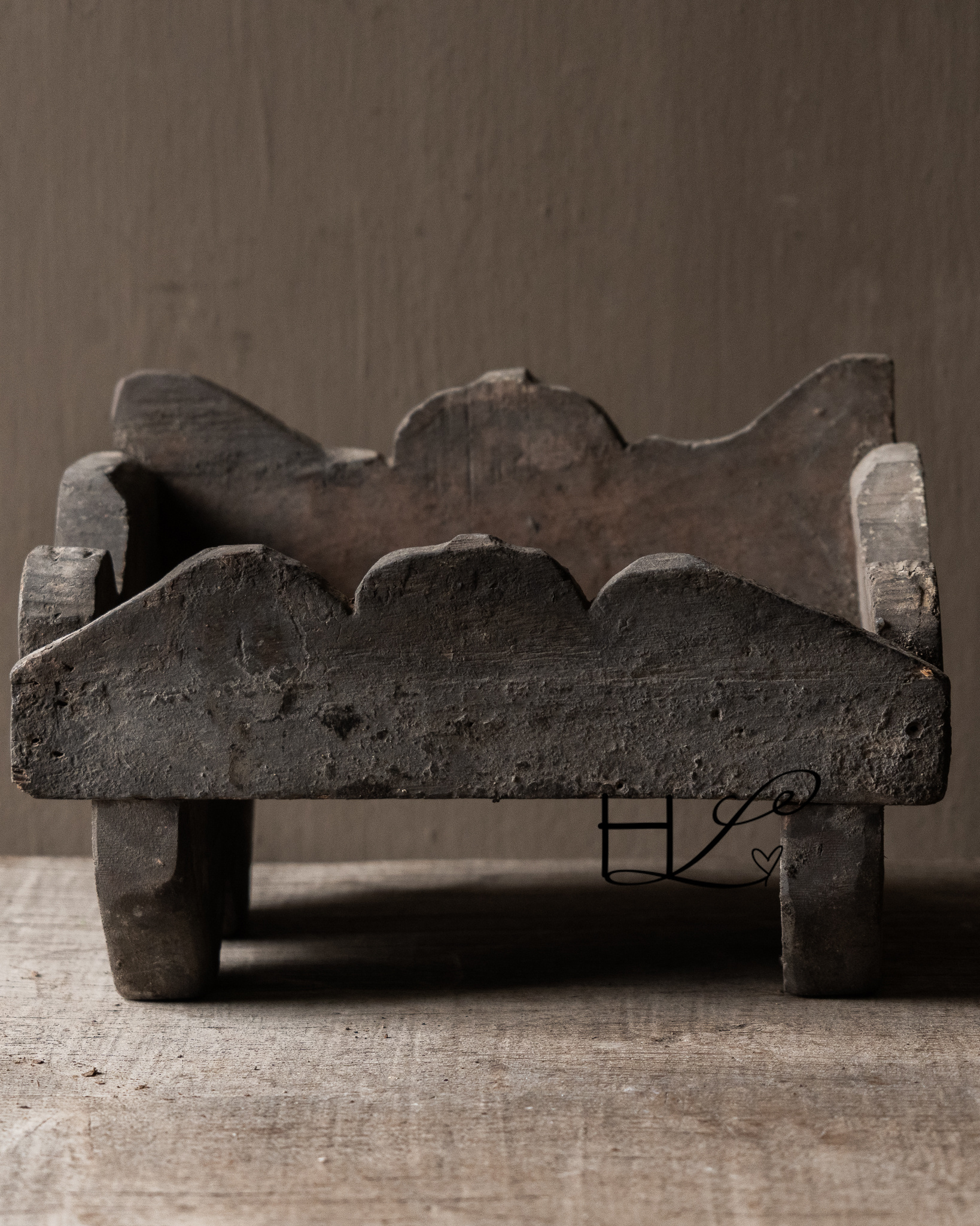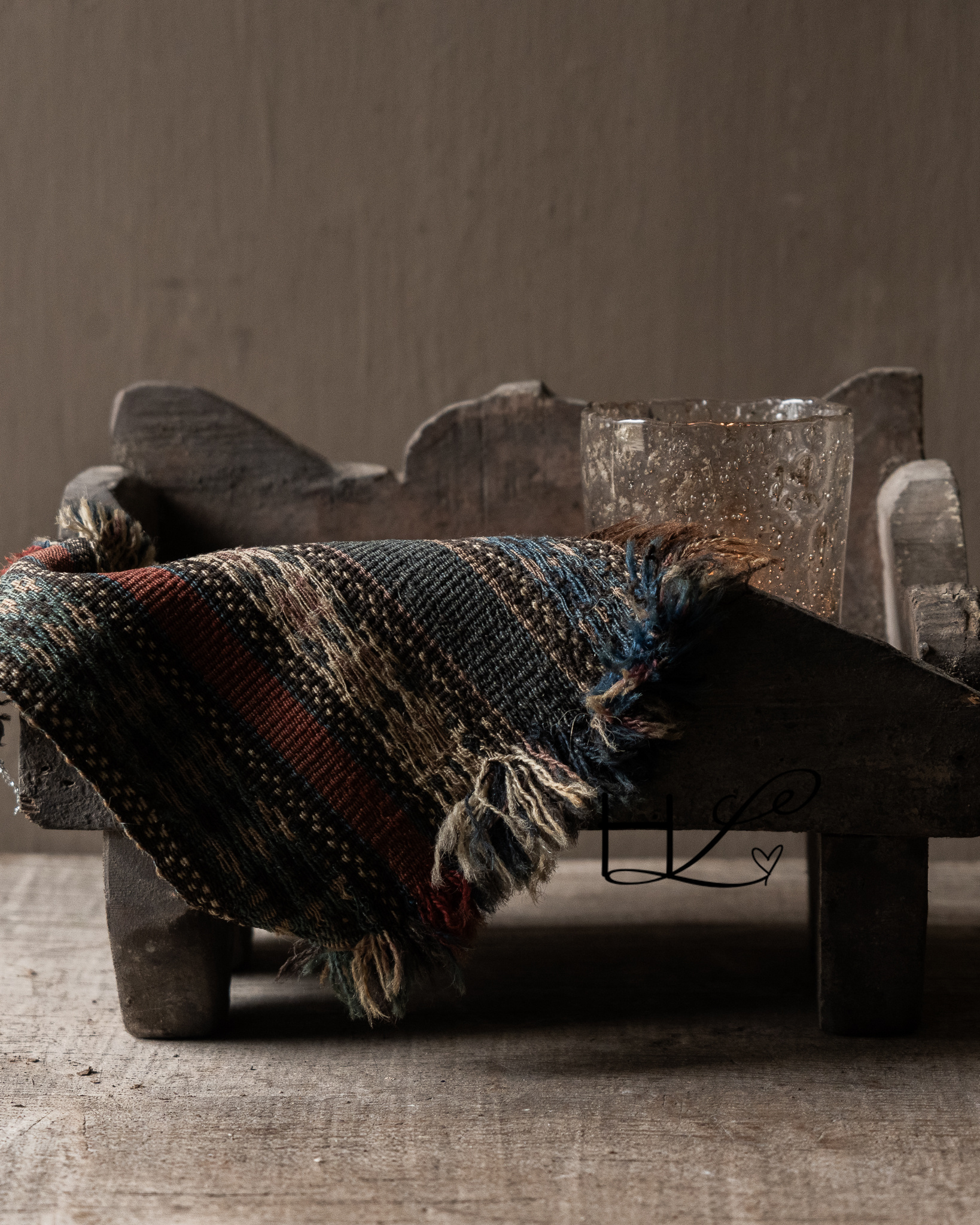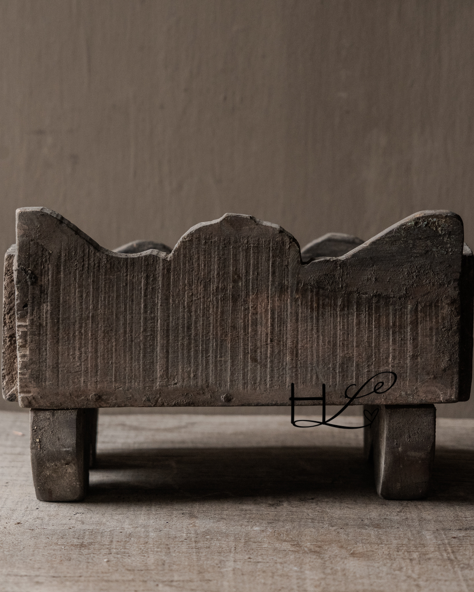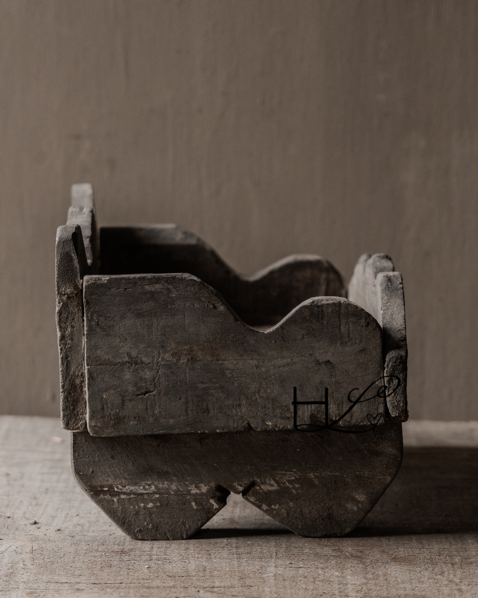 Das robuste Holz, die handgefertigten Formen und die Patina verleihen diesem Stück einen puristischen und zeitlosen Charme. Wunderschön arrangiert mit Krügen, Kerzen oder einem kleinen Textil sorgt es für eine harmonische und beruhigende Gesamtwirkung.
