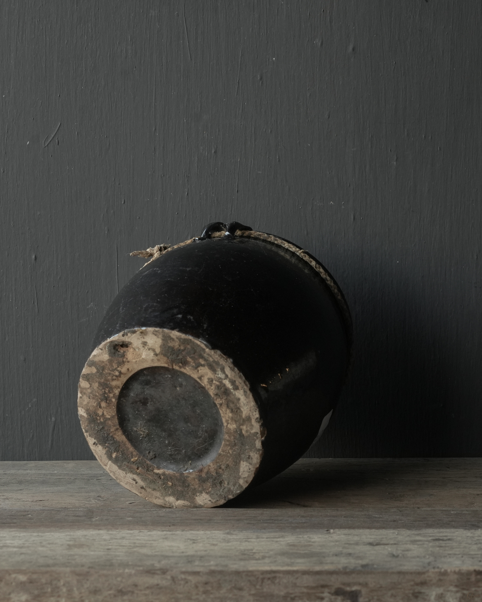 Antiker Ölkrug mit schöner brauner Glasur, gezeichnet von der Zeit