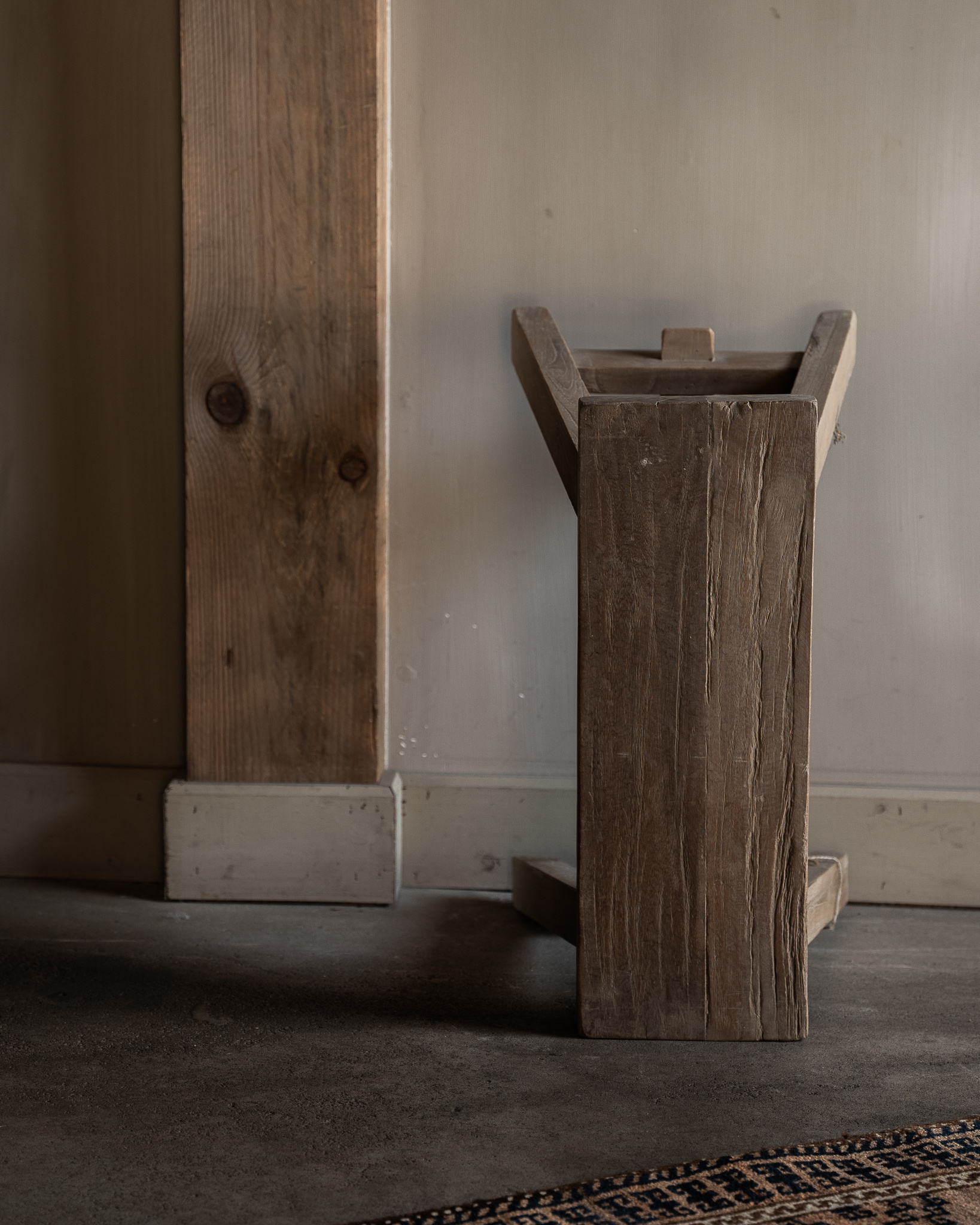 Perfekt als Bank, Beistelltisch oder dekoratives Element in einem minimalistischen, ländlichen oder Wabi-Sabi-Ambiente.