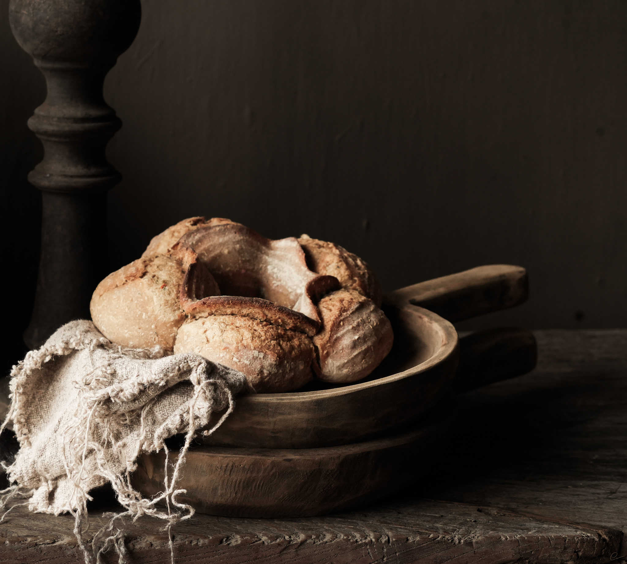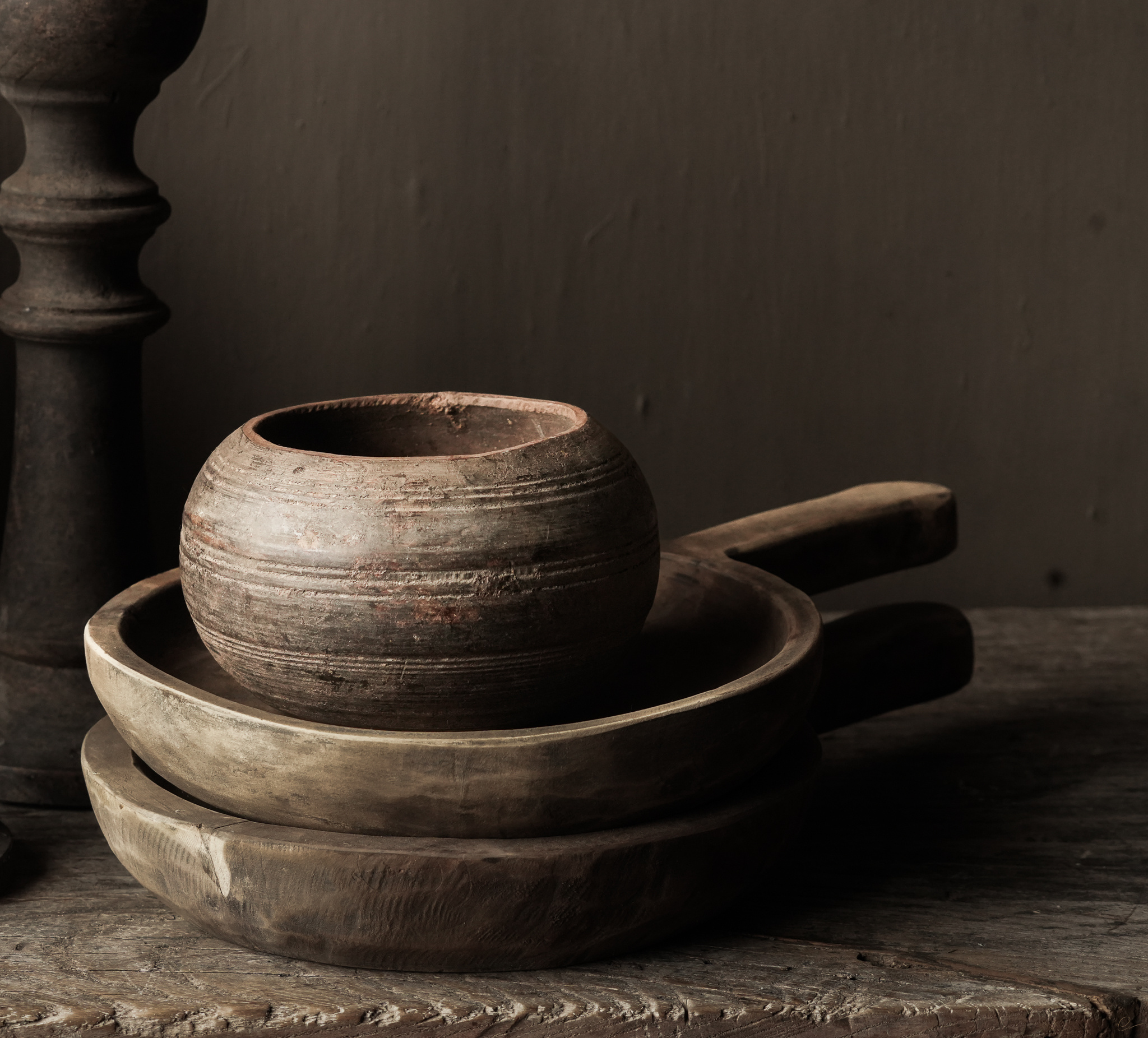 Eine robuste Holzschüssel Don XS mit Henkel von Aura Peeperkorn.