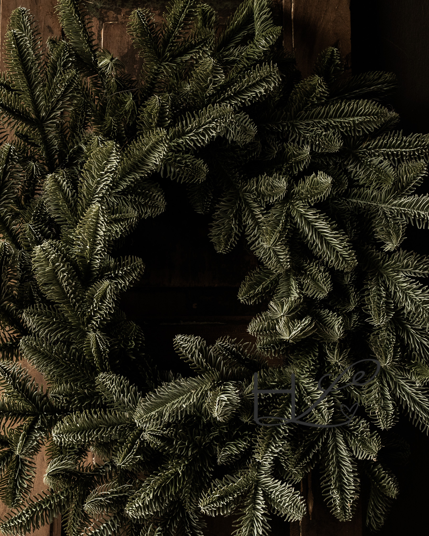 Ein wunderschöner, voller Weihnachtskranz mit natürlicher Ausstrahlung. Die Zweige haben einen dezenten graugrünen Farbton, wodurch dieser Kranz kaum von einem echten Kranz zu unterscheiden ist. Zeitlos und Jahr für Jahr wiederverwendbar.