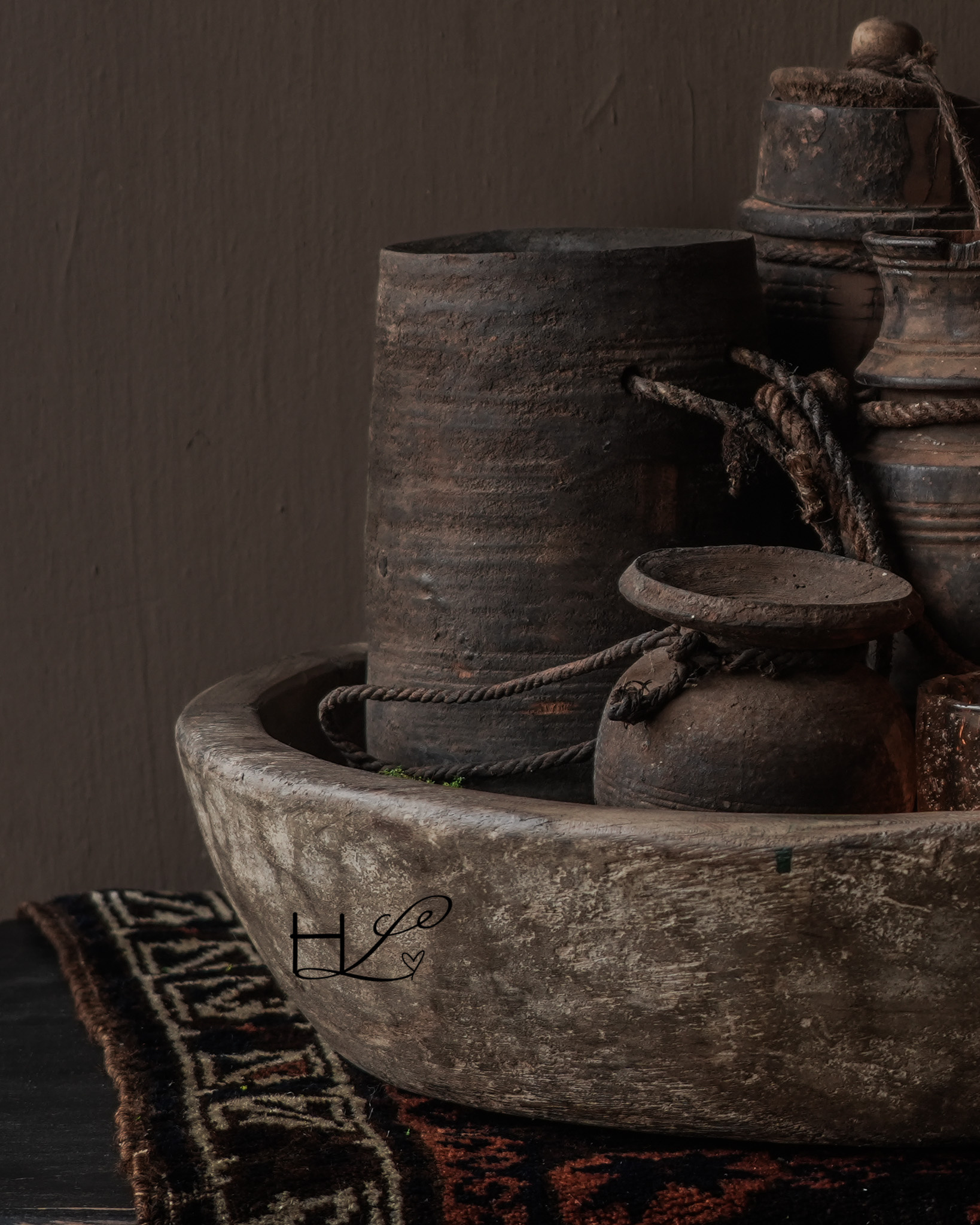 Durch seine schlichte Form und die Verwendung natürlicher Materialien passt dieses Stück perfekt in ein Interieur, das von Marken wie HOFFZ, Aura Peeperkorn und Luksa inspiriert ist. Kombinieren Sie es mit antiken Krügen, Holzschalen, Kelim-Teppichen oder Glaslaternen für eine warme und authentische Atmosphäre.