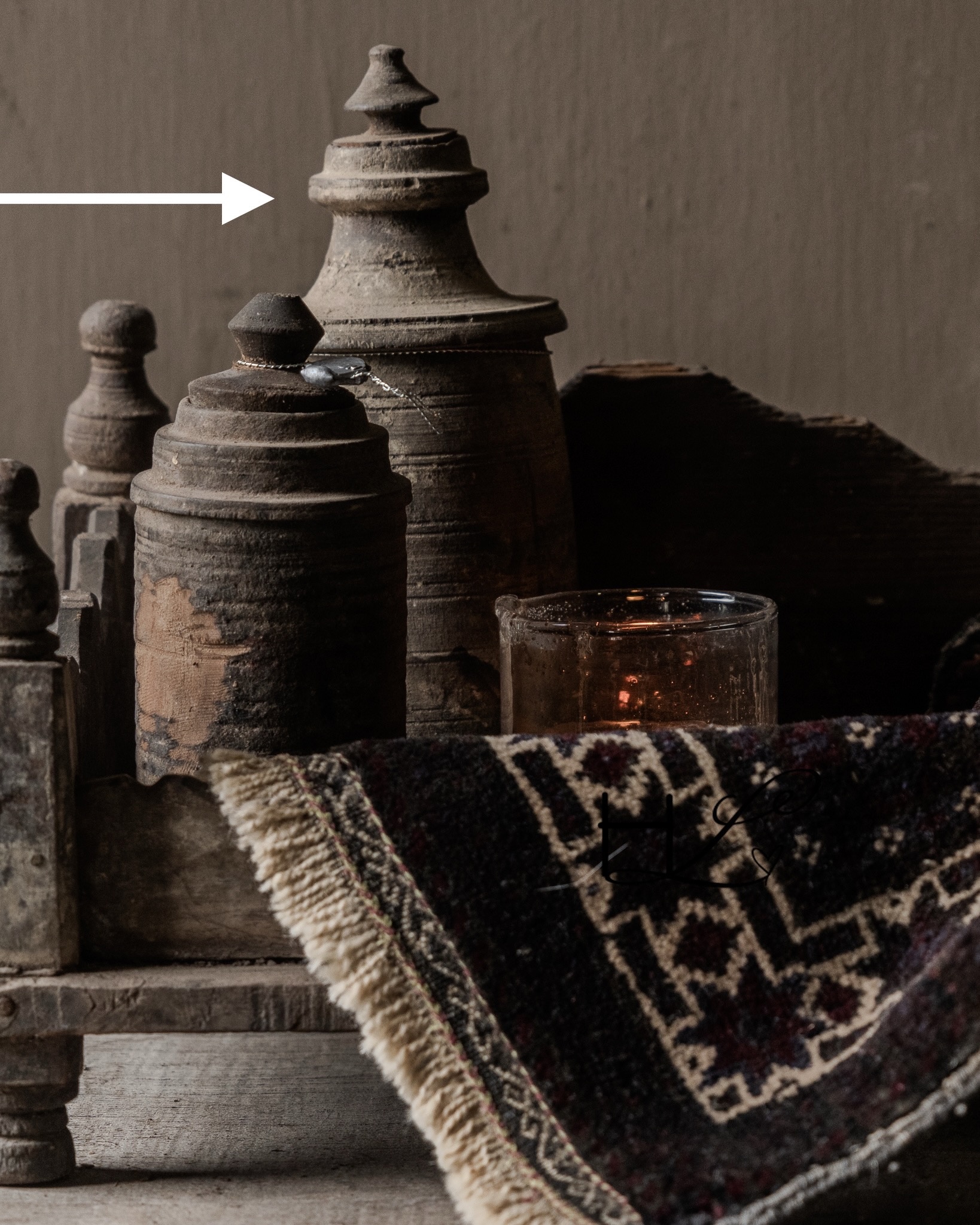 HOFFZ Originaler alter nepalesischer Holzkrug/Topf mit Deckel HOFFZ