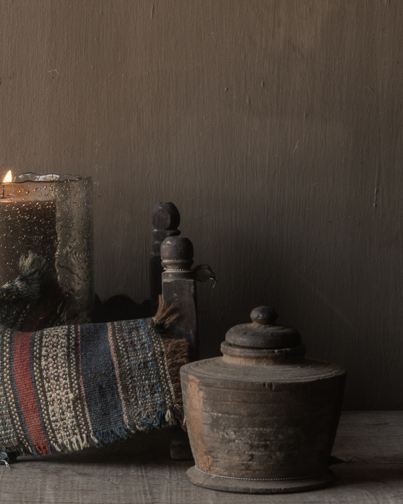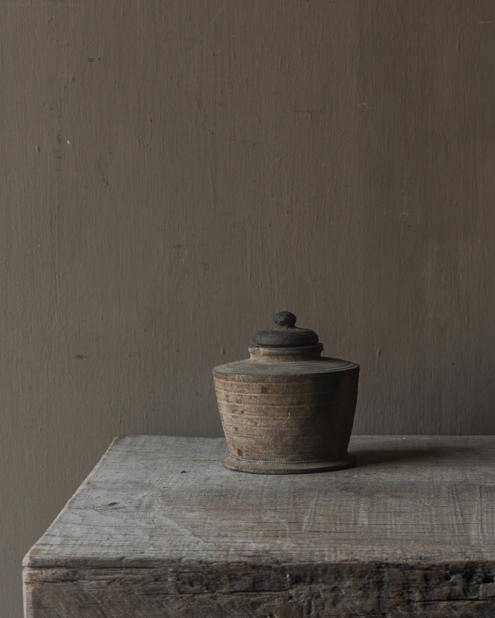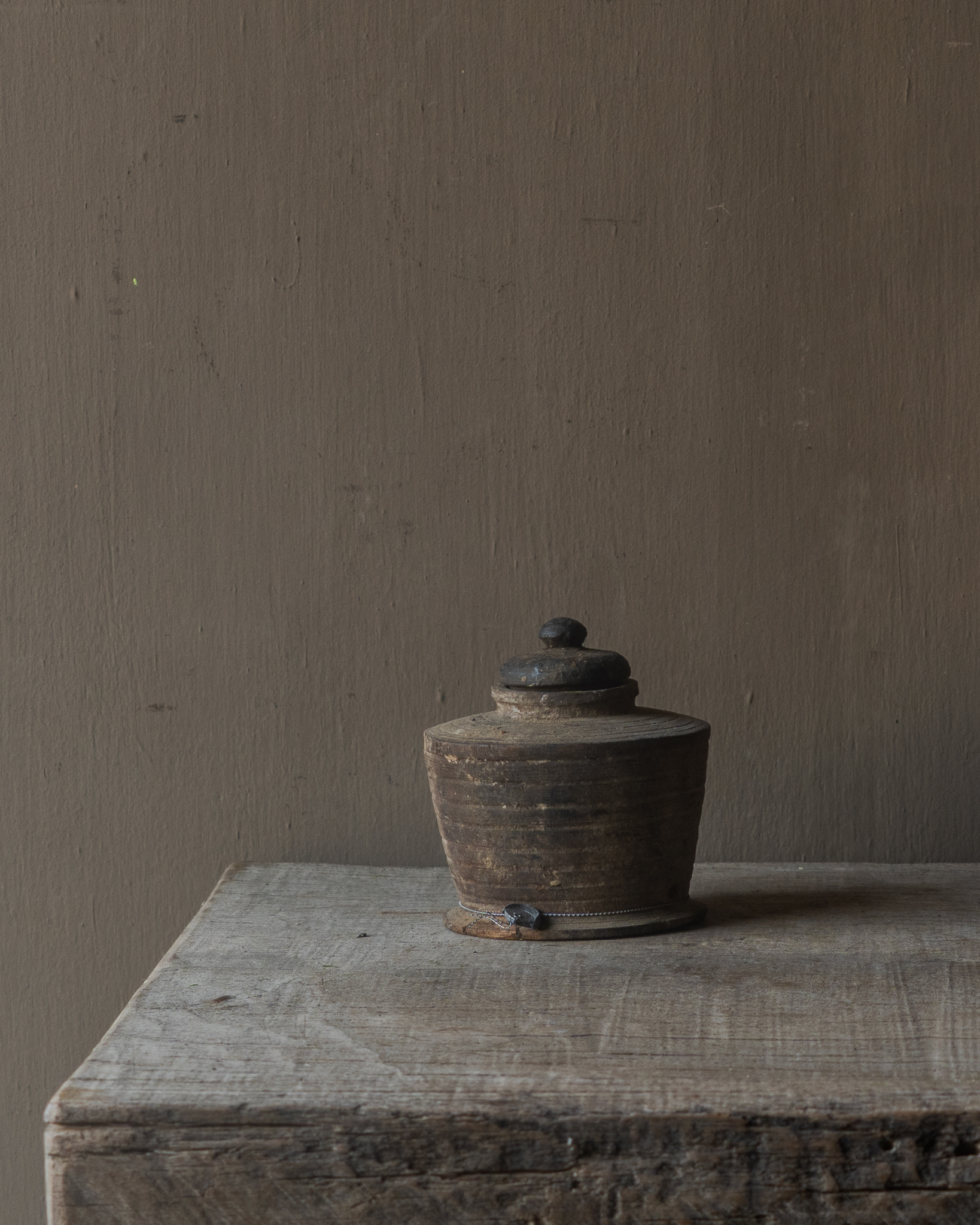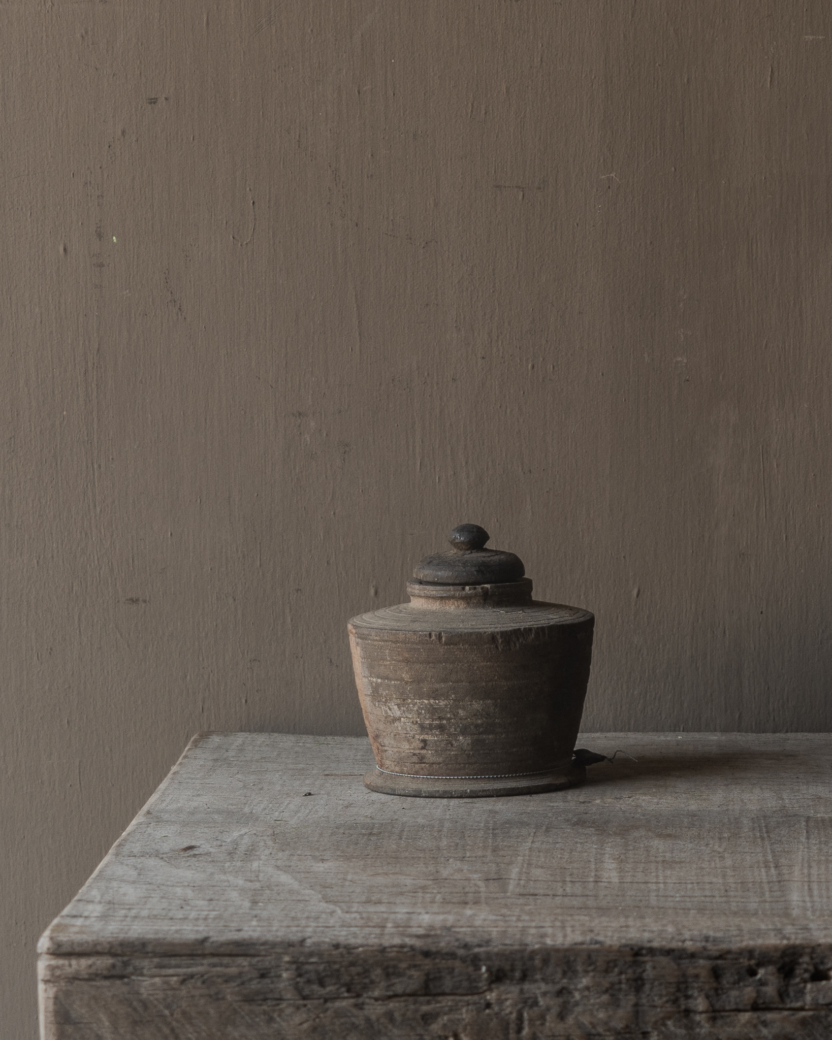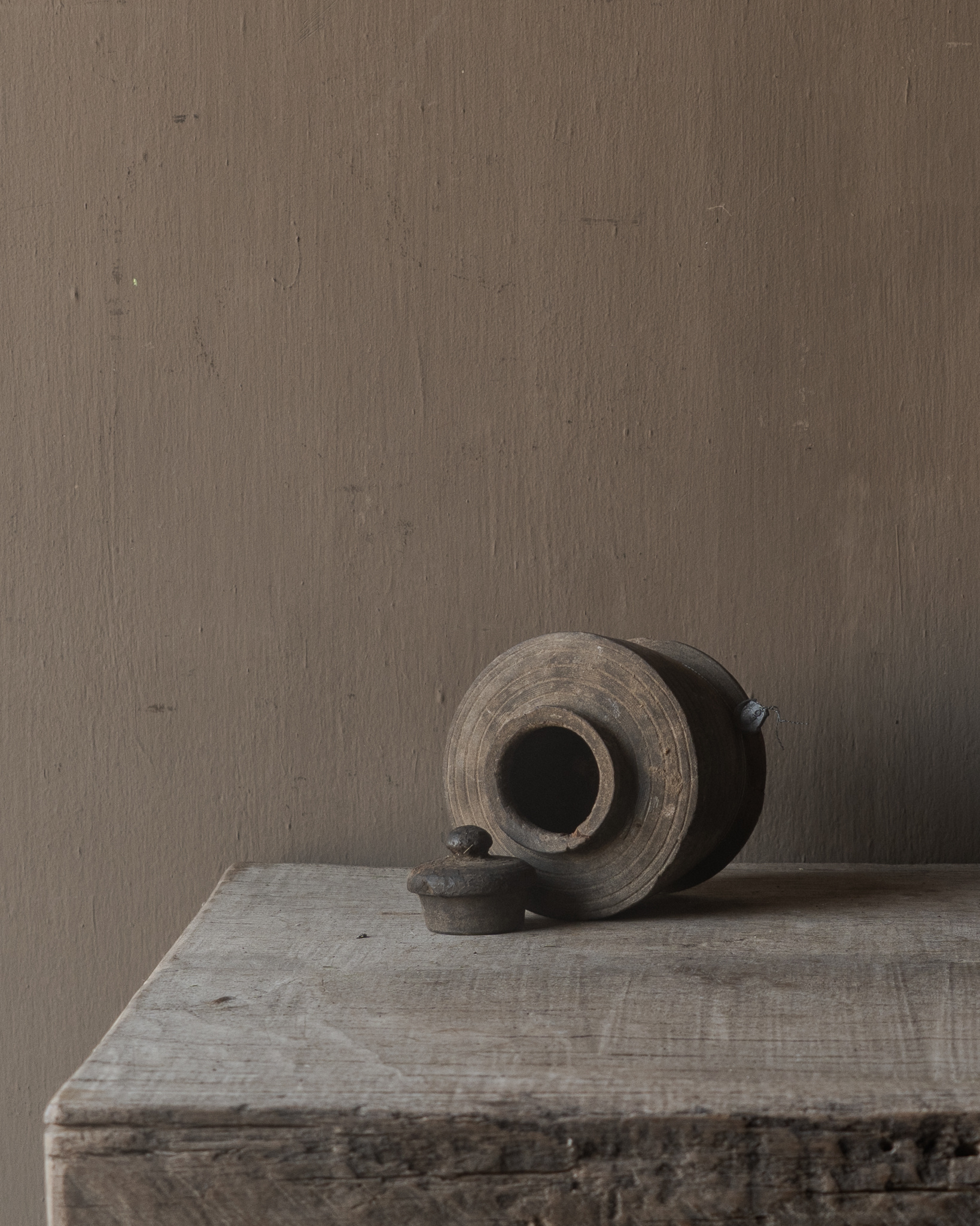 HOFFZ Originaler alter nepalesischer Holzkrug/Topf mit Deckel HOFFZ