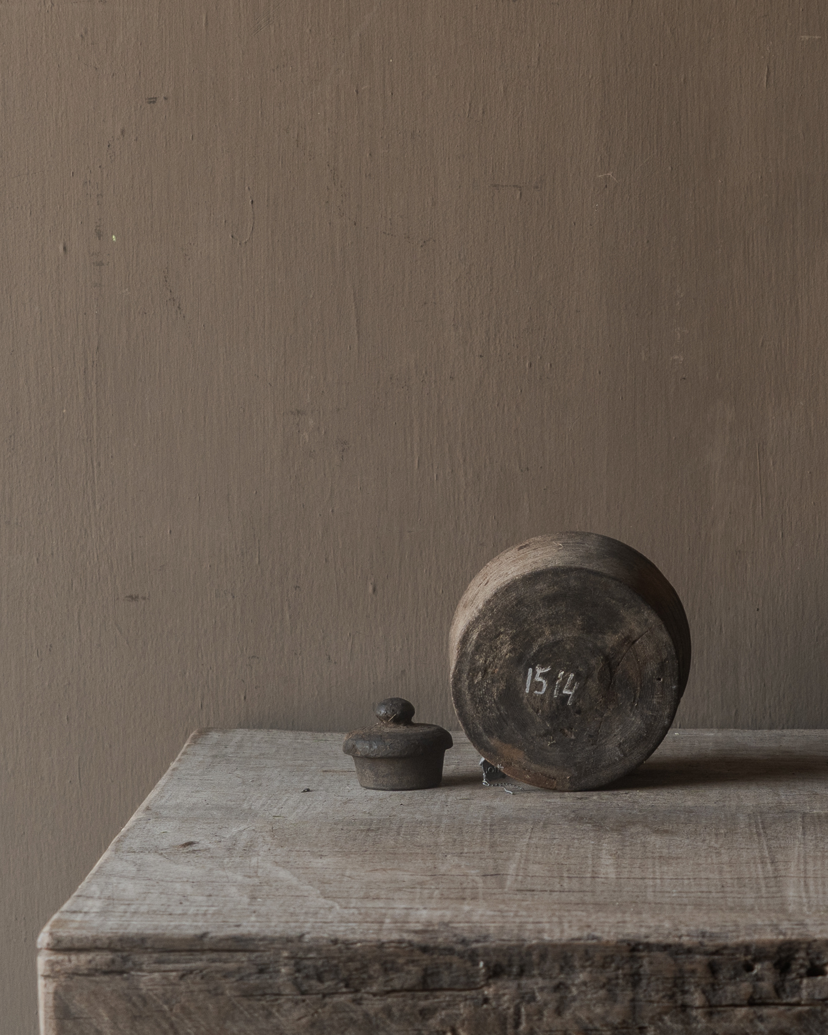 Ein charaktervoller, alter Topf von Hoffz mit einer wunderschönen, verwitterten Optik. Die schlichte Form und die verwitterte Oberfläche verleihen diesem Objekt eine ruhige, authentische Atmosphäre.