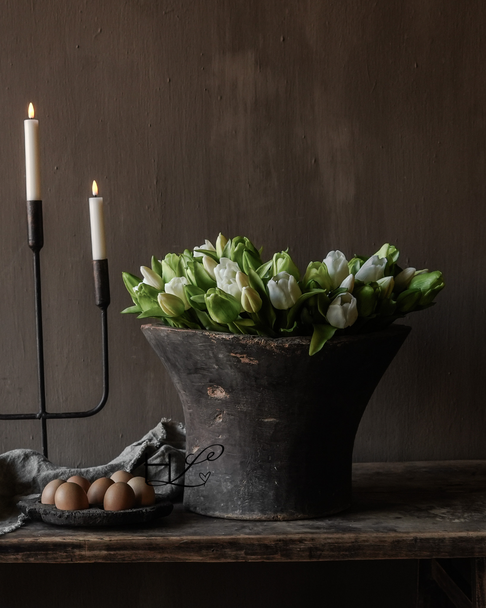 Kombinieren Sie diesen Holzmörser mit frischen Tulpen, Zweigen, Kerzen oder dezenten Accessoires für eine warme und friedliche Atmosphäre. Er harmoniert auch wunderbar mit Leinen, Altholz und Keramik.