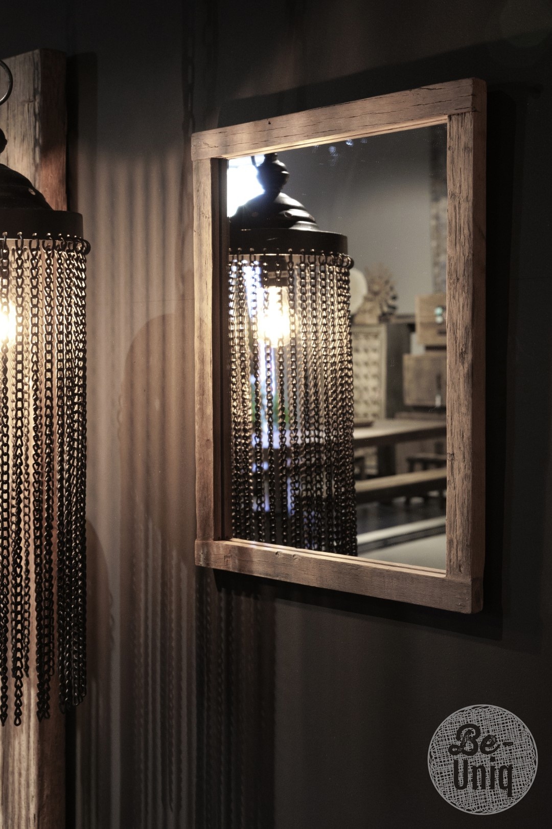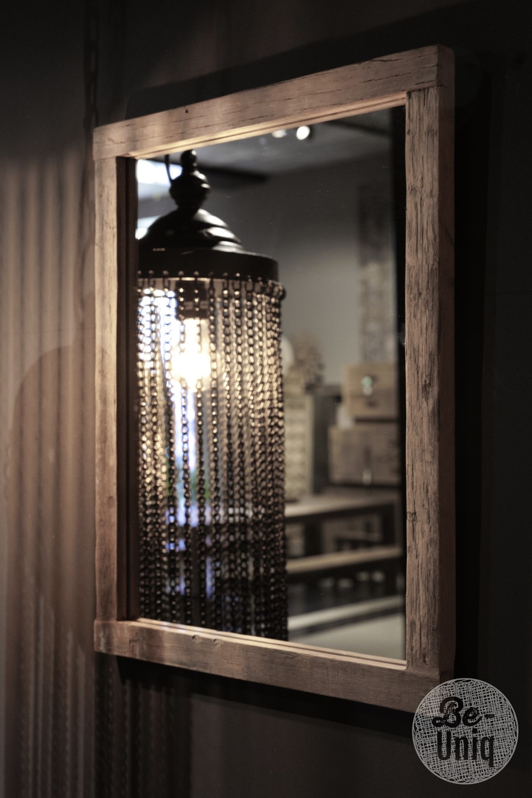 Ein edles Designobjekt, bei dem natürliche Materialien und zeitloser Luxus harmonisch vereint werden. Der Massivholzrahmen, dessen gealterte Textur und warme Farbnuancen jedem Spiegel ein einzigartiges und charaktervolles Aussehen verleihen, macht ihn zu einem echten Blickfang.