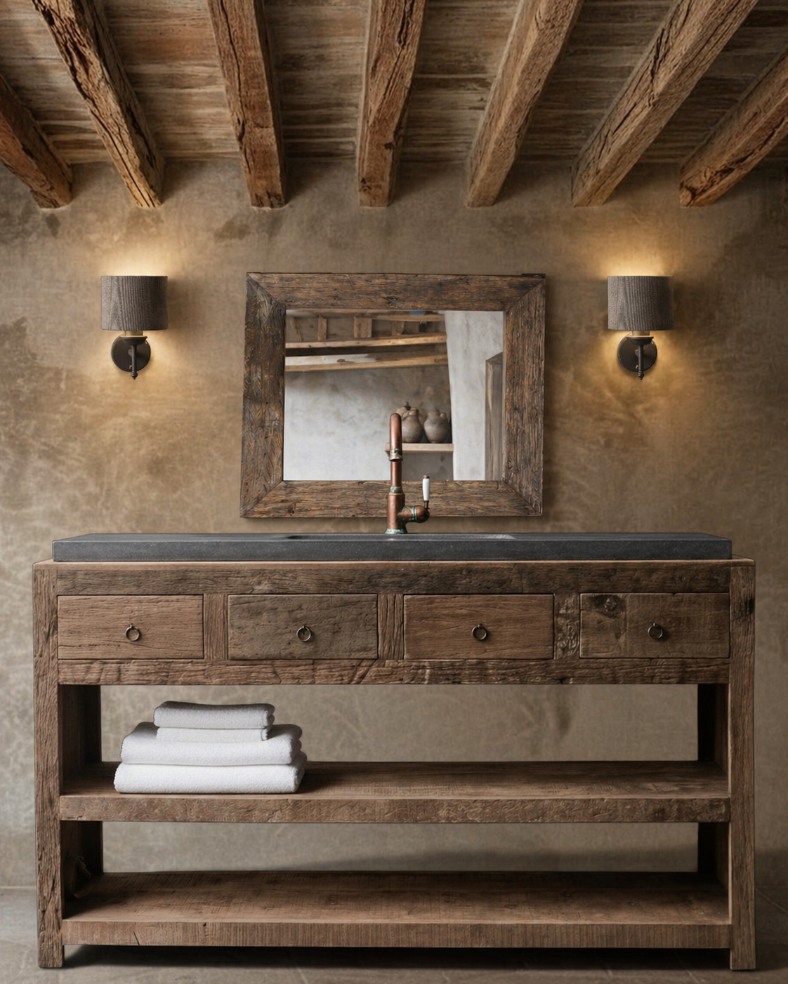 Robuster Spiegel im Landhausstil mit Holzrahmen