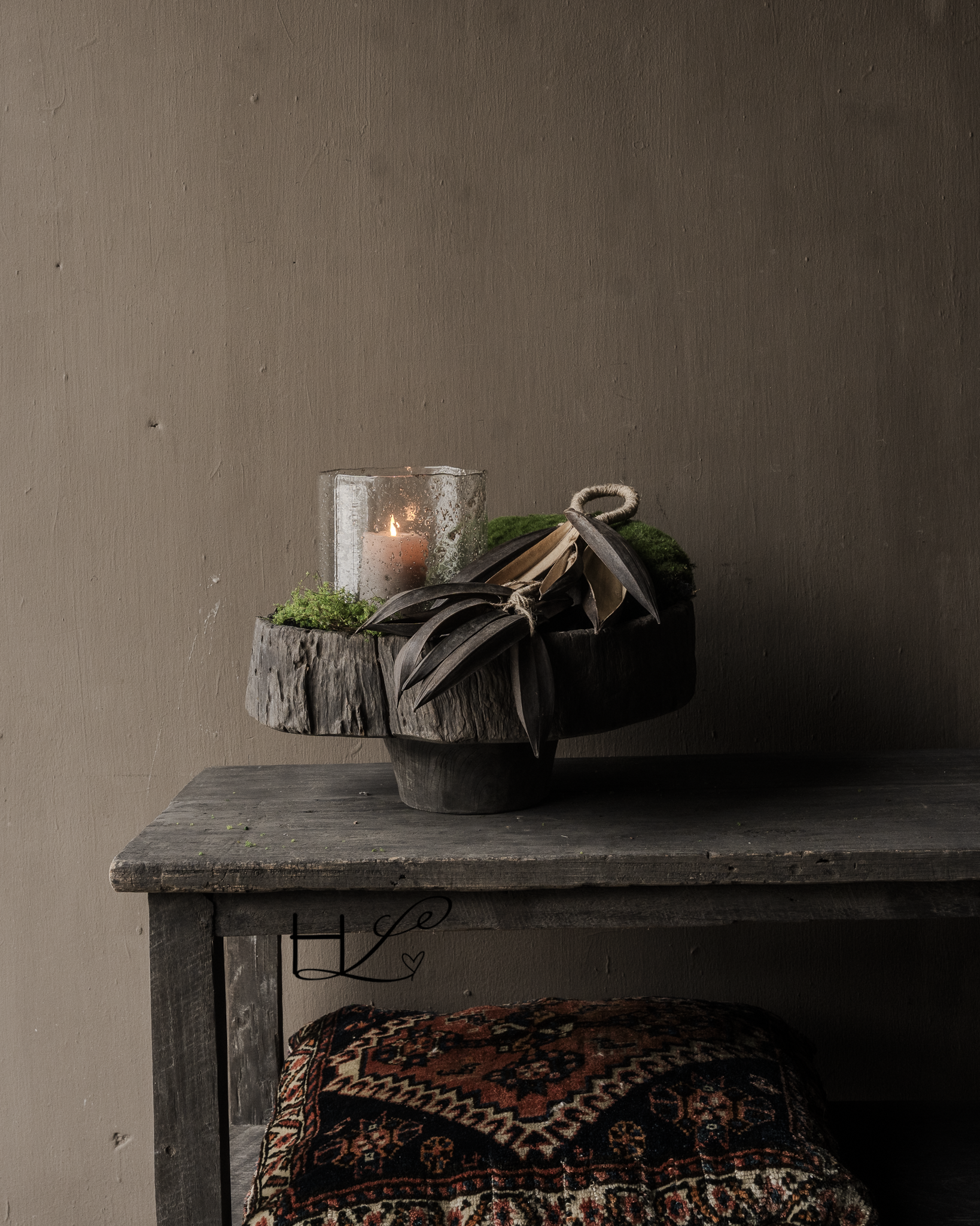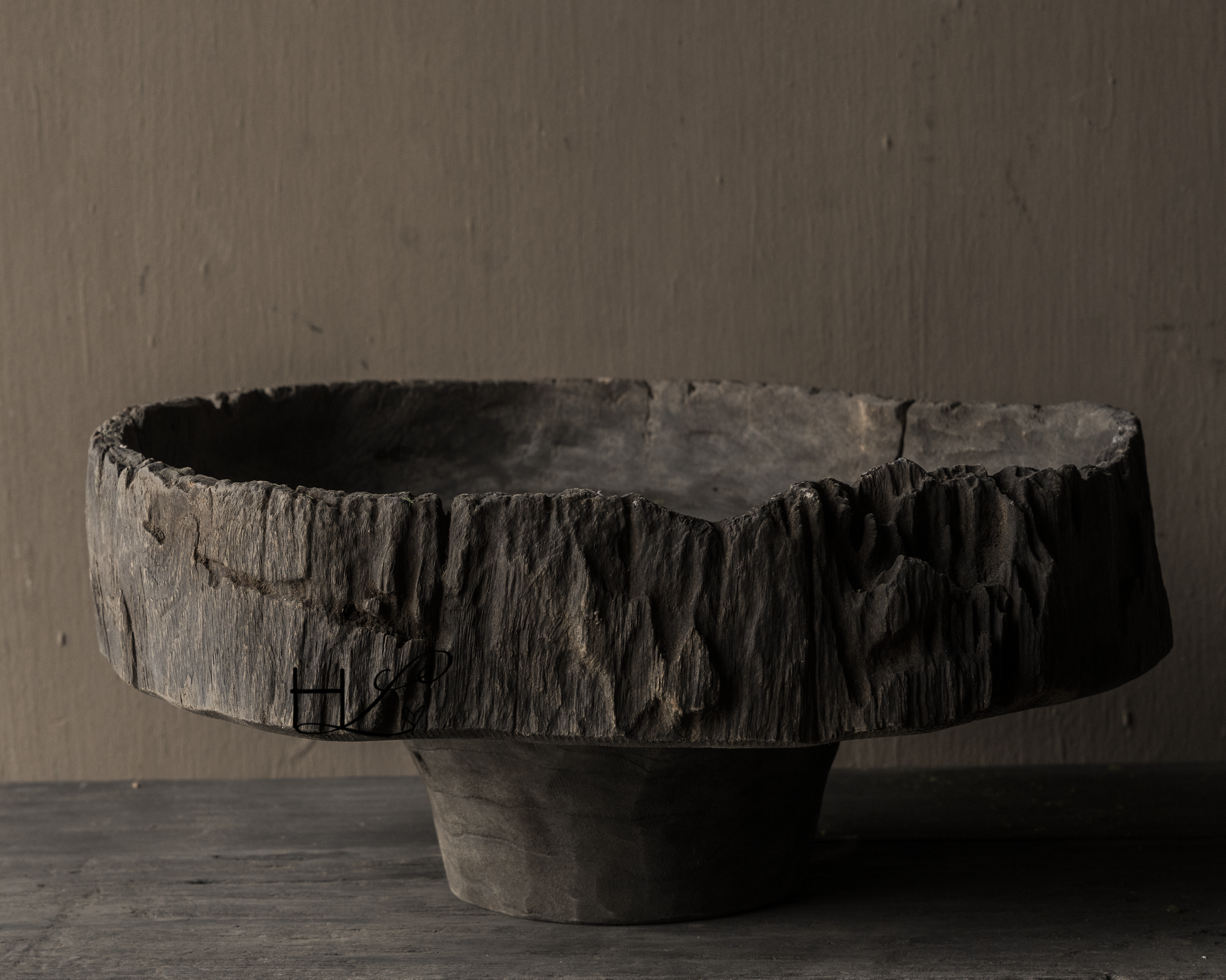 Alte Holzschale auf einem Fuß – einzigartig und voller Charakter
