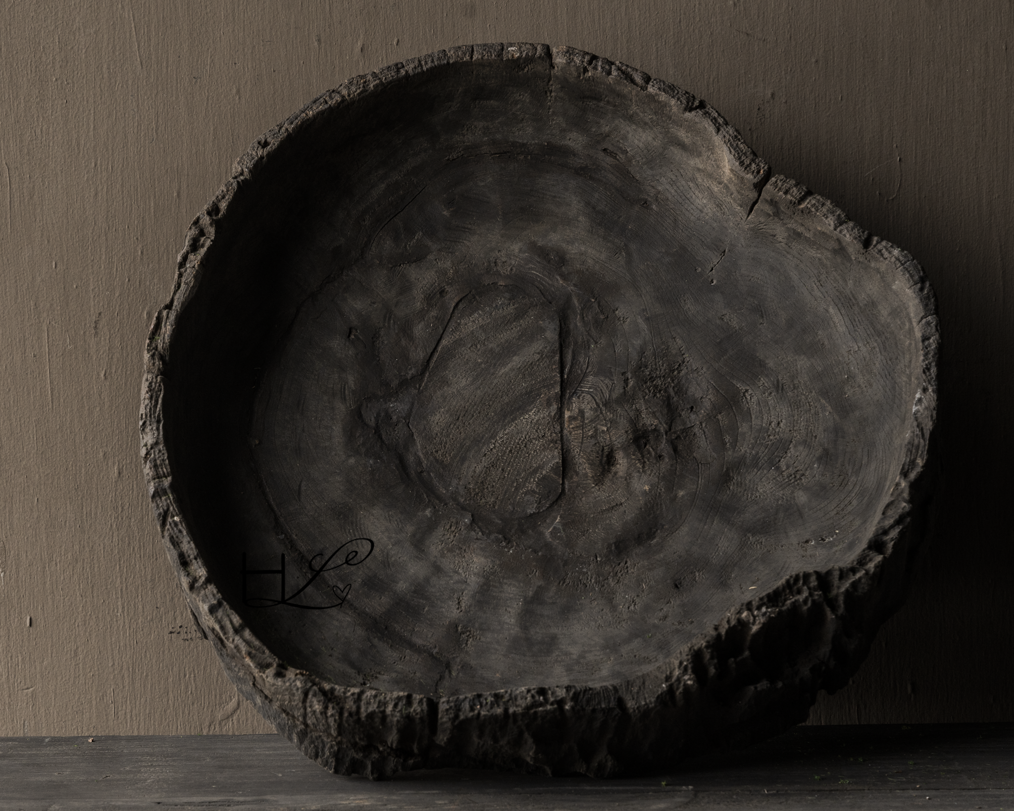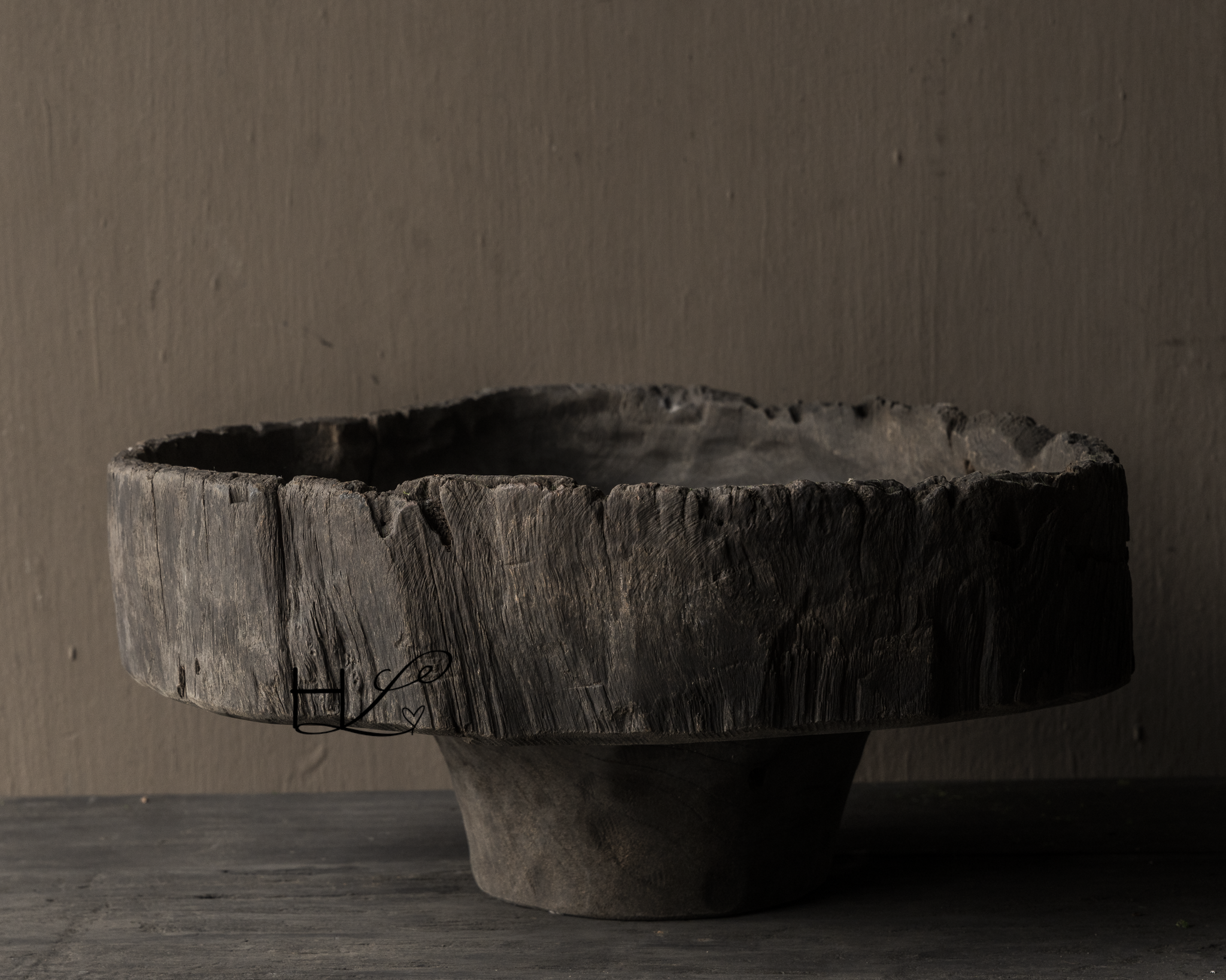 Diese wunderschöne antike Holzschale auf einem Ständer ist ein einzigartiges Dekorationsobjekt, das jedem Raum sofort Wärme und Atmosphäre verleiht. Mit ihrer verwitterten Optik, der markanten Holzmaserung und den natürlichen Unregelmäßigkeiten erzählt diese Schale die Geschichte handwerklicher Kunst und zeitloser Handwerkskunst.
