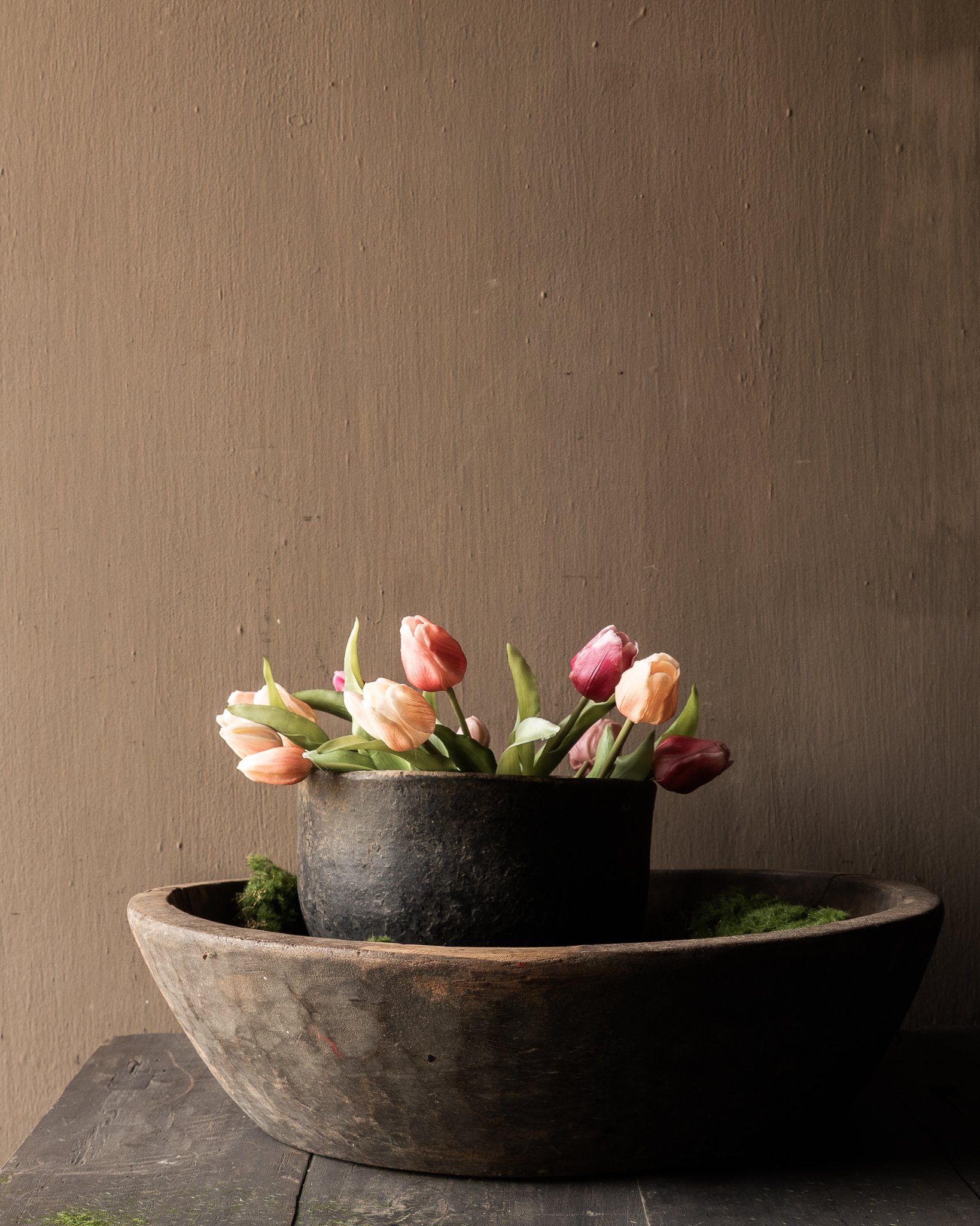 Jede Schale ist ein Unikat und erzählt ihre eigene Geschichte. Gerade die kleinen Unvollkommenheiten, Risse und Verfärbungen verleihen diesen alten Holzgegenständen ihren Charme.