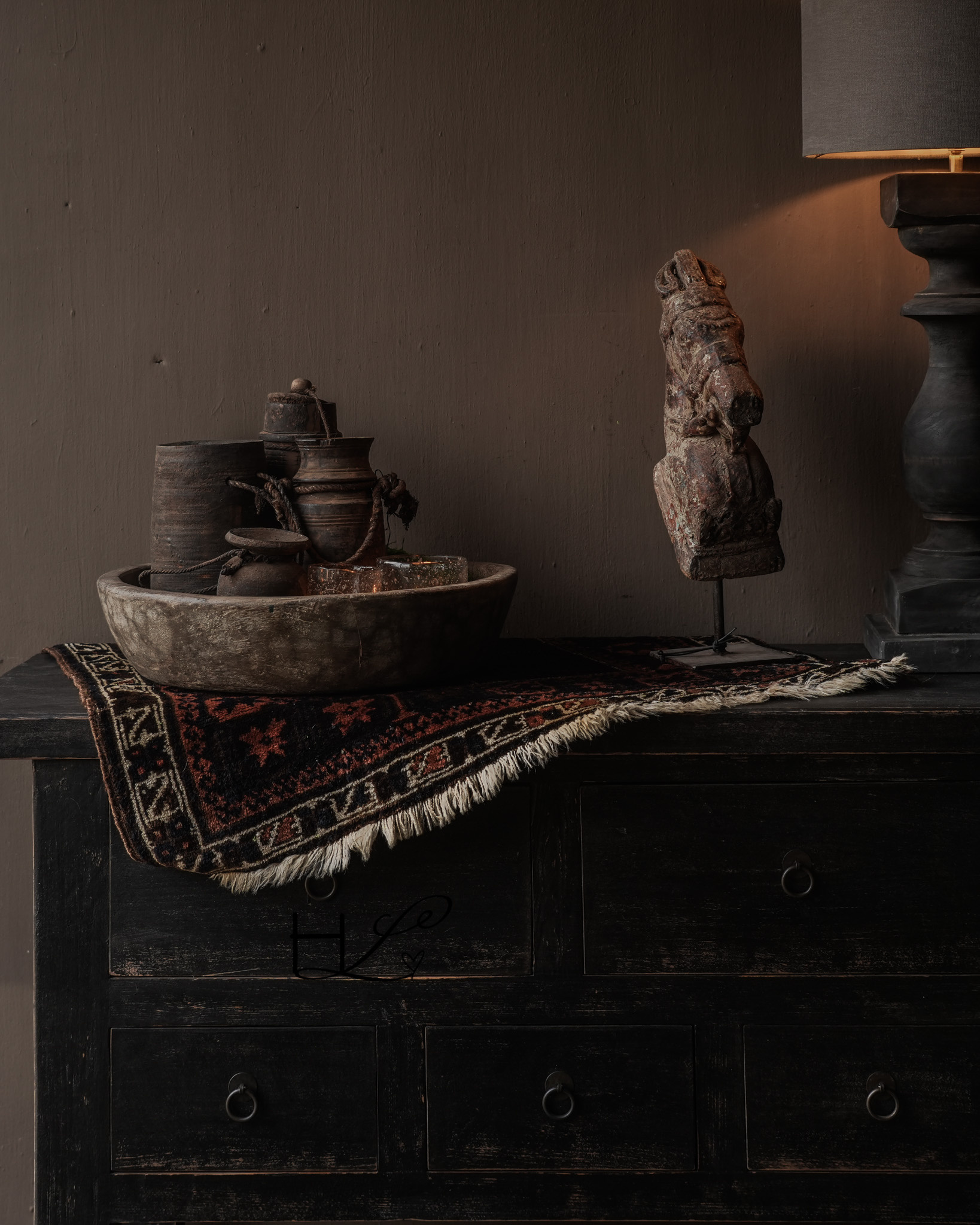 Dekorieren Sie das Sideboard beispielsweise mit einem großen Krug, einer Holzschale, Laternen oder einer klassischen Skulptur, um eine warme und stimmungsvolle Atmosphäre zu schaffen.
