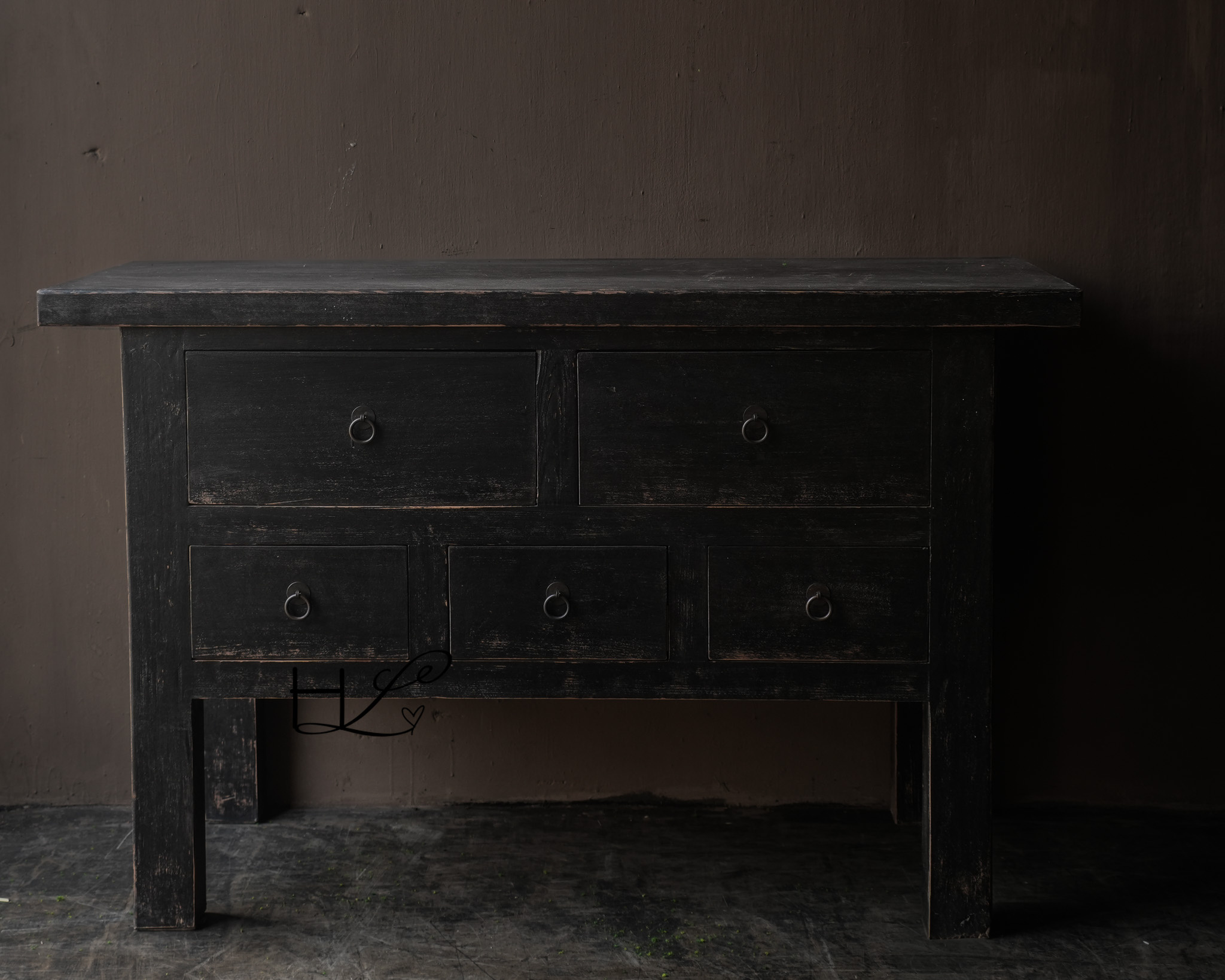 LUKSA Stilvolles schwarzes Holzsideboard mit 5 Schubladen – rustikales Beistelltischmöbel