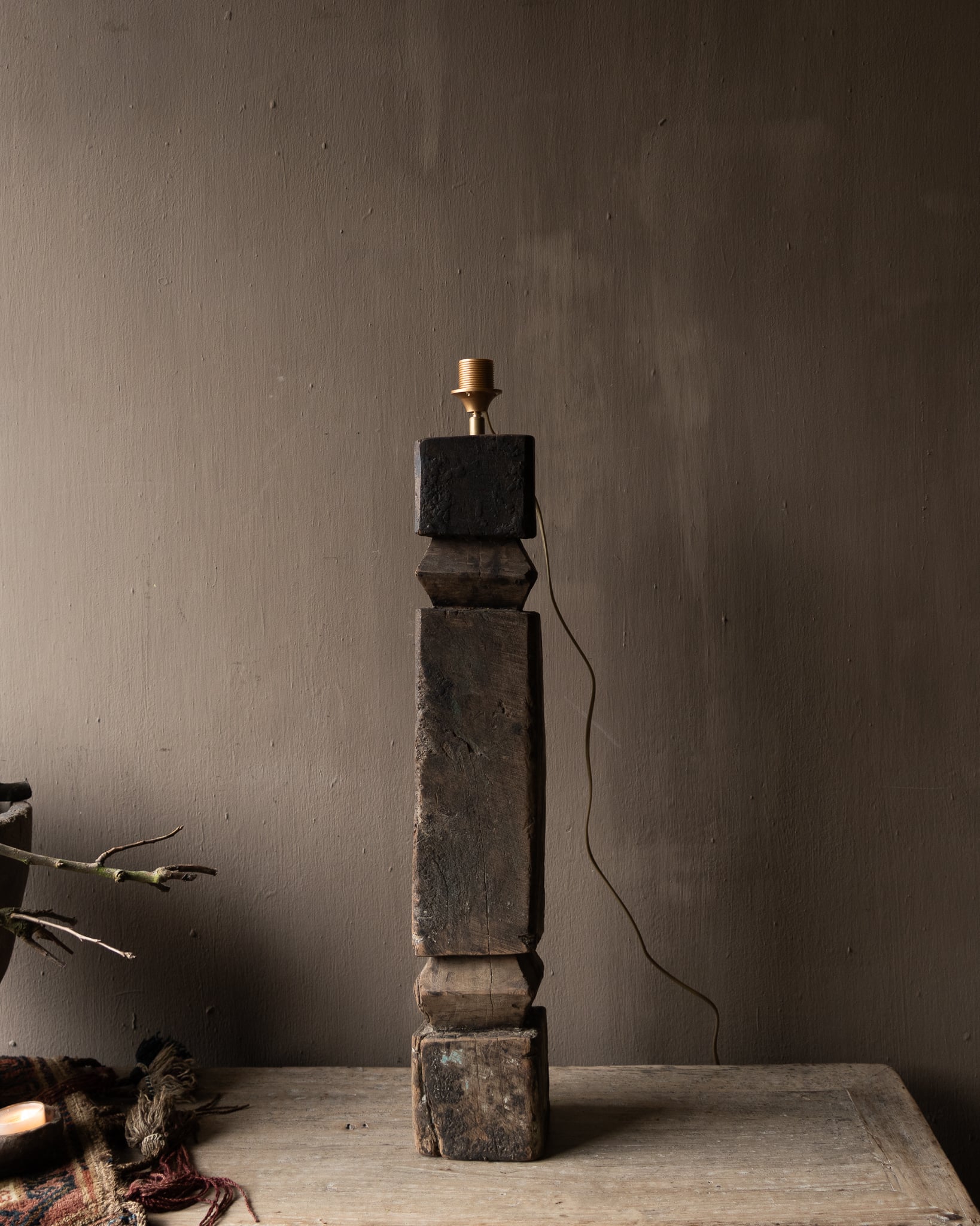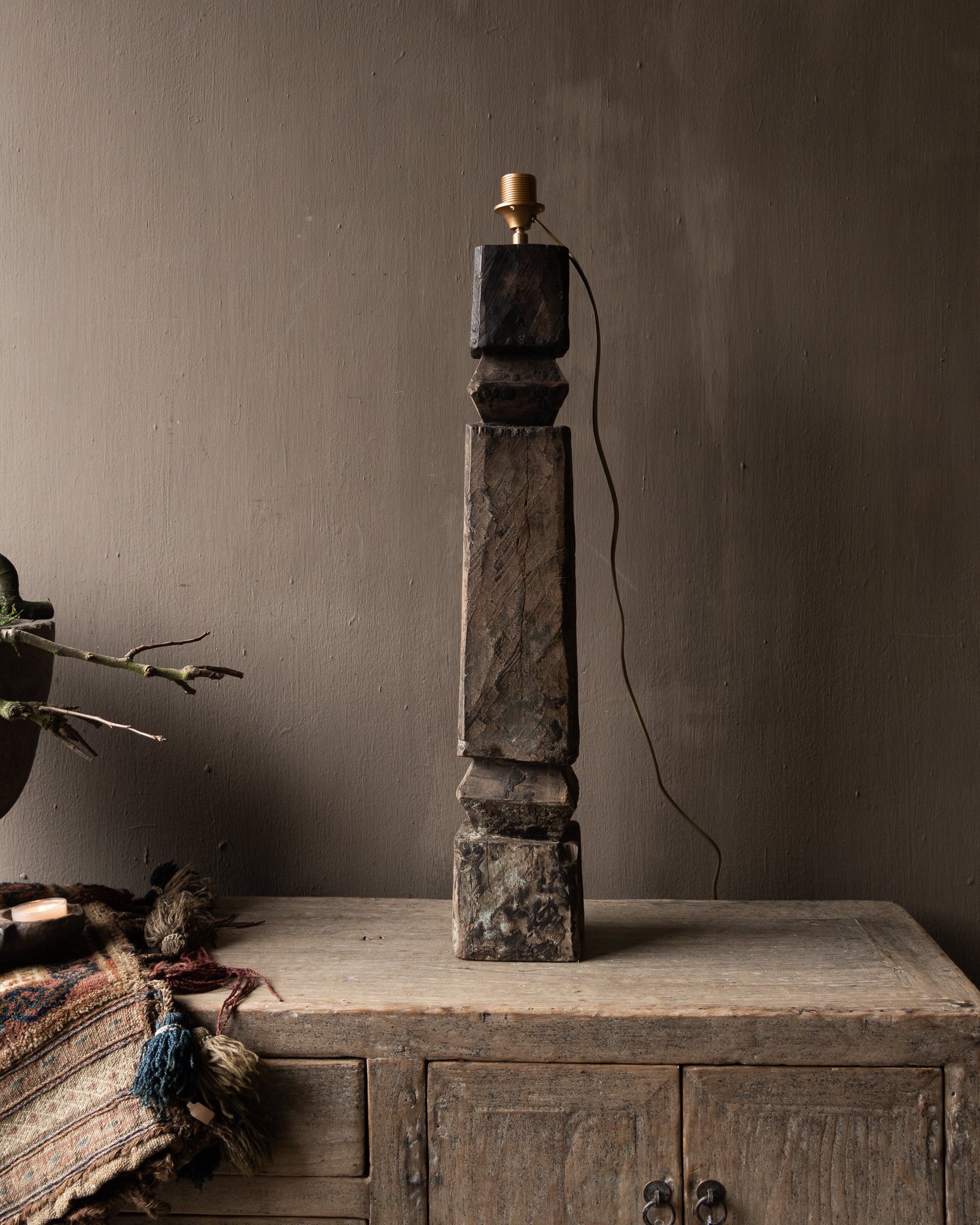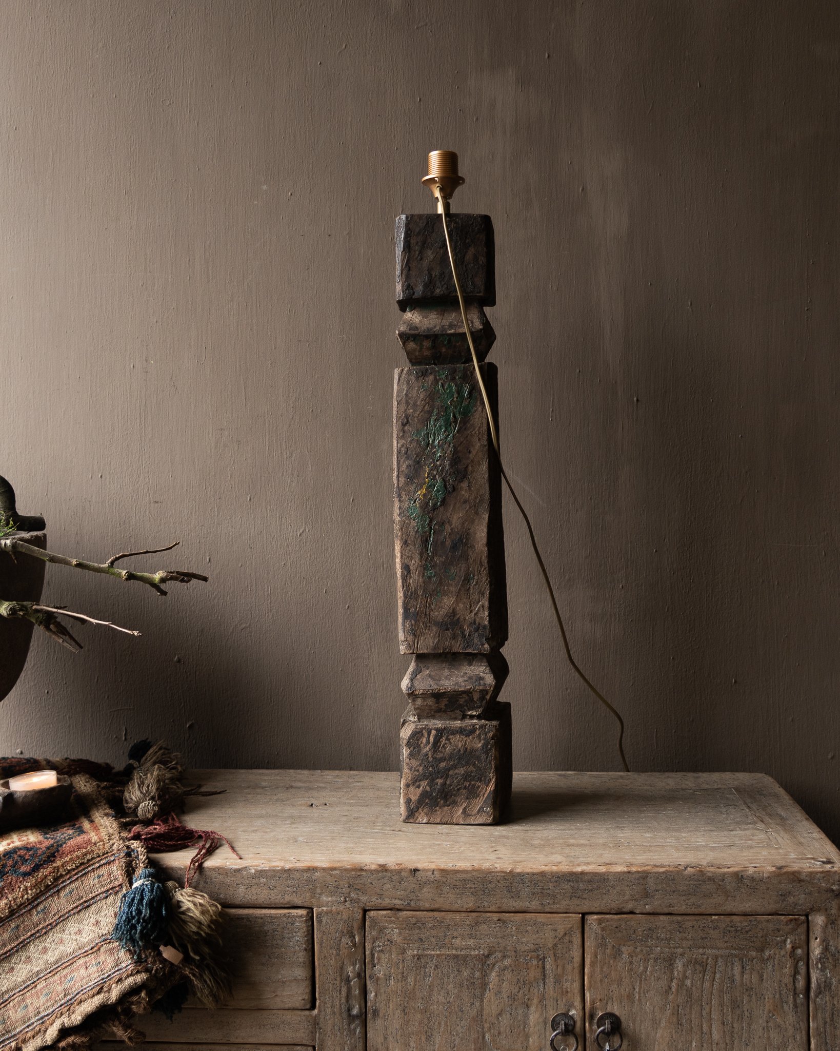 Einzigartiger Balusterlampenfuß aus altem Holz