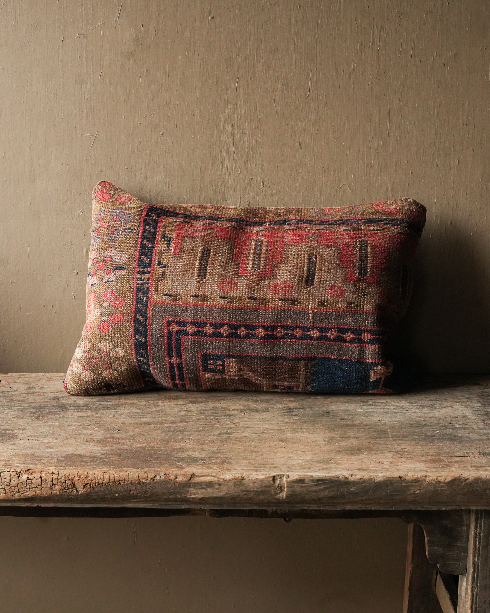 Wunderschön gefärbtes, einzigartiges Kissen aus altem Teppich