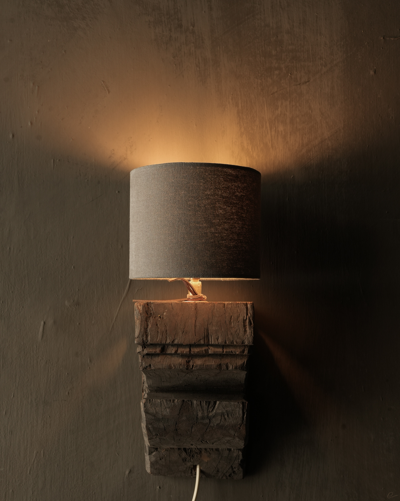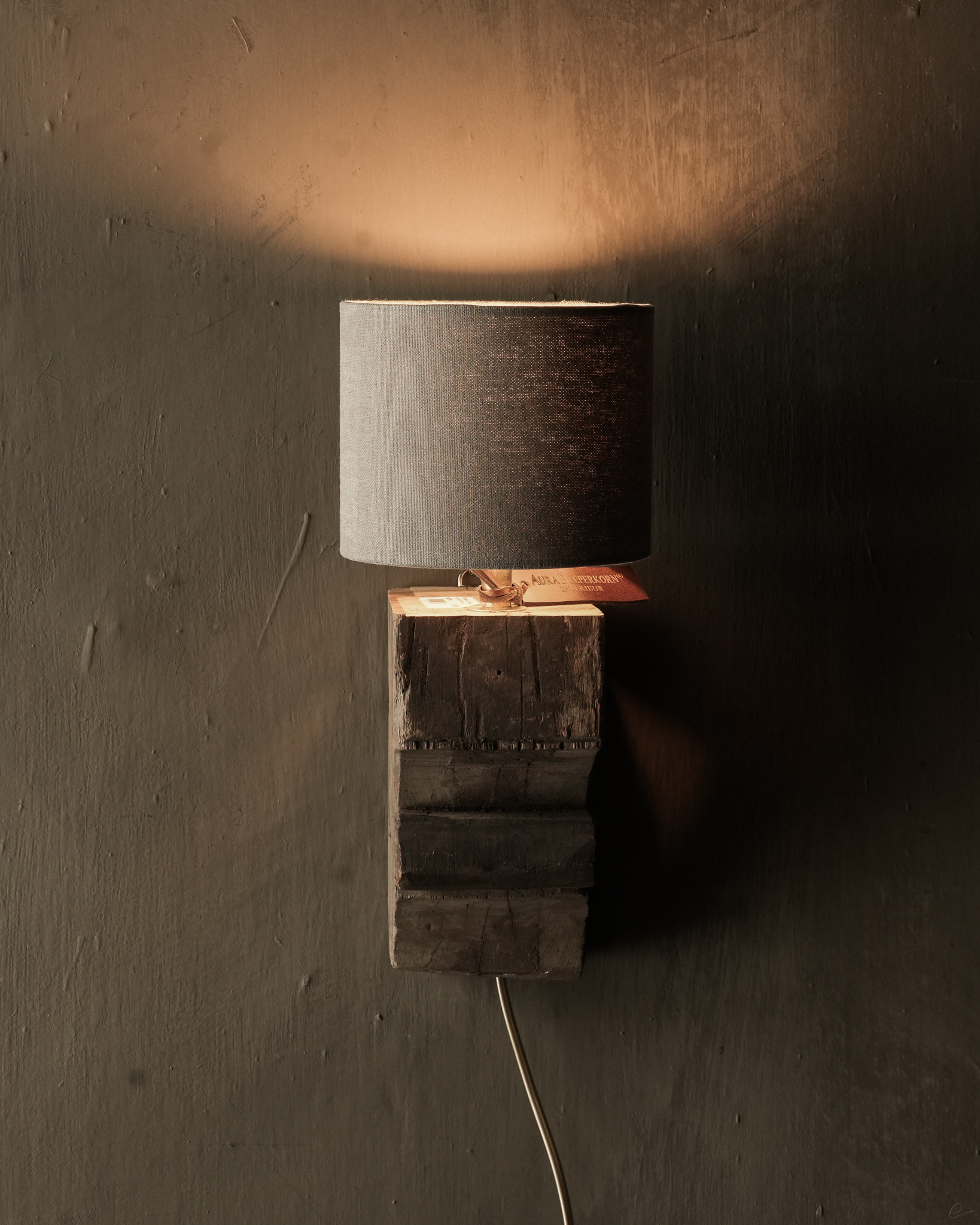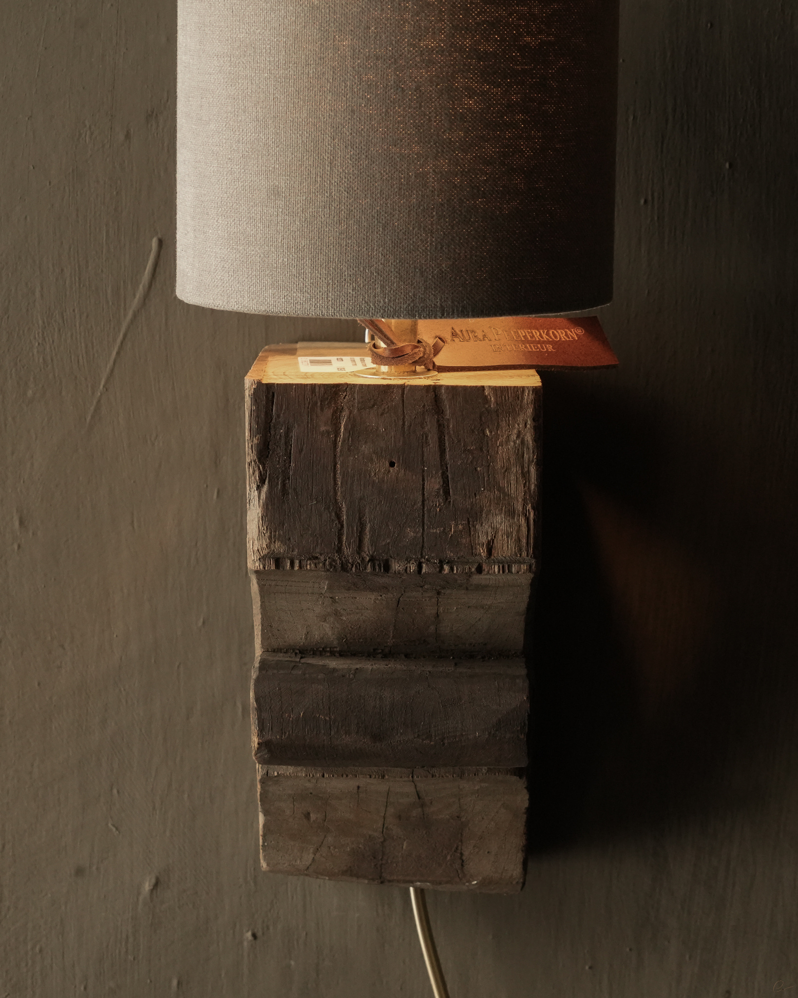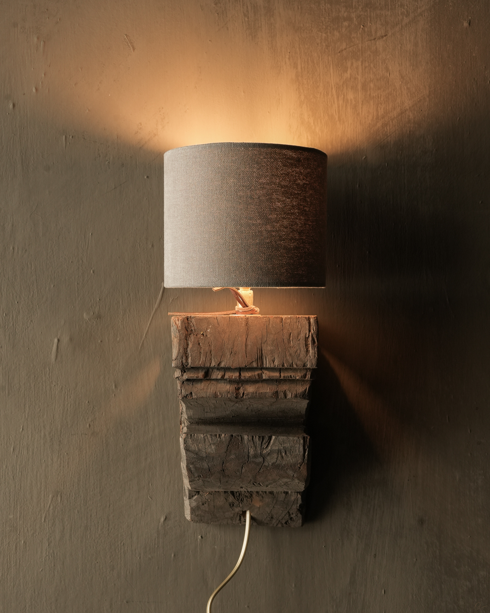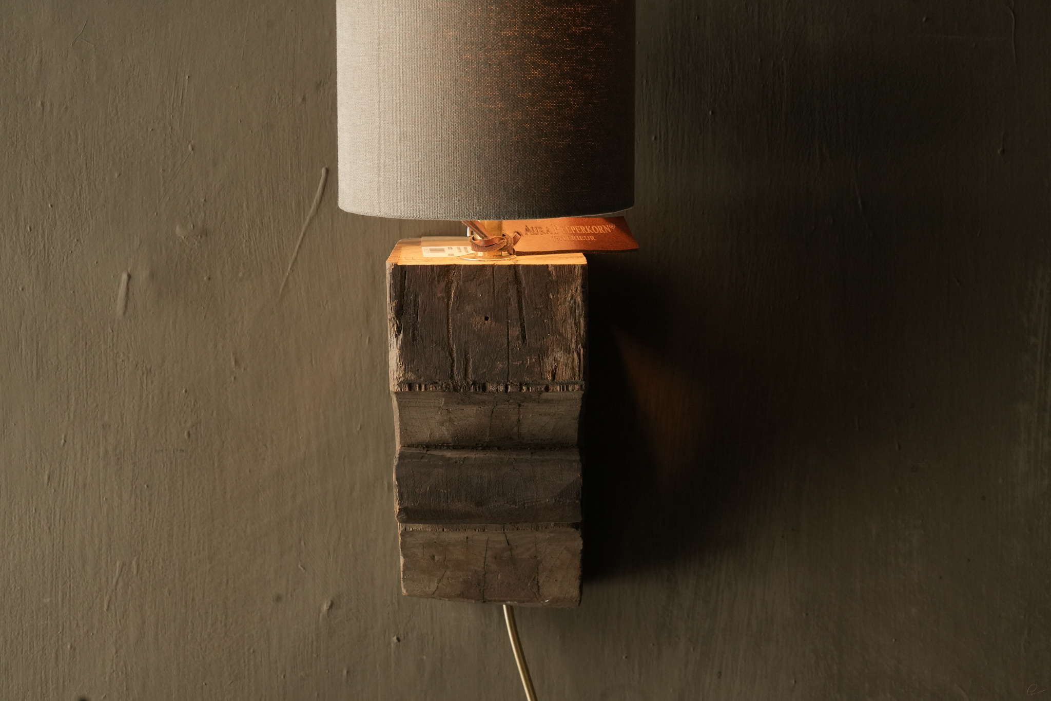 Schöne stabile alte Holzbalken-Wandlampe