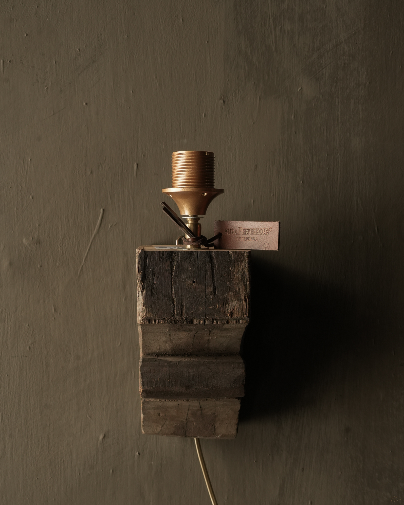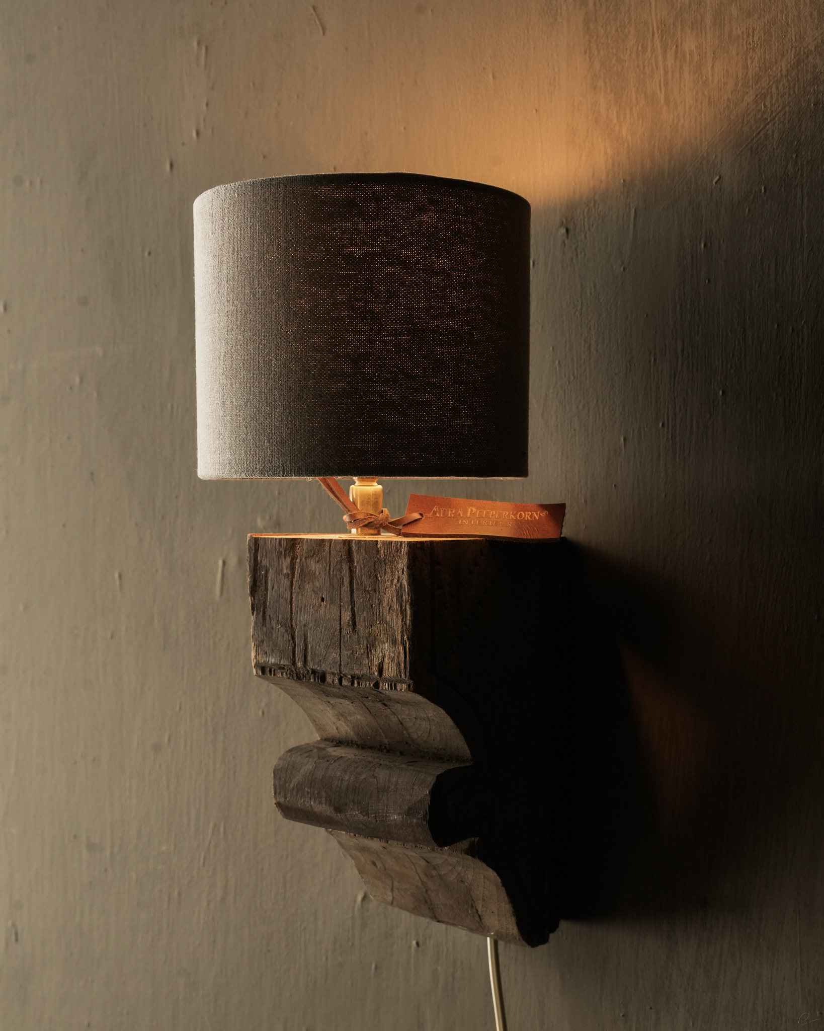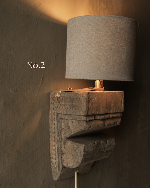Schöne, robuste Wandlampe aus Holz mit altem Ornament