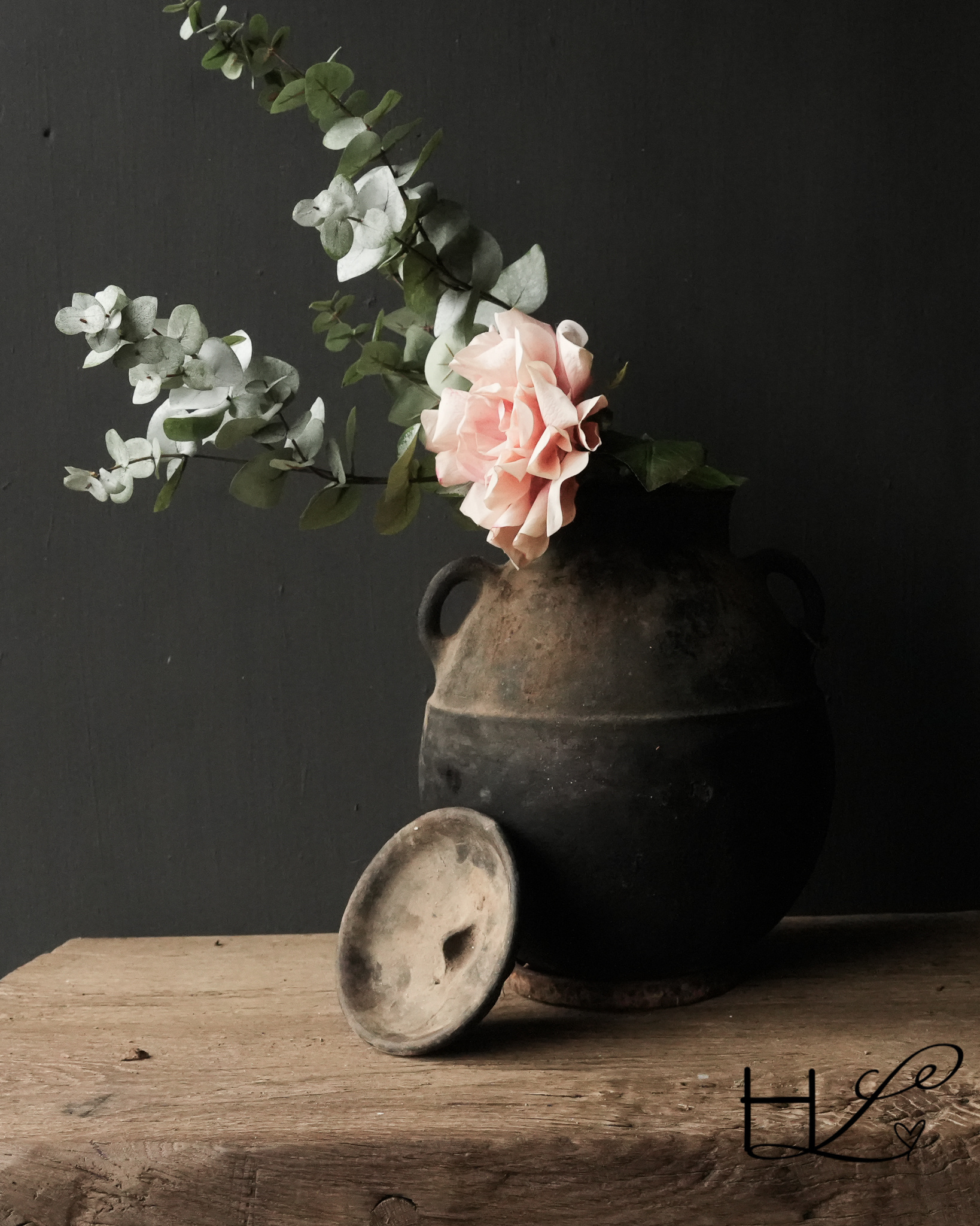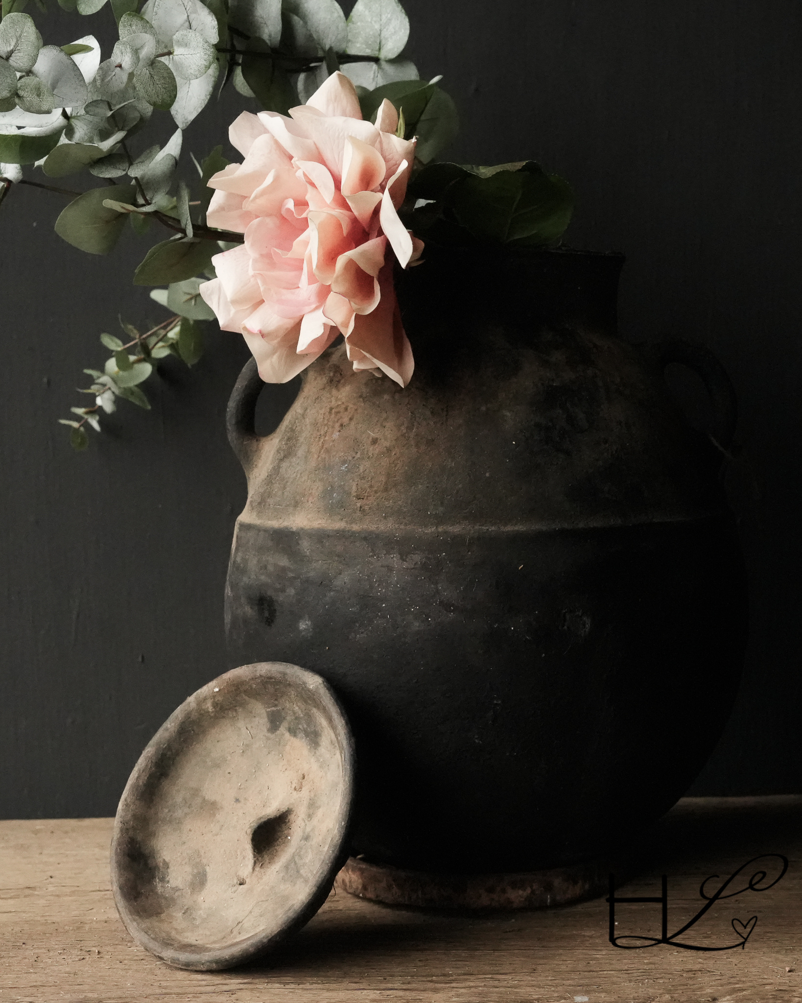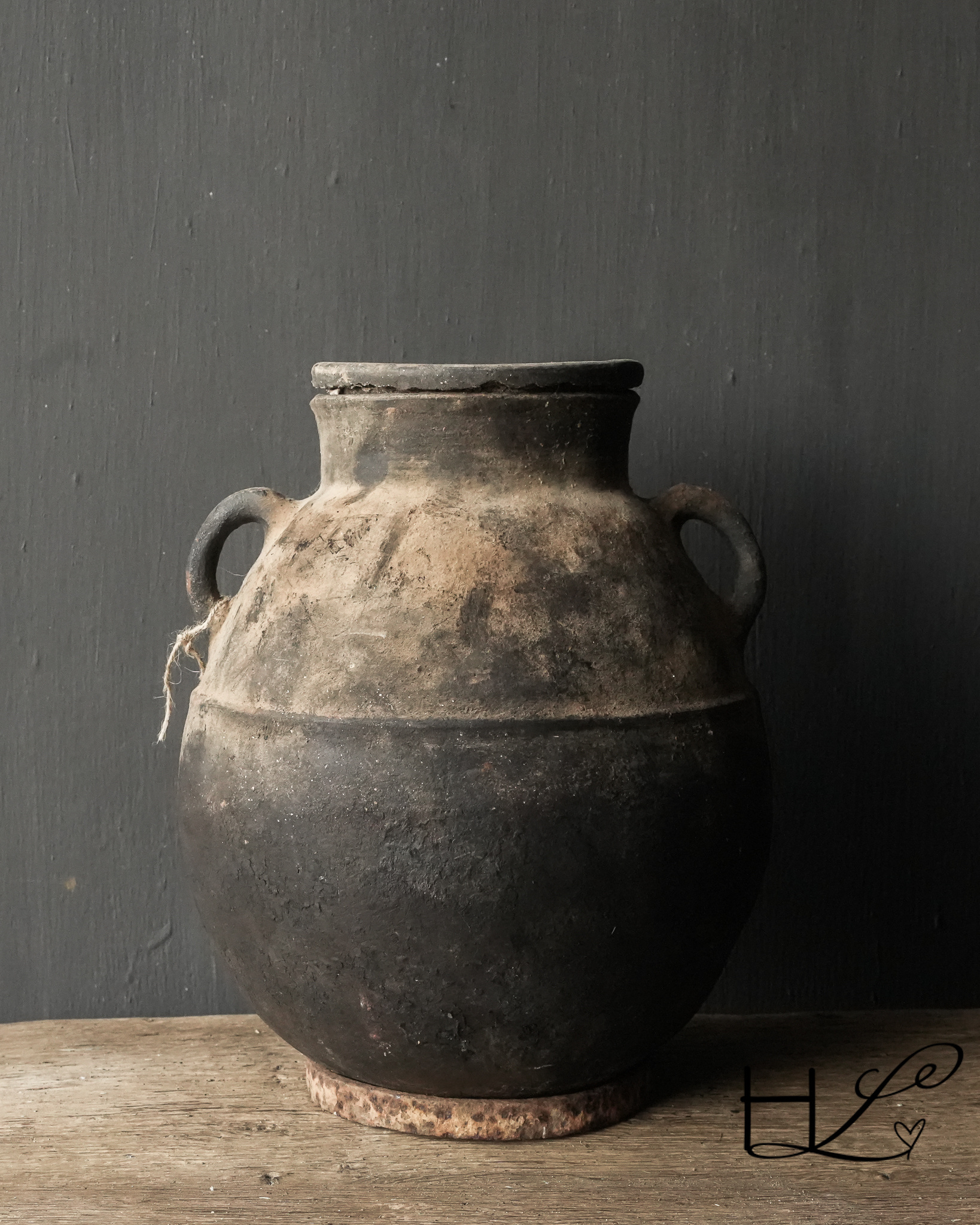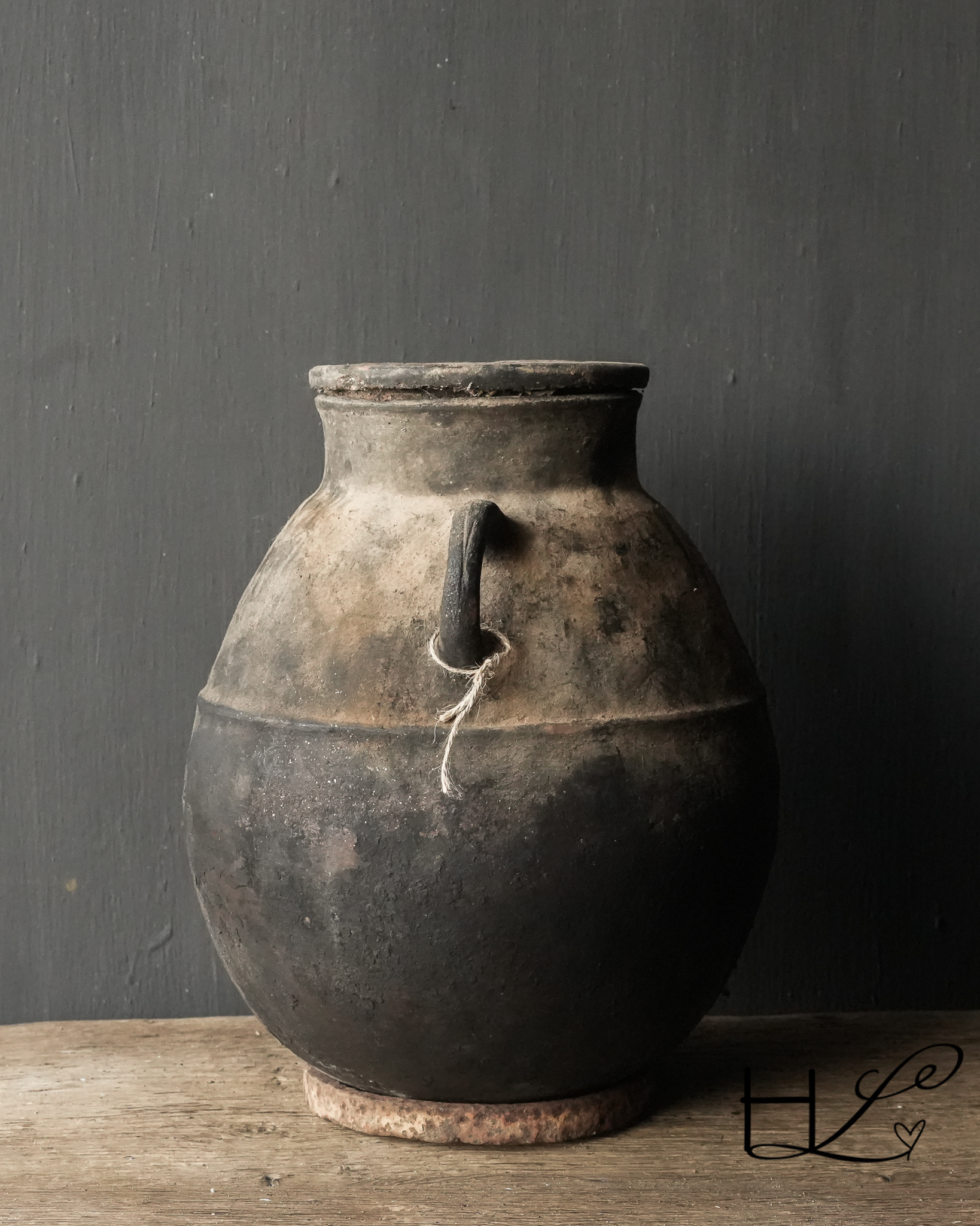 Der Krug hat einen abgerundeten Boden. Er wird mit einem alten Stahlring geliefert, auf den der Krug gestellt werden kann