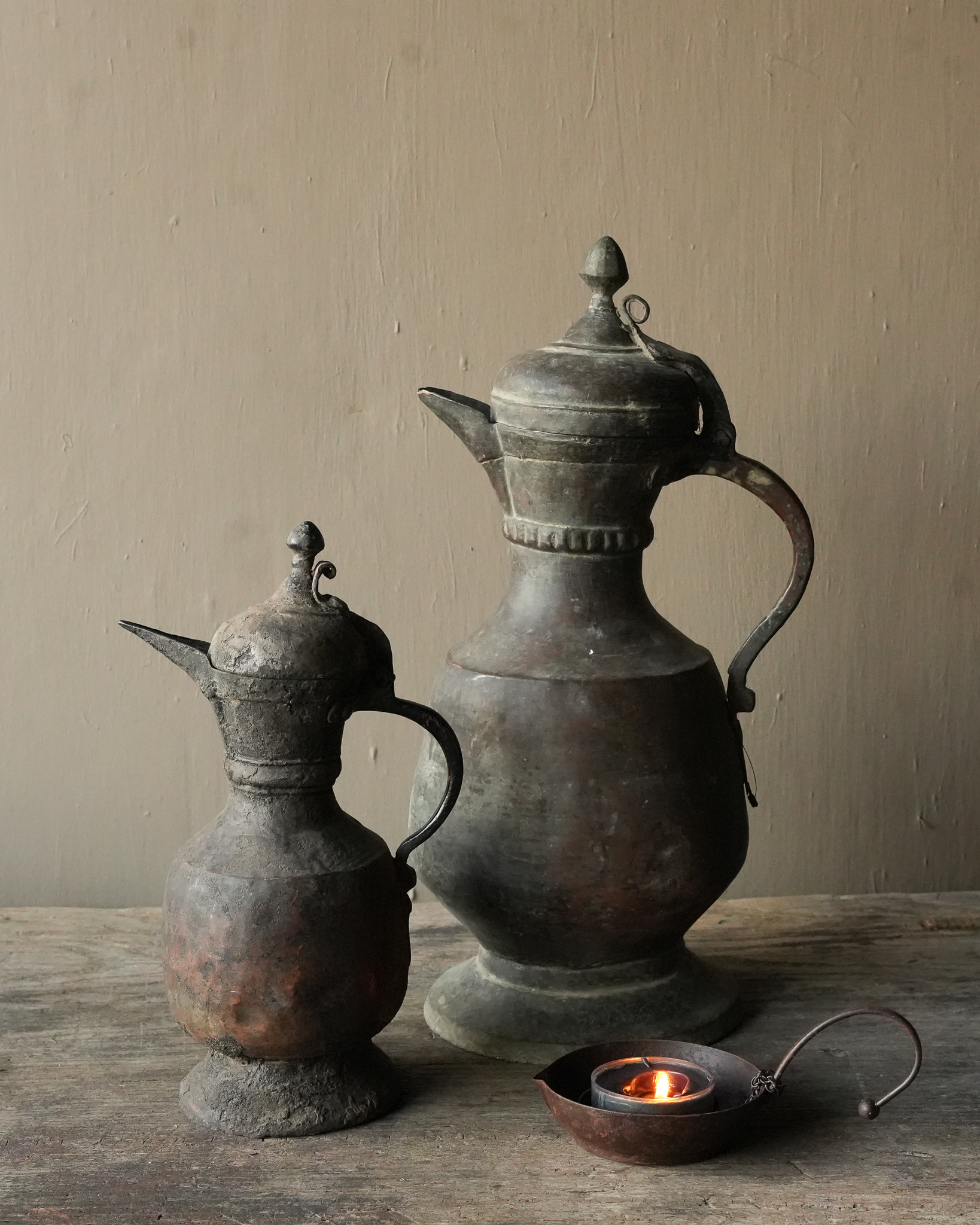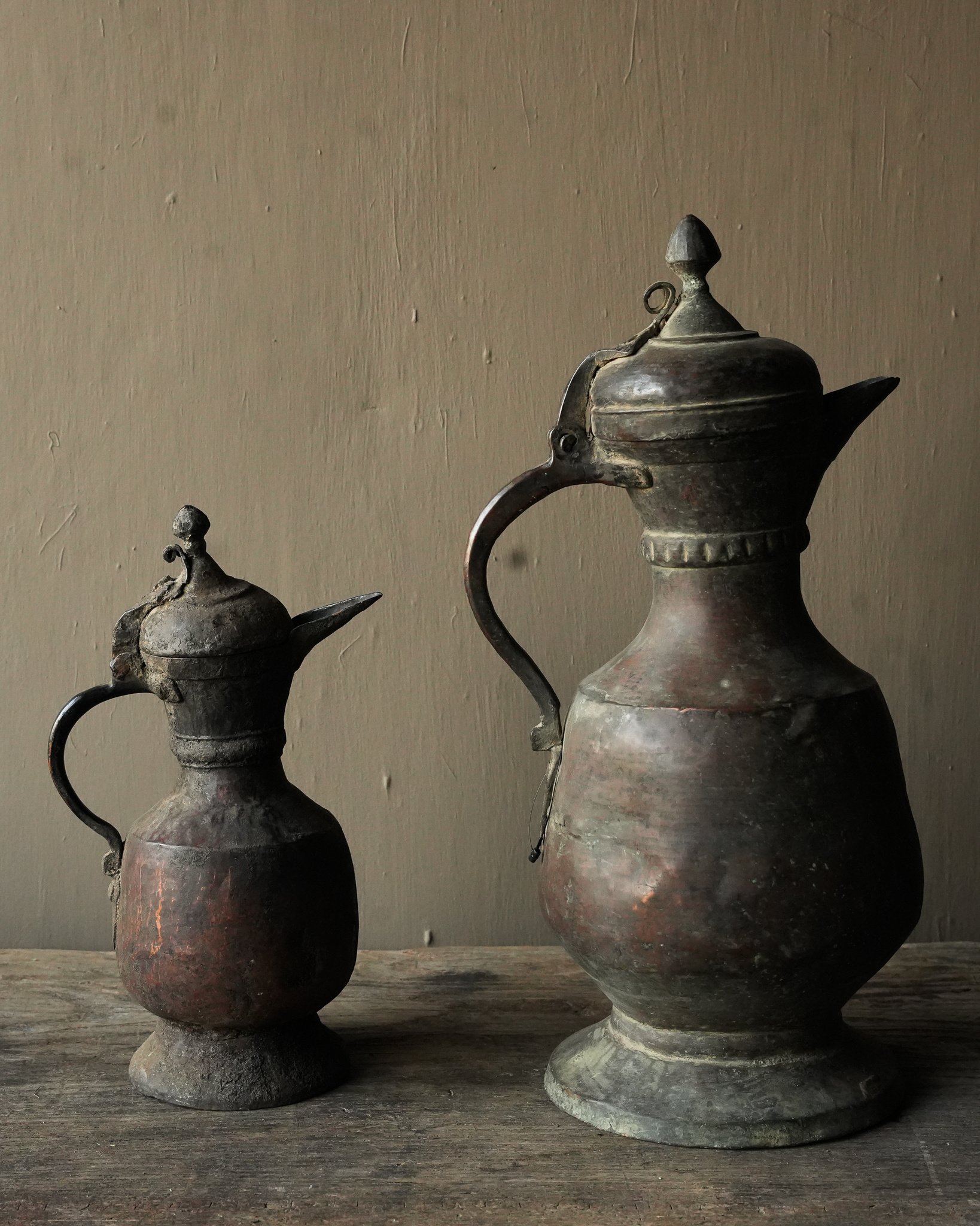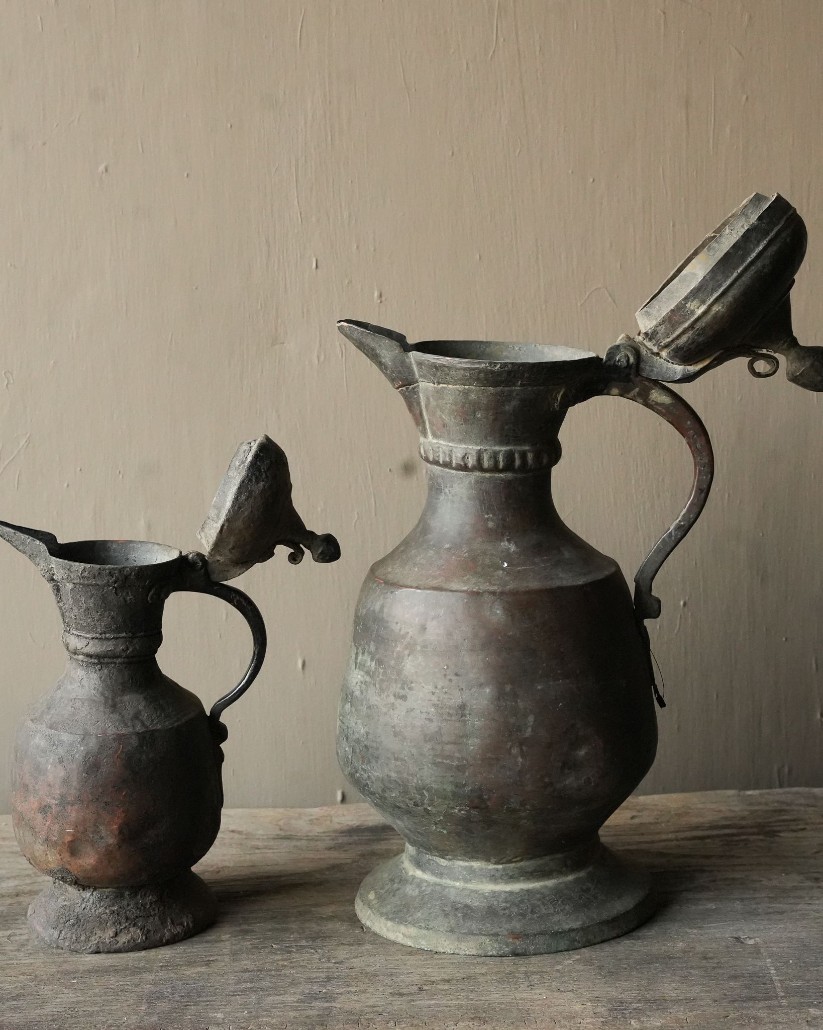 An antique copper wine jug from India can be a beautiful and historically valuable object, even if it has imperfections. Often handmade, these jugs reflect India’s rich artisanal traditions and can date back to various periods, from ancient civilizations to British colonial times. Imperfections, such as dents, scratches or patina, add to the authenticity and story of the piece. They are a testament to the object’s journey through time and give it character. Owning such a wine jug can have not only aesthetic value, but also cultural and historical significance, making it a valuable collector’s item for antique and history enthusiasts.