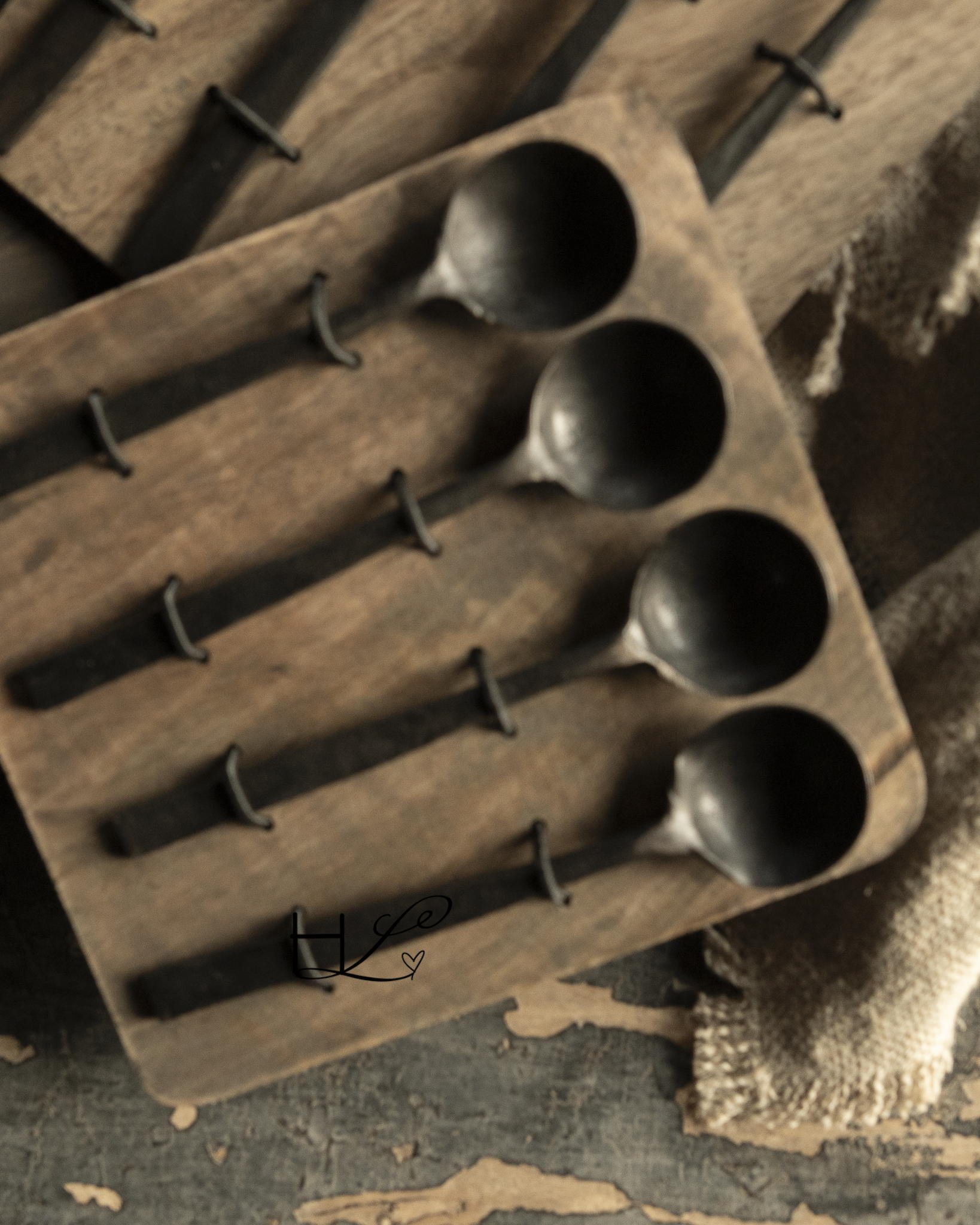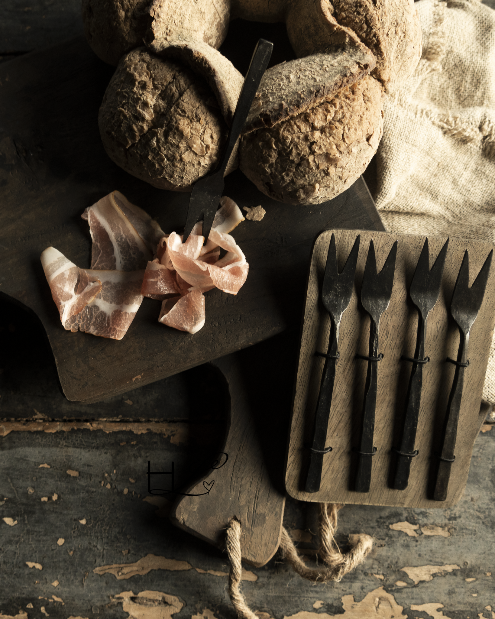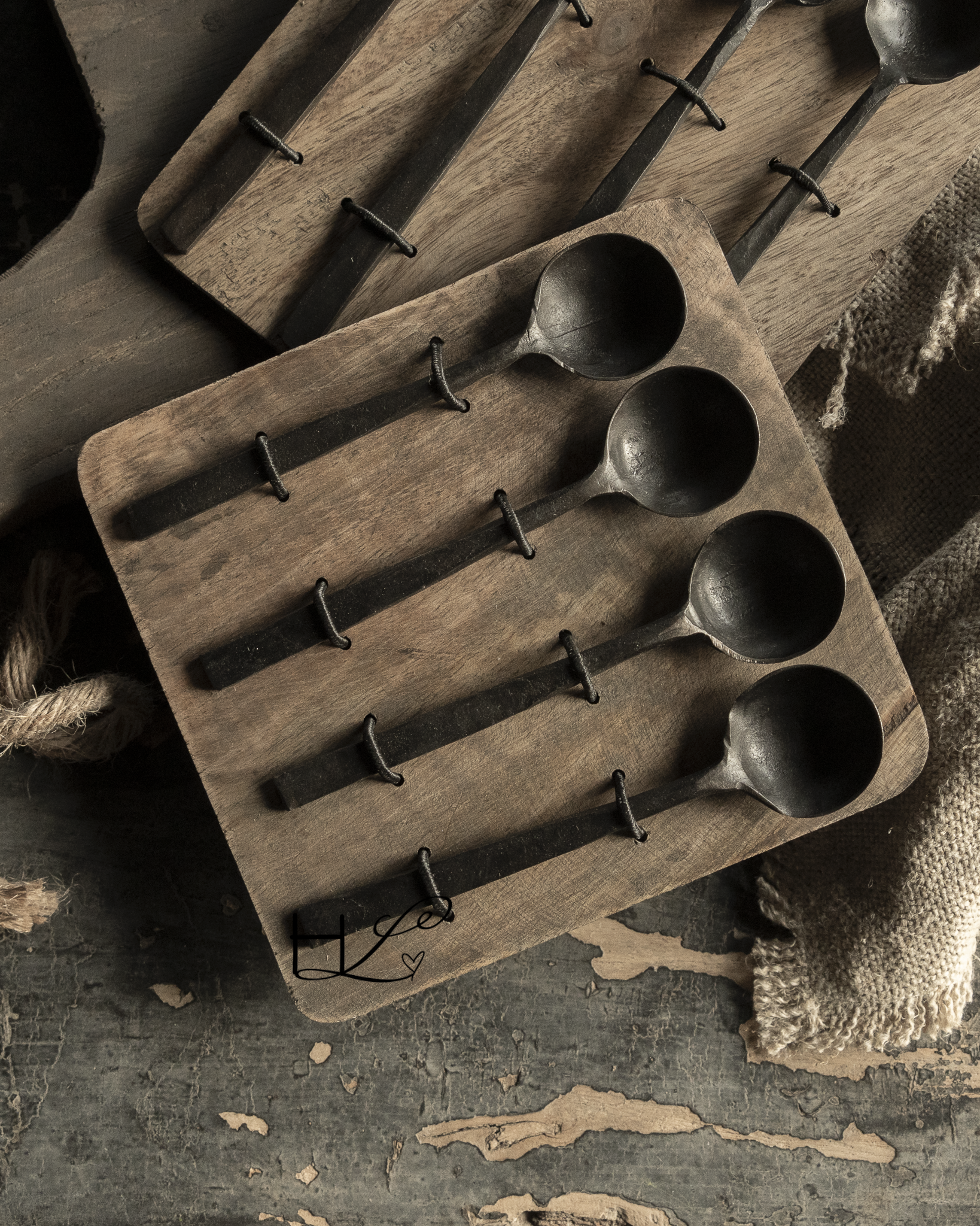 This atmospheric set of spoons or forks from Aura Peeperkorn , presented on a beautiful wooden plate, is a stylish and original gift for lovers of pure and rugged living.