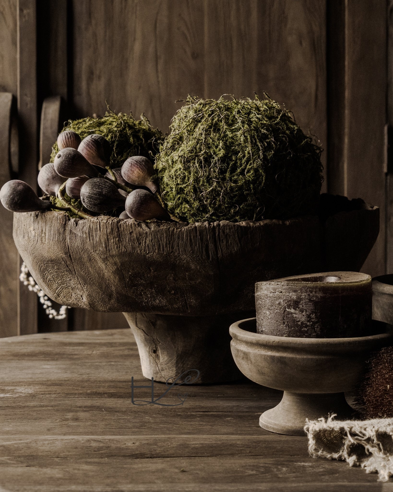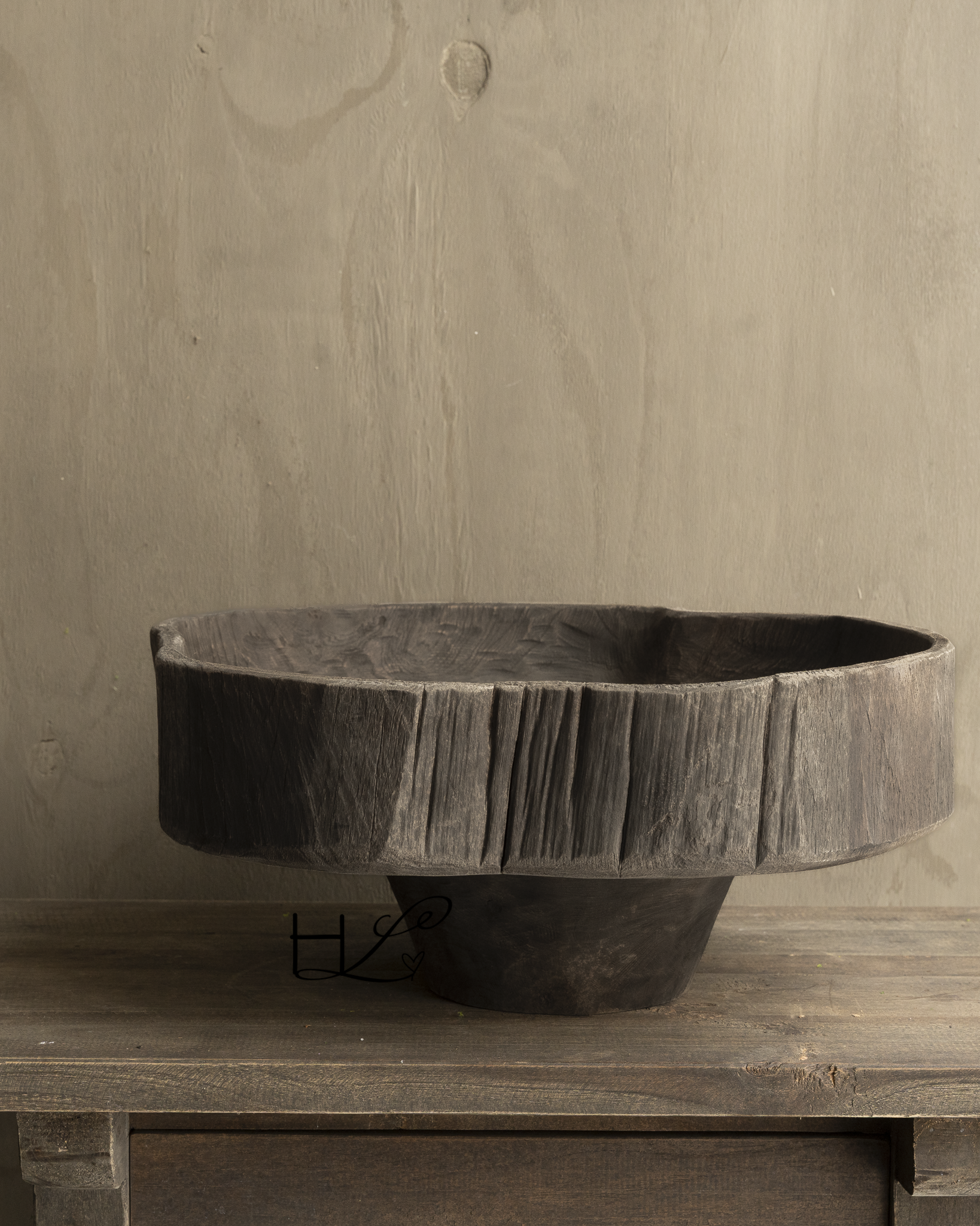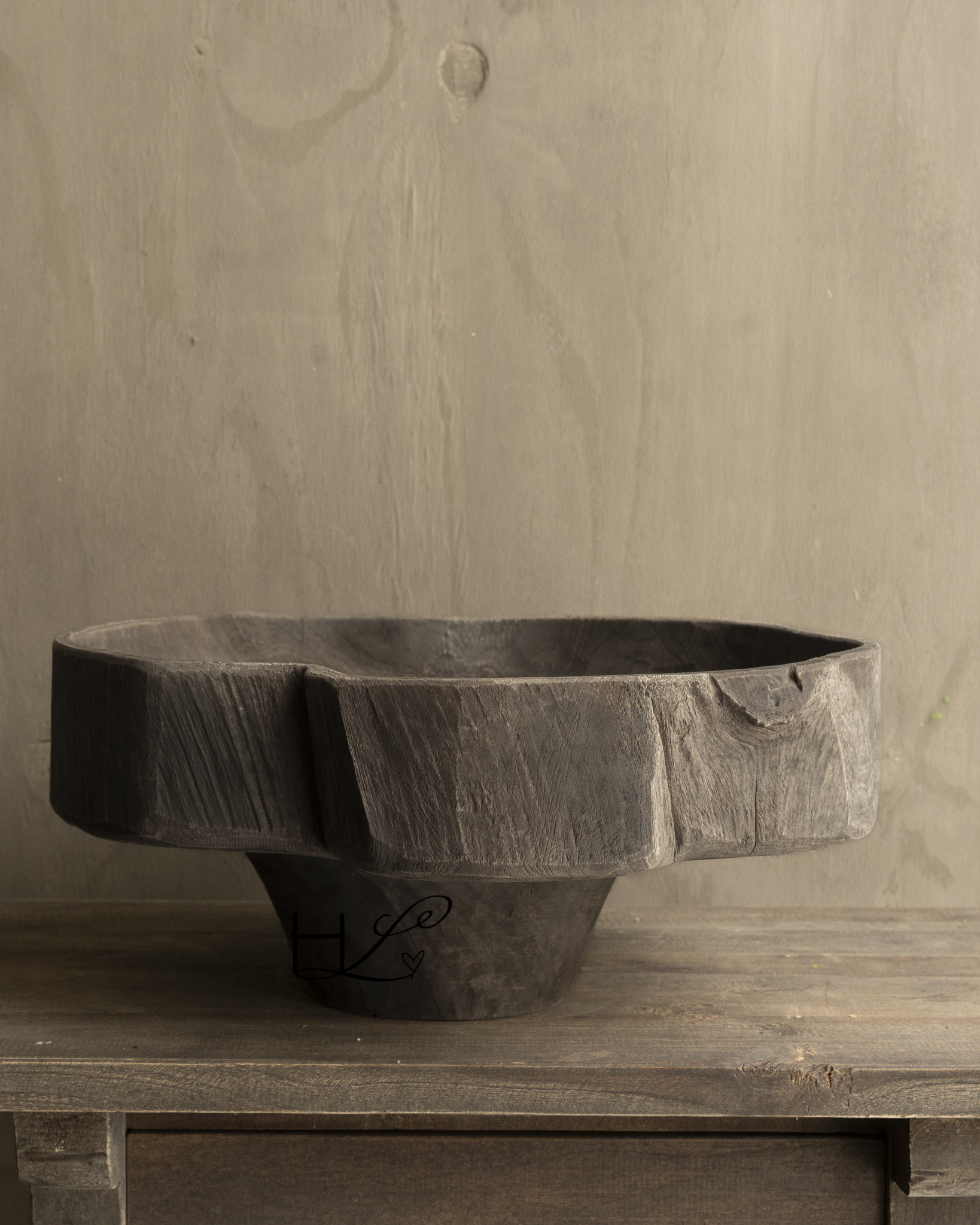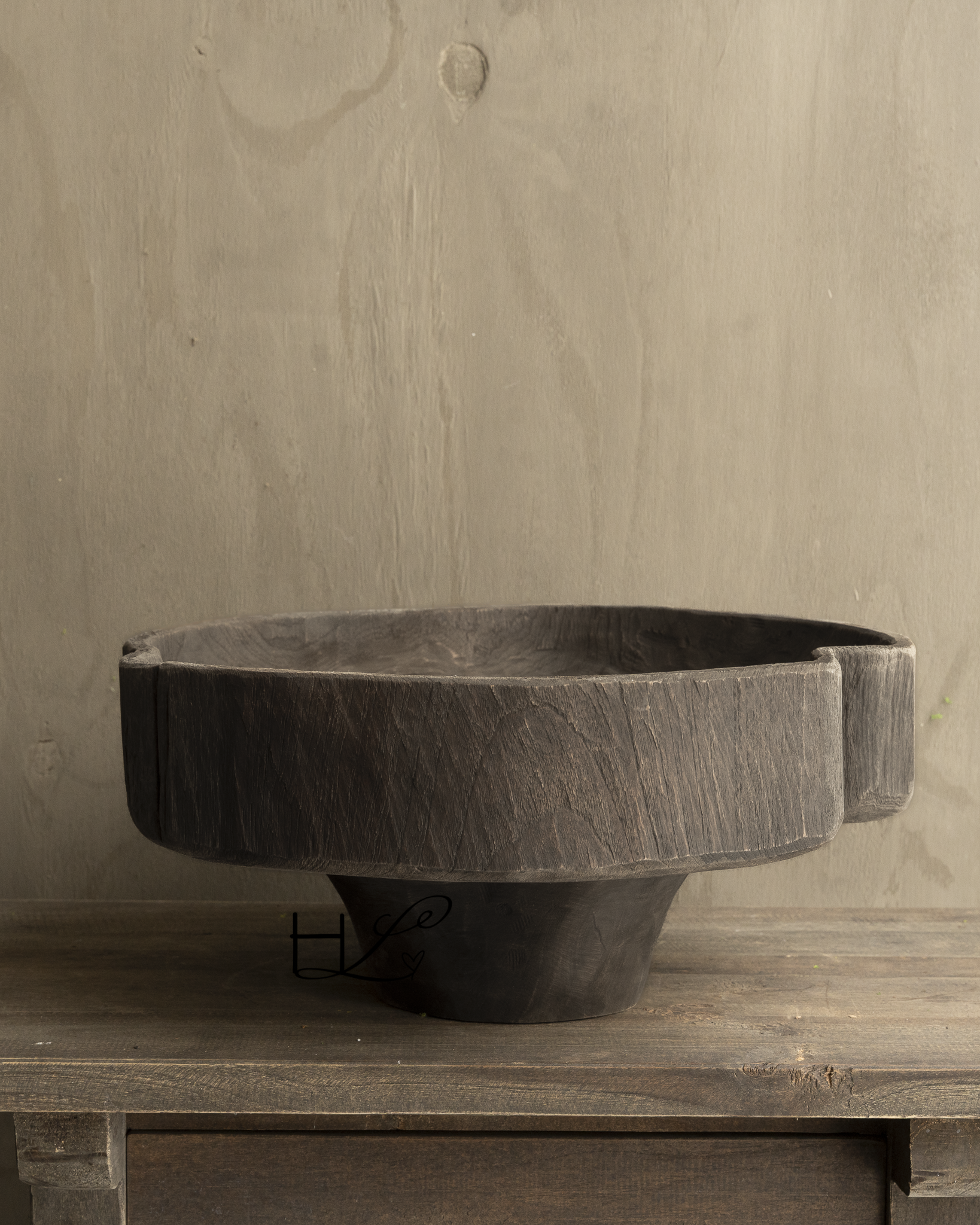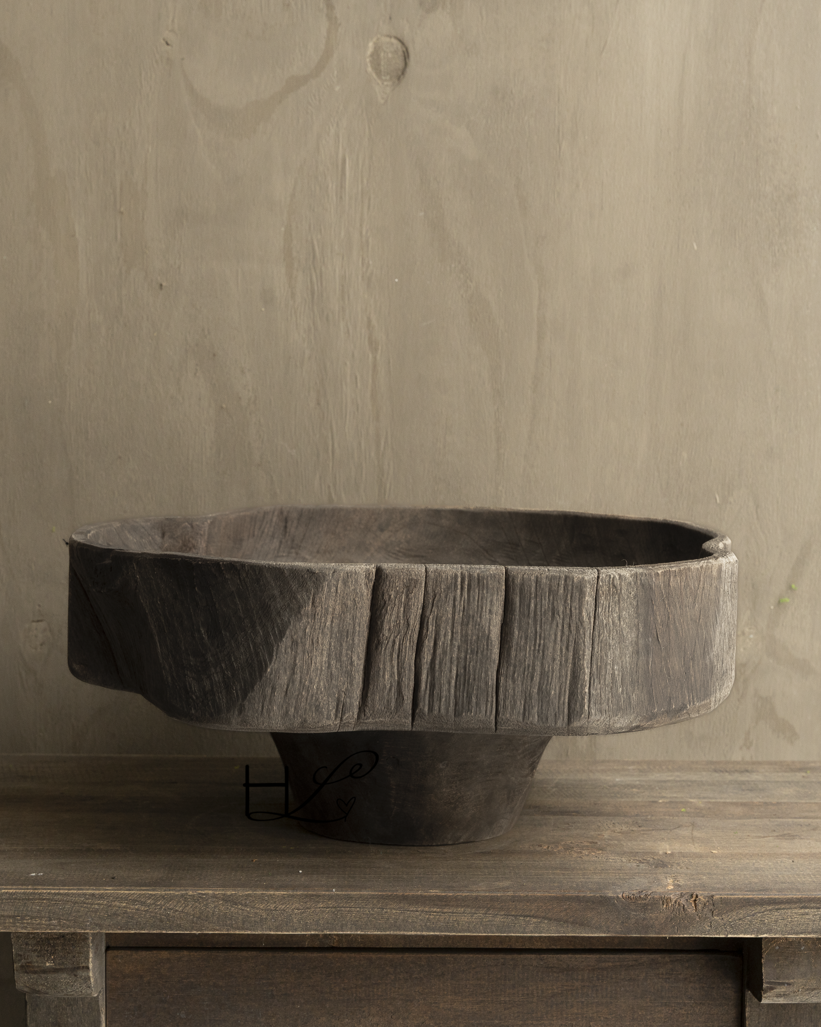 This beautiful antique wooden bowl on a stand is a unique decorative piece that instantly adds warmth and ambiance to any interior. With its weathered appearance, robust wood grain, and natural imperfections, this bowl tells the story of craftsmanship and timeless craftsmanship.