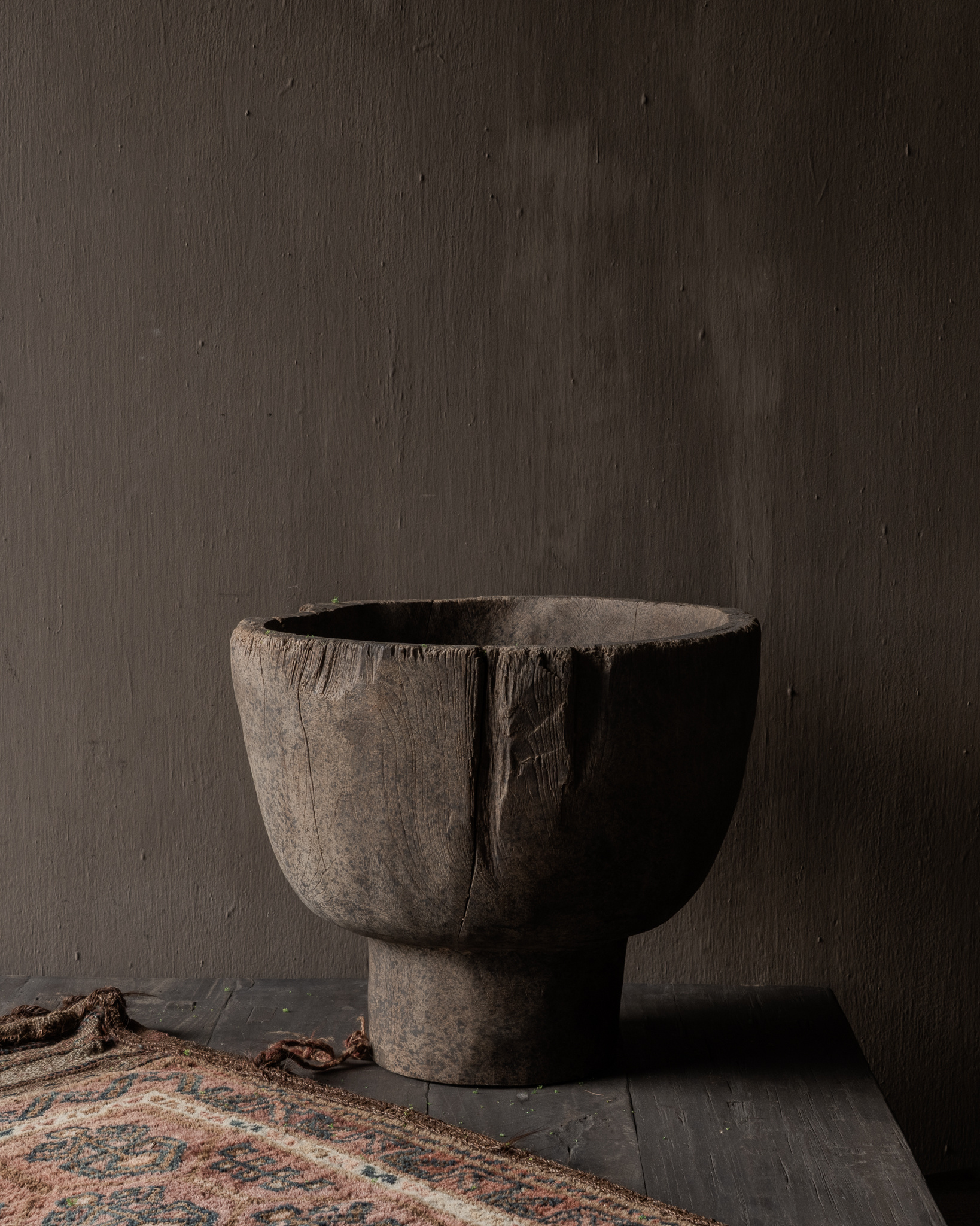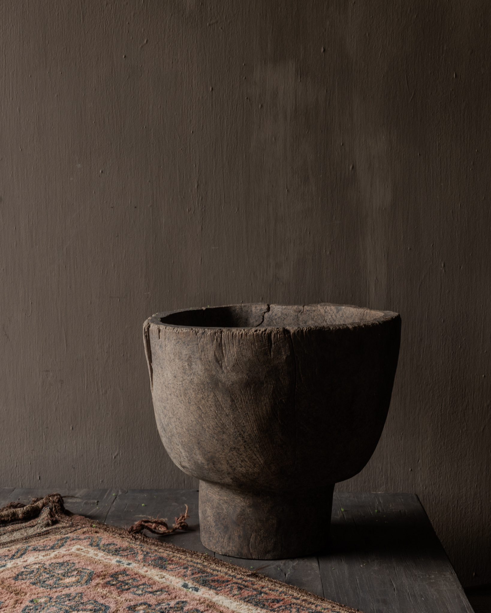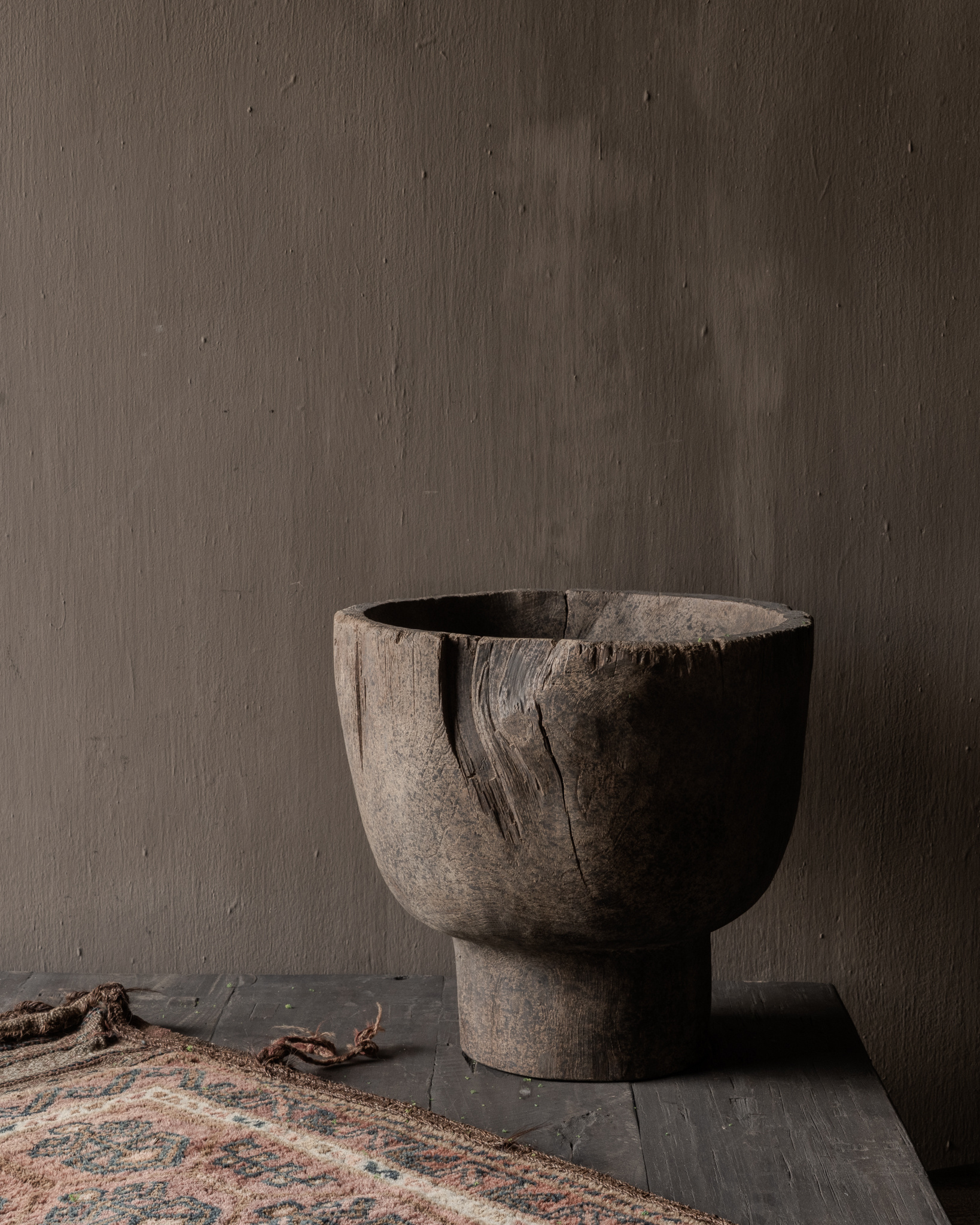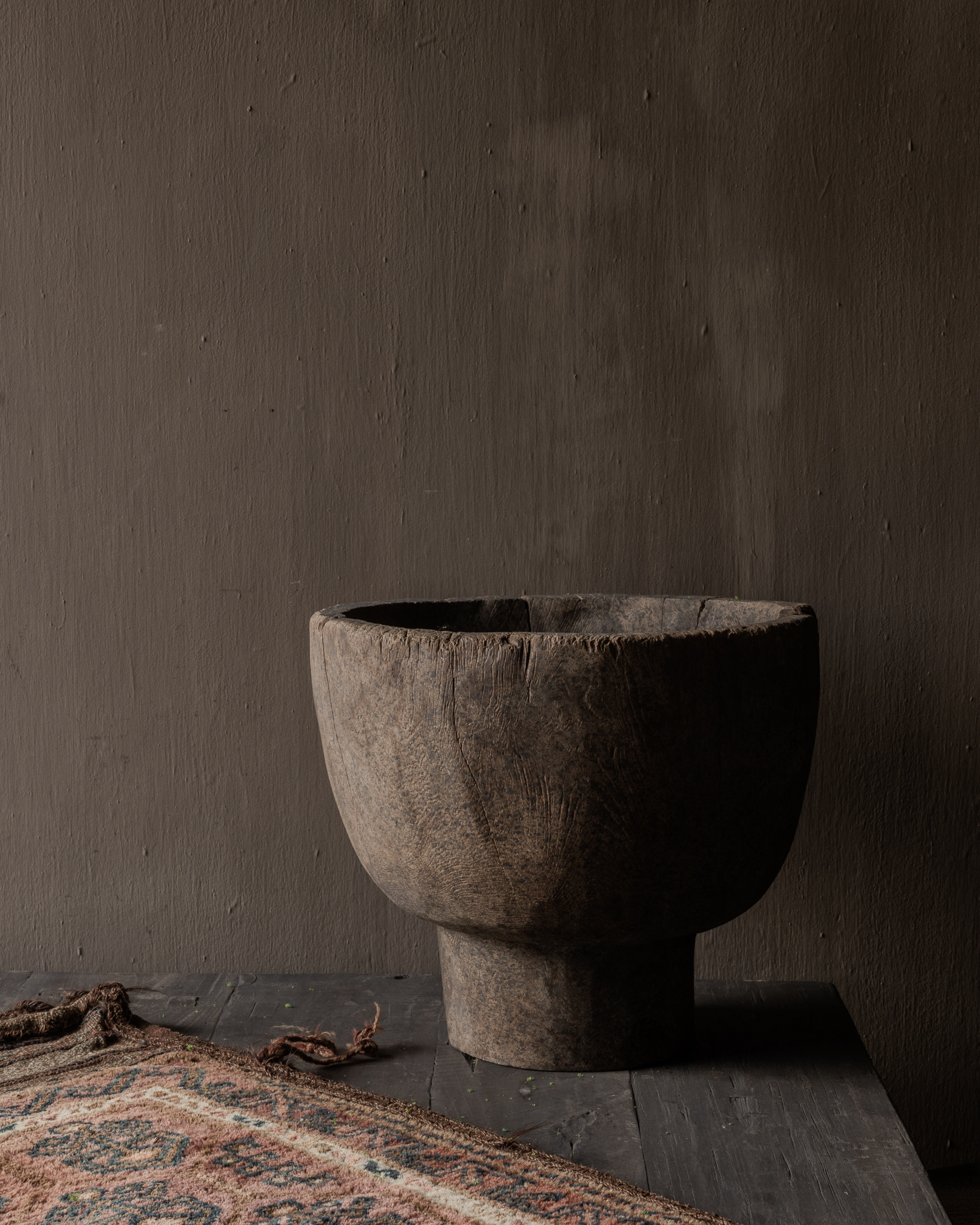 Old wooden bowl on a stand | Luksa Dimensions: Ø41 x H35 cm