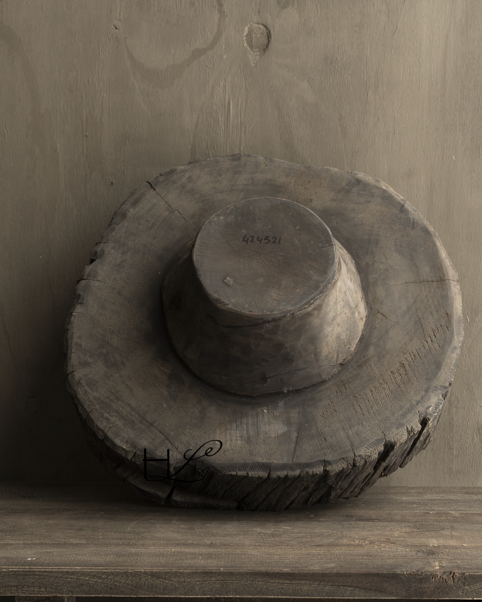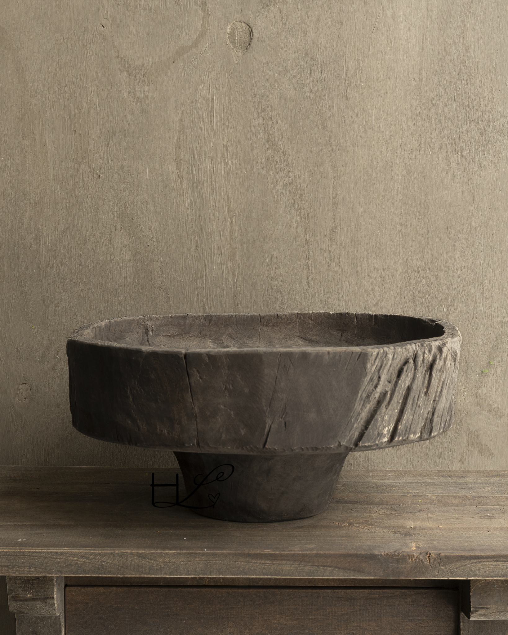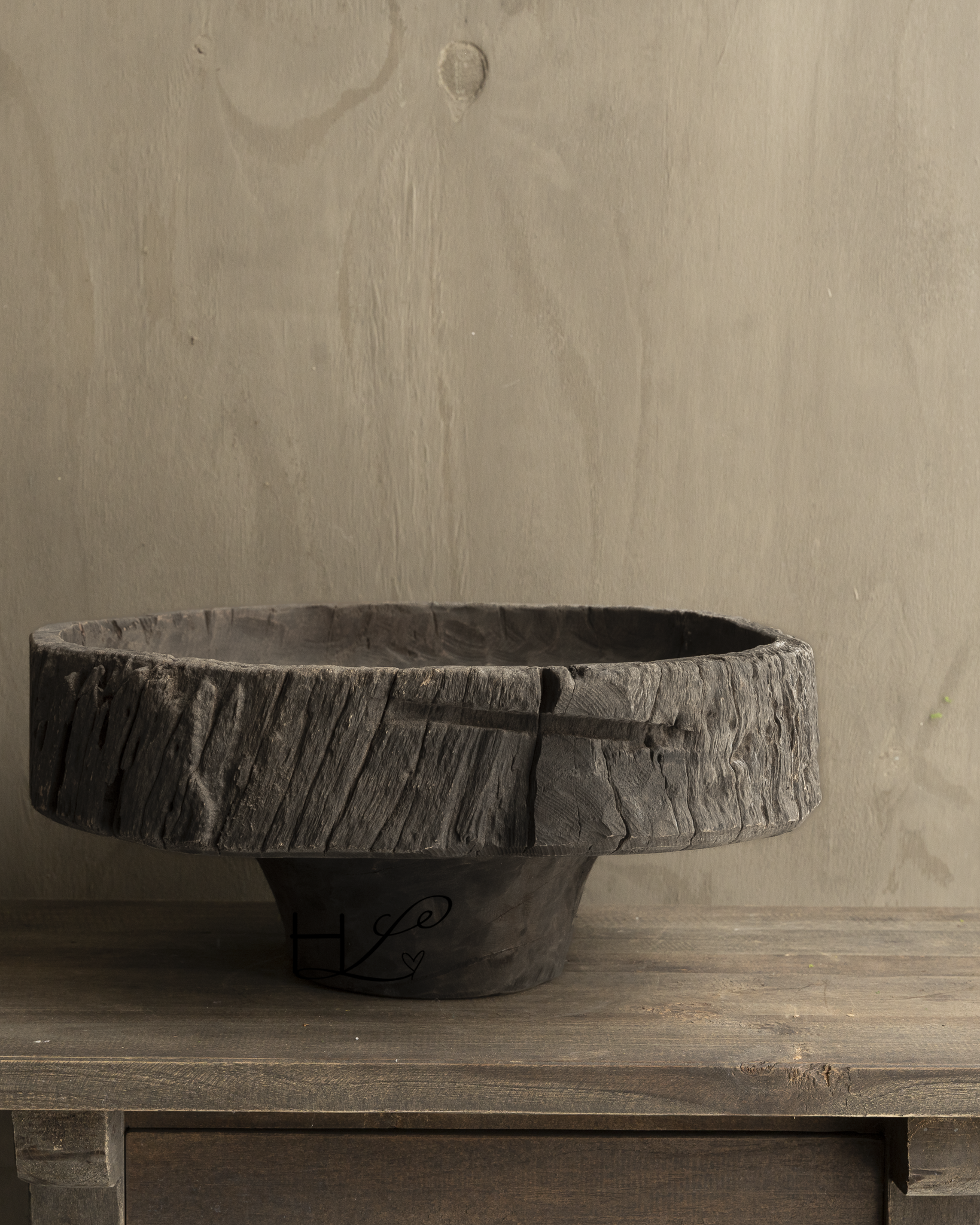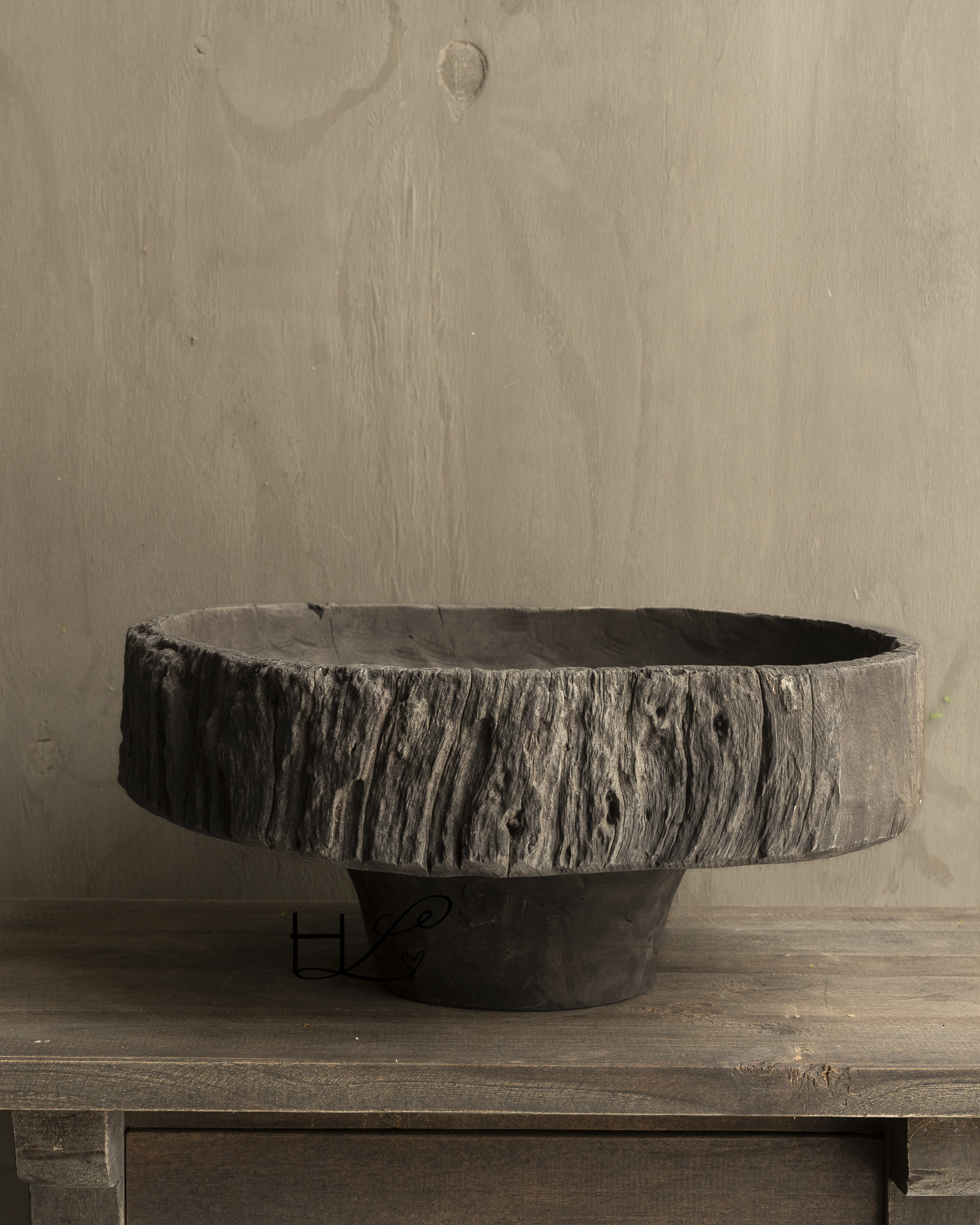 This beautiful antique wooden bowl on a stand is a unique decorative piece that instantly adds warmth and ambiance to any interior. With its weathered appearance, robust wood grain, and natural imperfections, this bowl tells the story of craftsmanship and timeless craftsmanship.