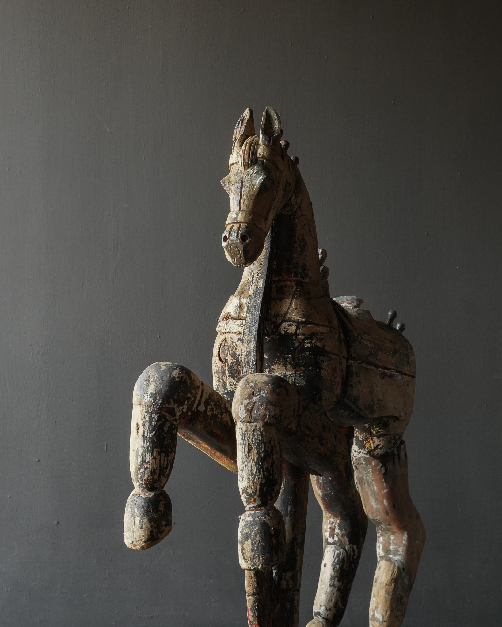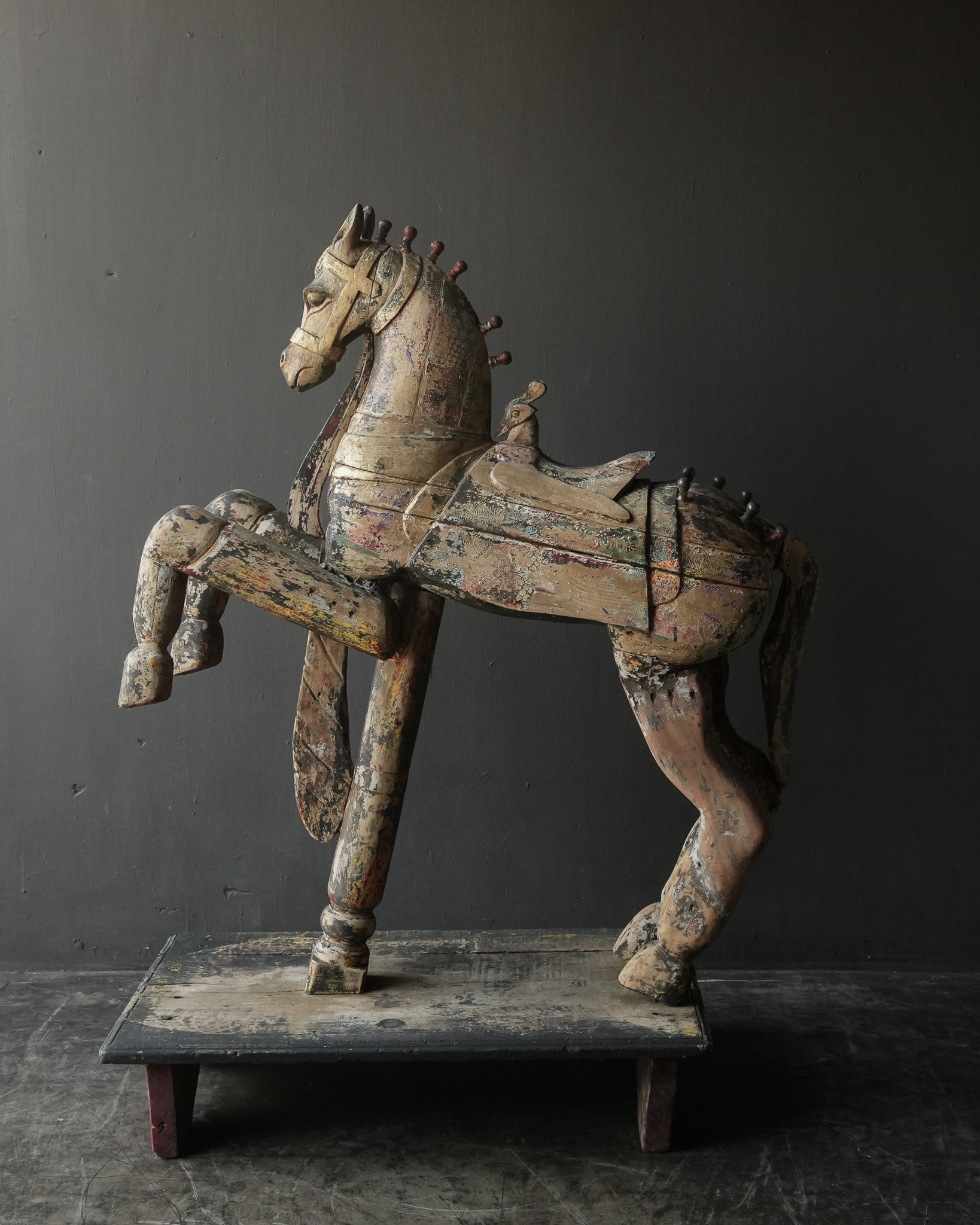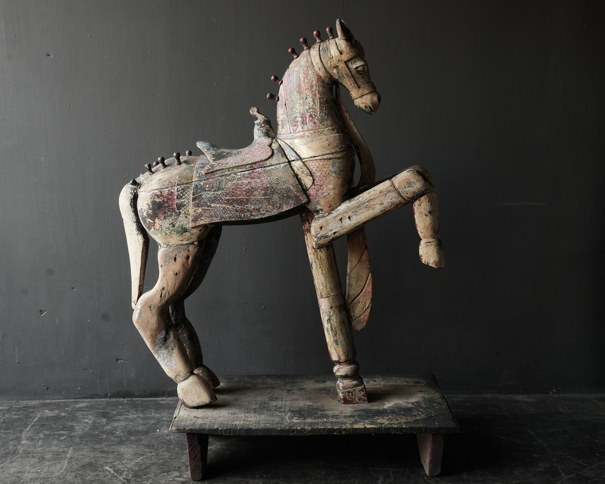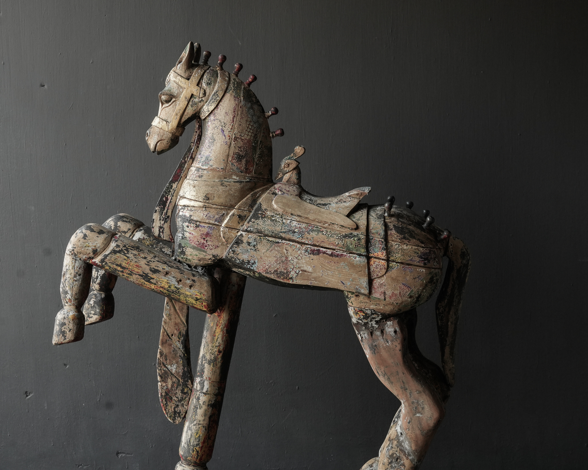Beautiful large antique worn colored unique wooden horse