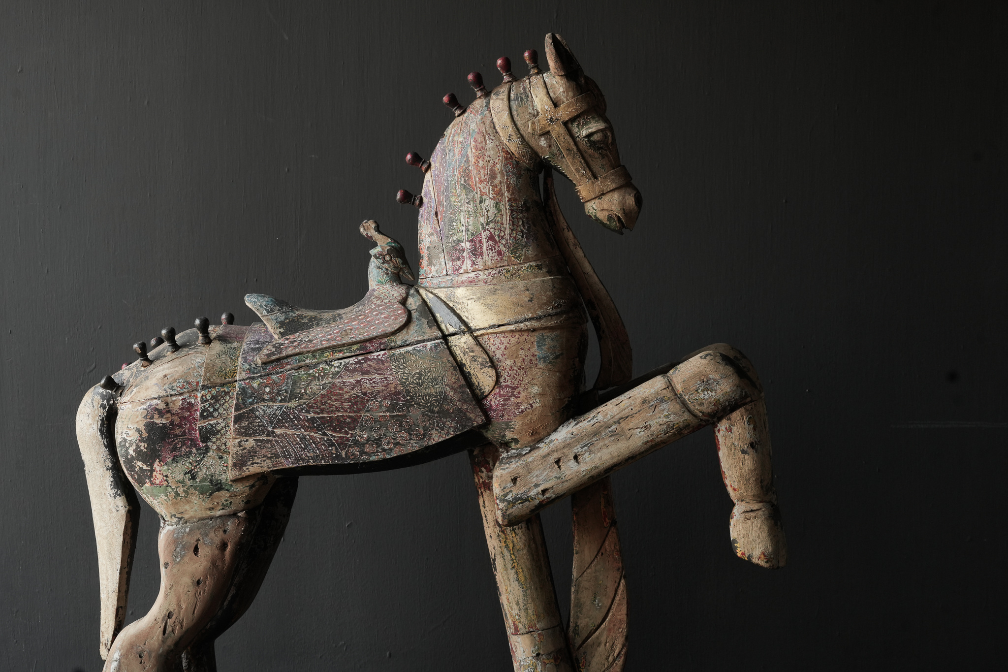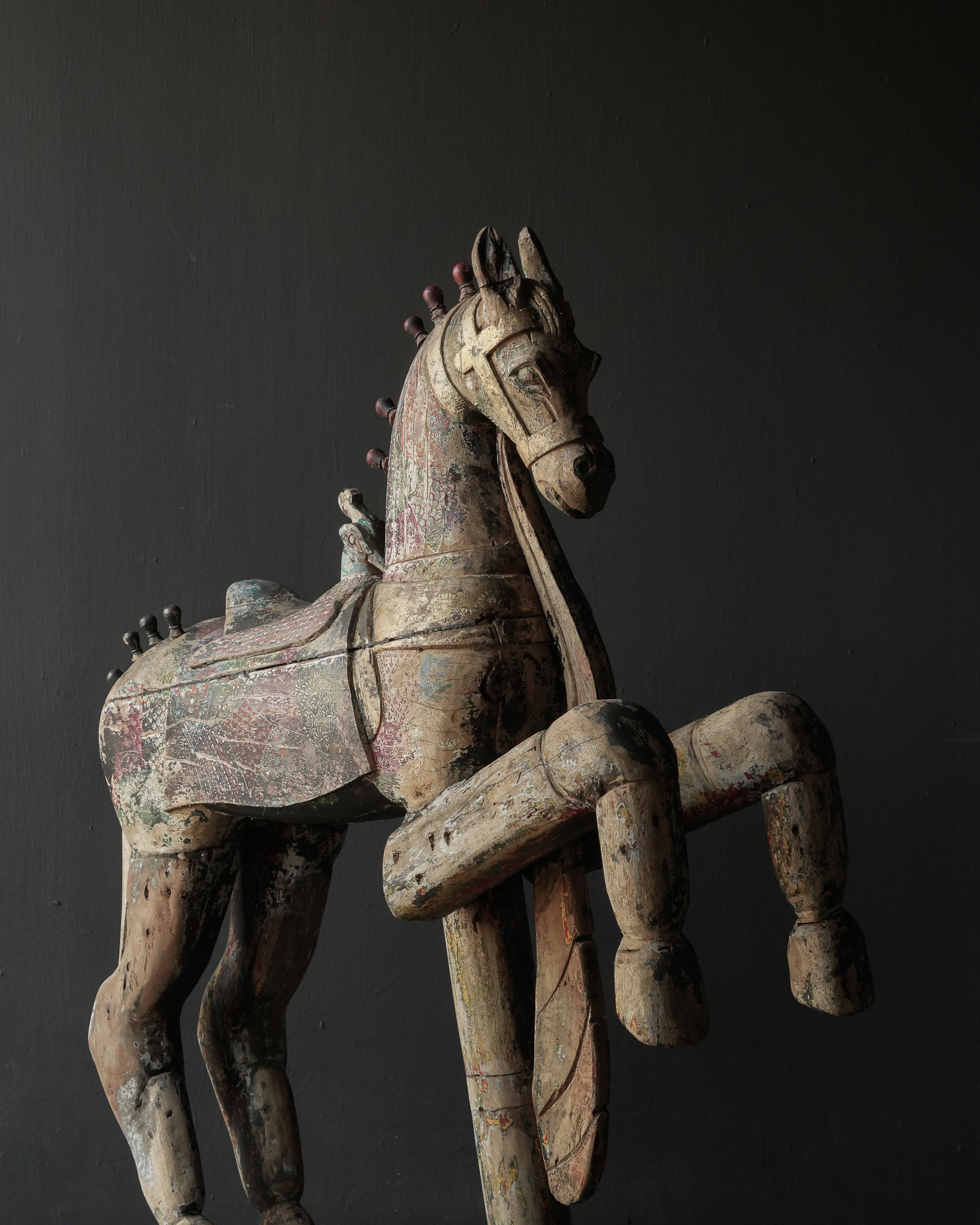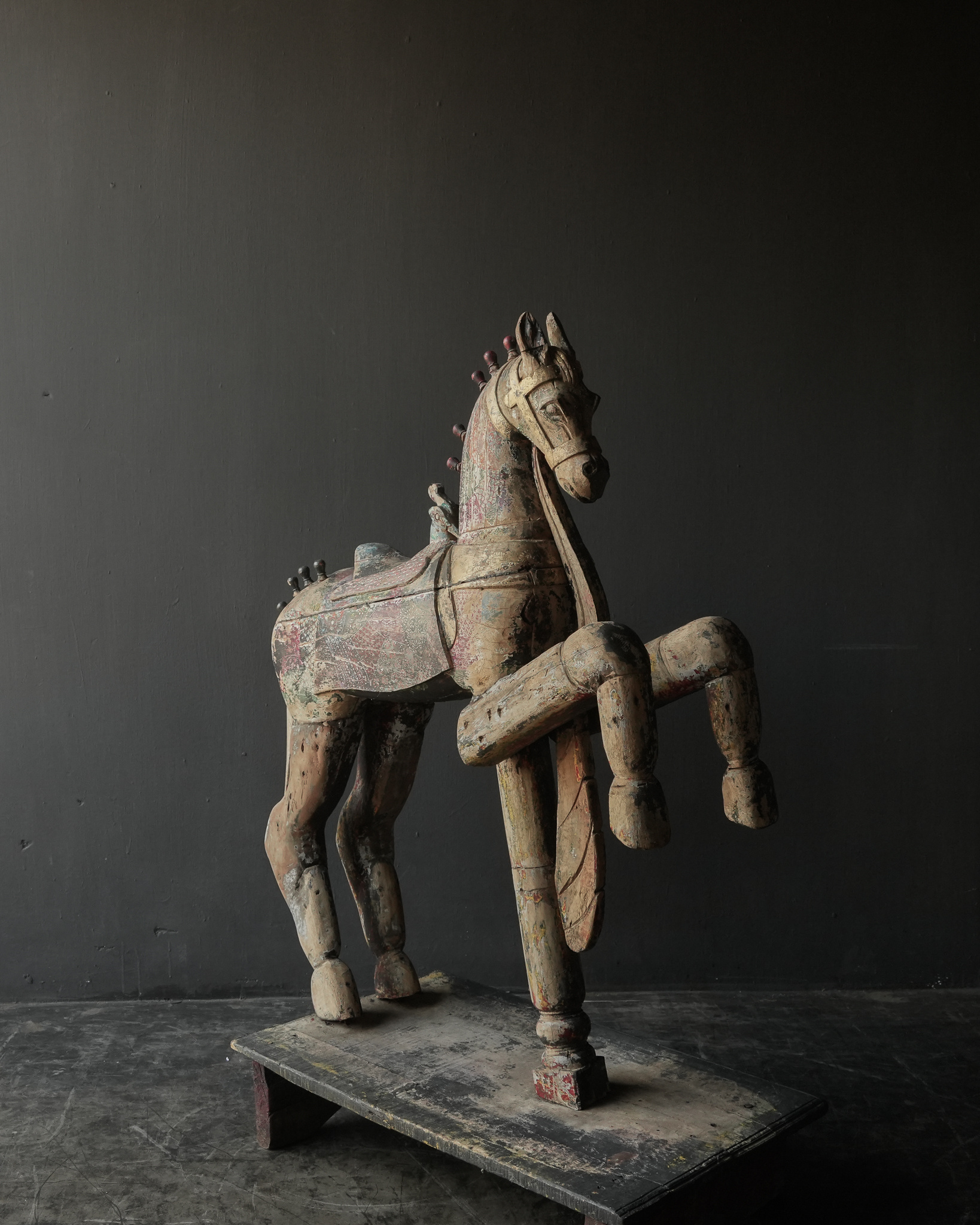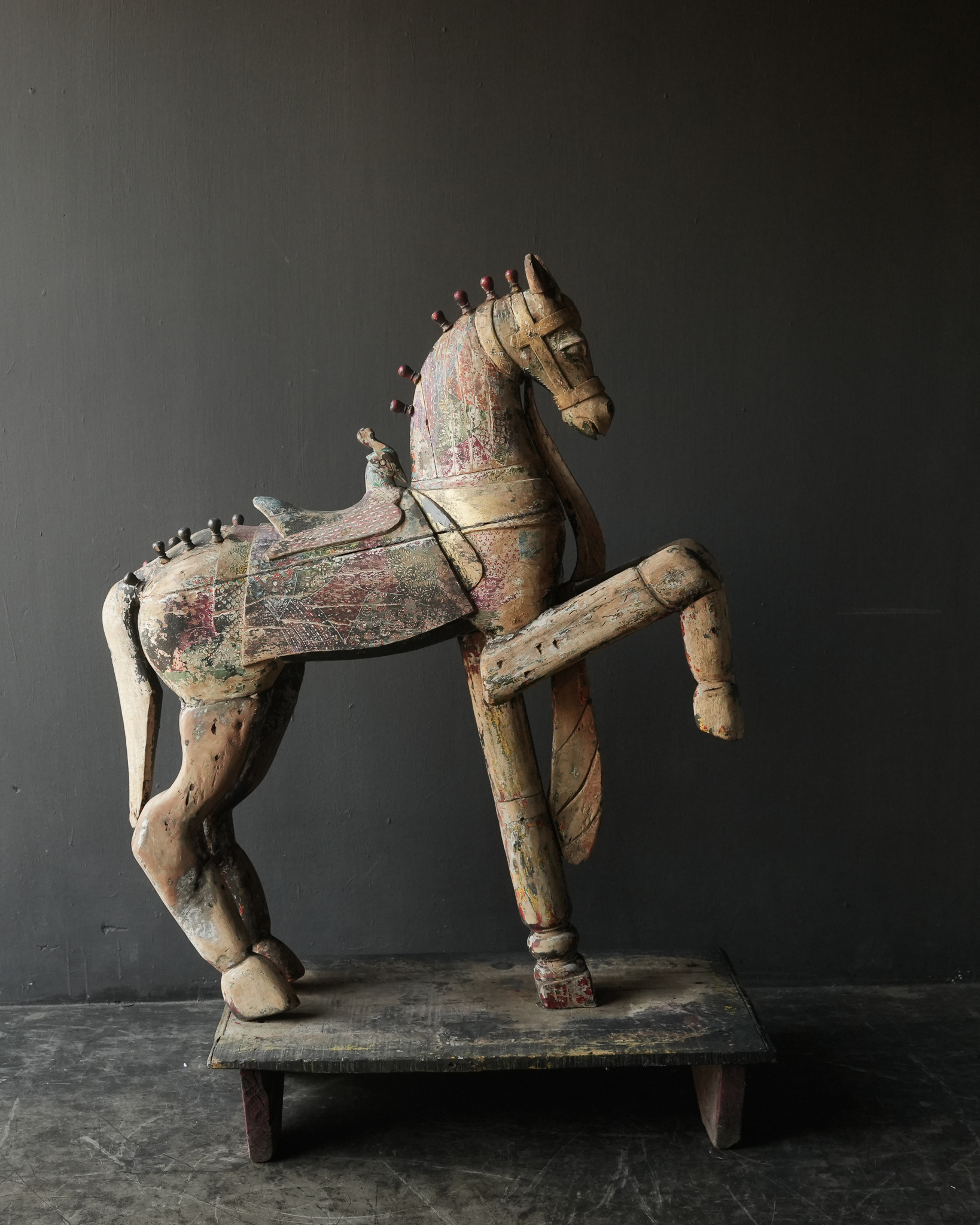 Beautiful large antique worn colored unique wooden horse