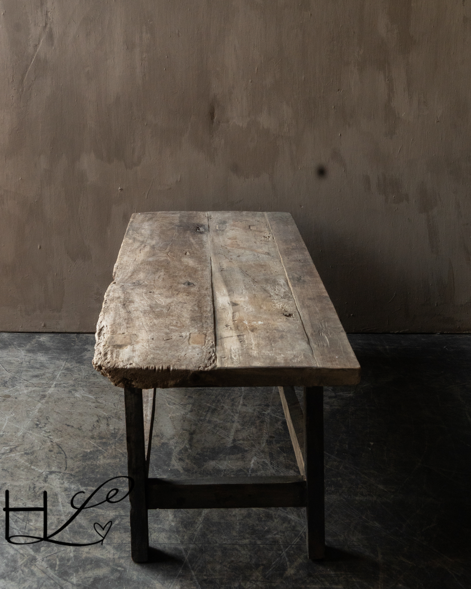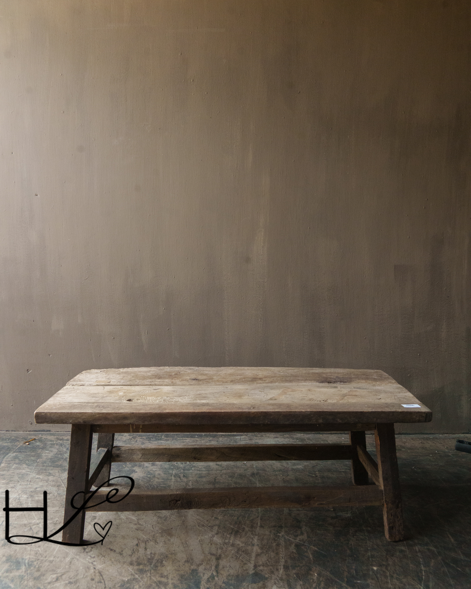 At 120 cm long, this coffee table is perfect for adding ambiance to your living room, but also makes a robust side table or low work table. The warm, weathered wood blends beautifully with both rustic, wabi-sabi, and industrial interiors.