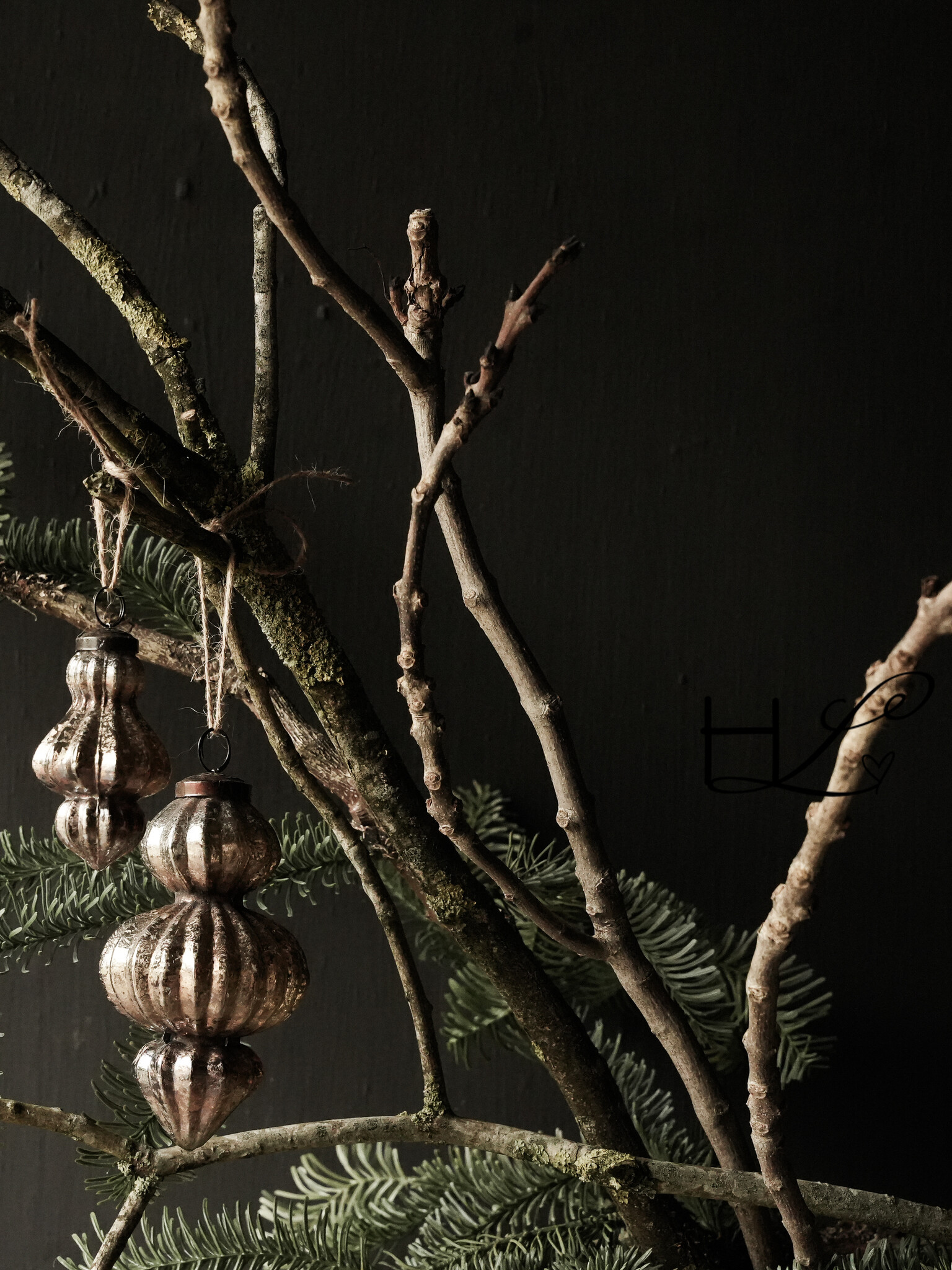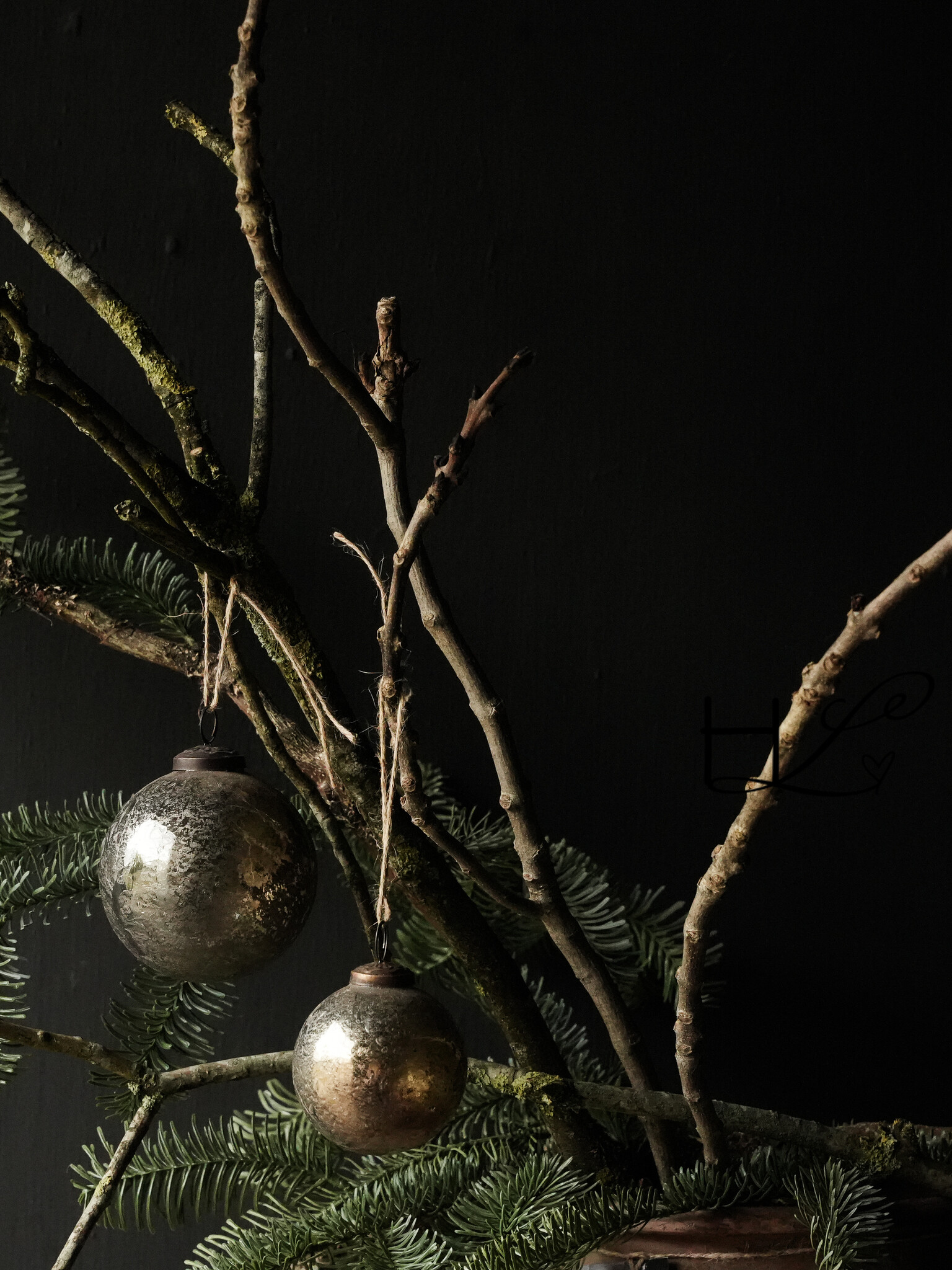 Bring warmth and elegance to your Christmas decor with these stylish glass baubles and ornaments in a soft champagne color. The lightly distressed finish gives them an authentic look – perfect for a rugged, understated, and atmospheric interior.