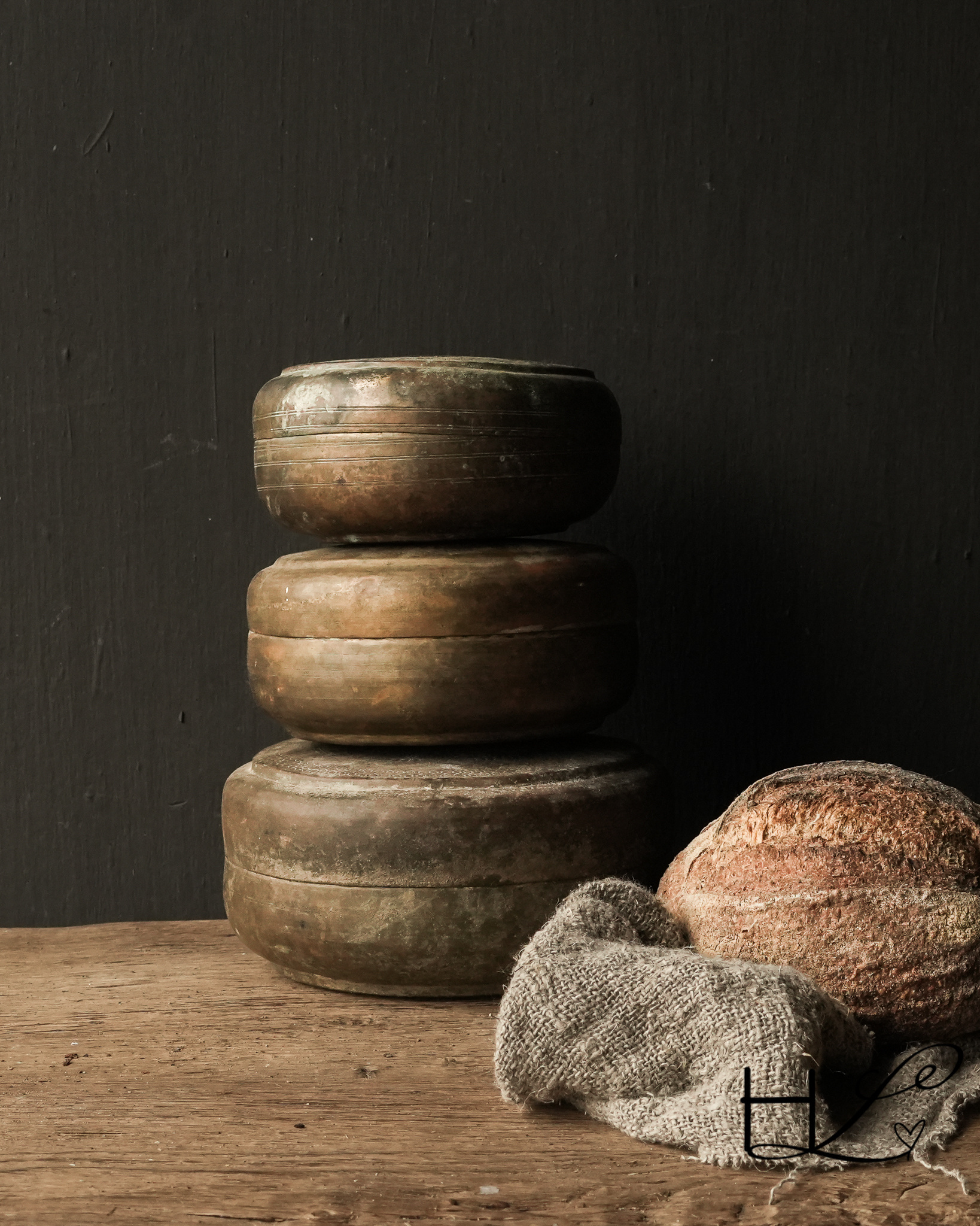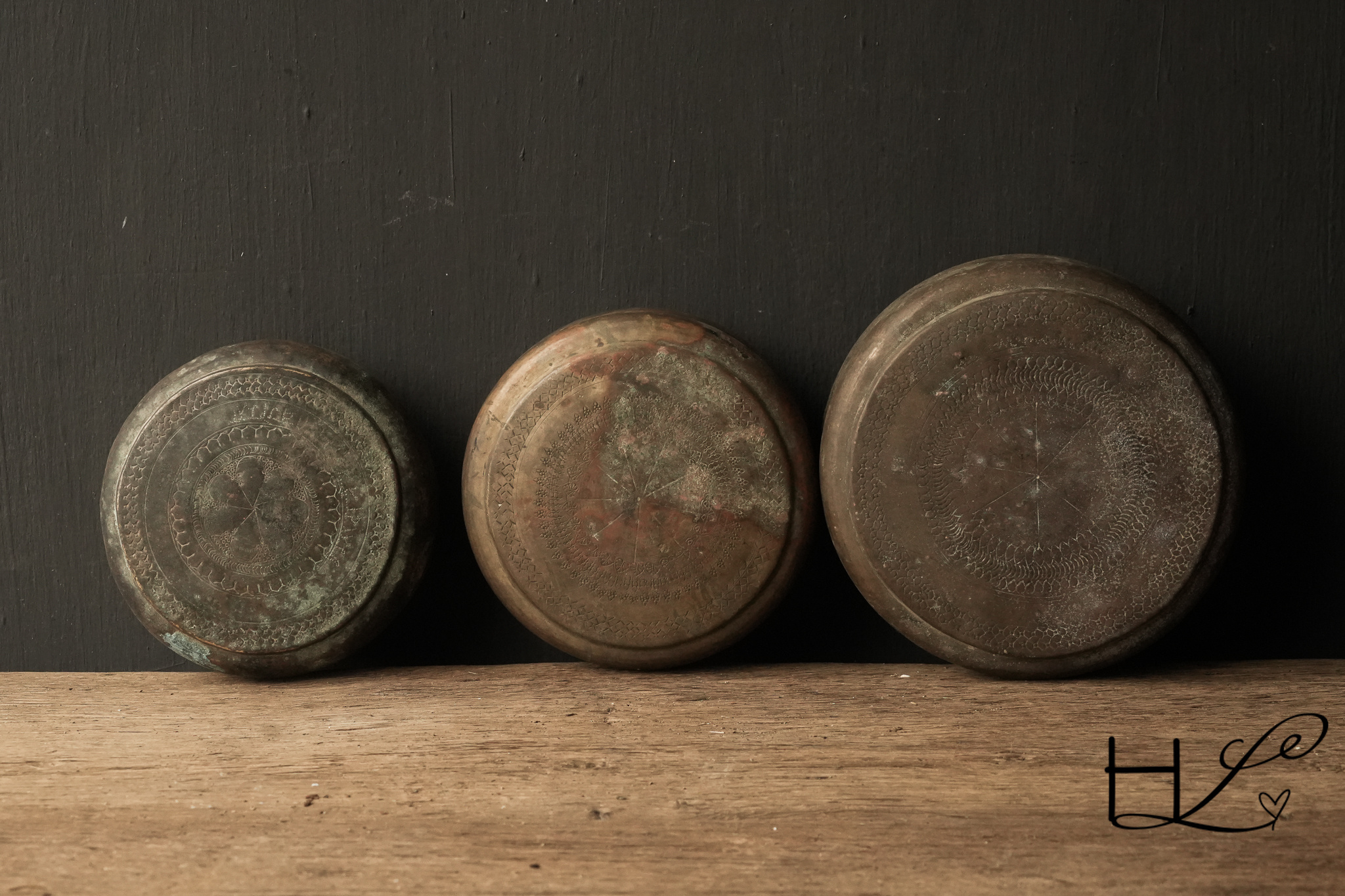 The Indian brass kitchen utensil chest, often referred to as a small chapatti chest, is a beautiful example of craftsmanship and heritage. These vintage storage chests are not only functional but also aesthetically pleasing. They are often used to store small kitchen utensils, spices or knick-knacks. The brass finish gives them a classic and timeless look, making them a favorite among collectors and antique lovers. These chests reflect the rich cultural traditions of India and can serve as a unique decorative piece in a modern kitchen or living room. Their compact size makes them perfect for organizing small items while adding a touch of history and elegance to your interior.