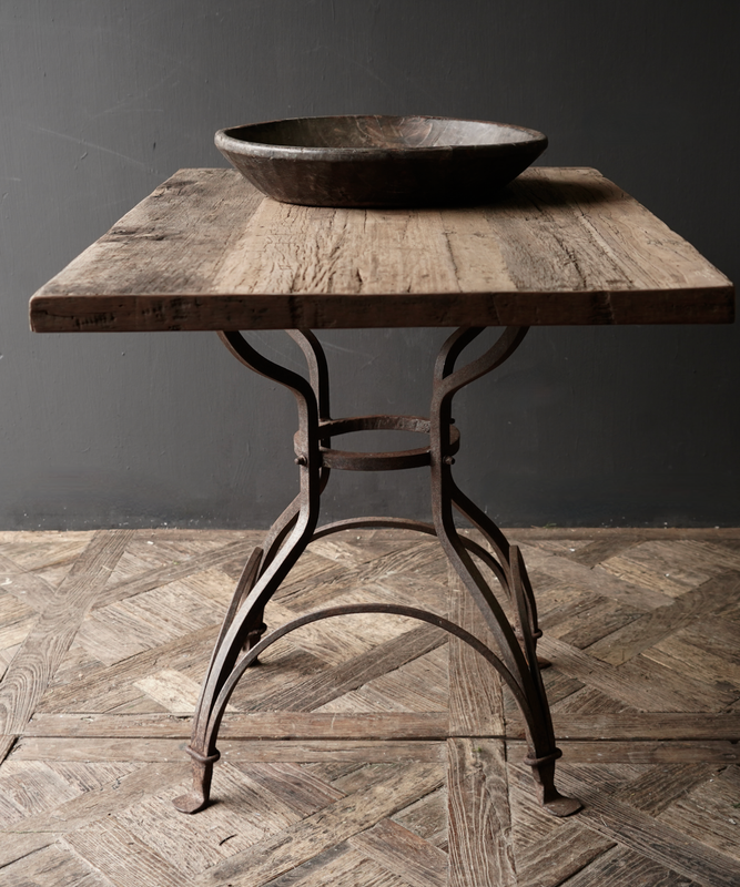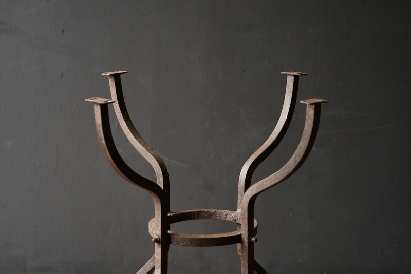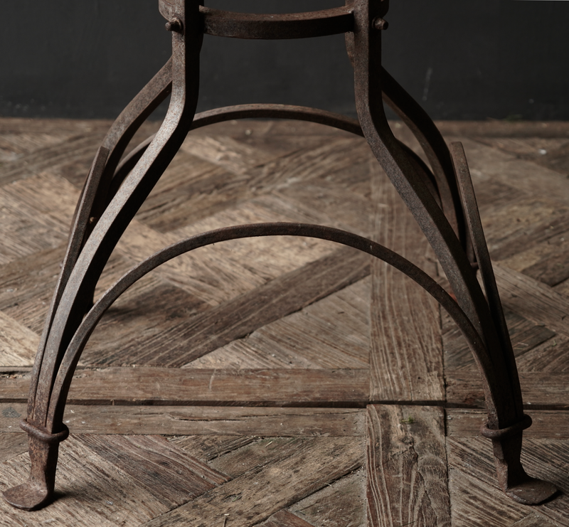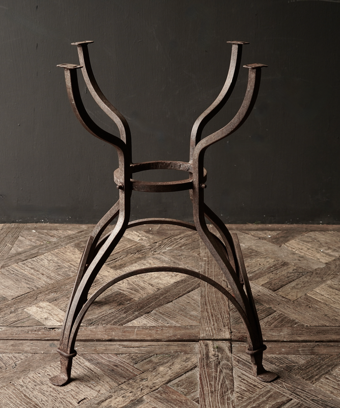 This sturdy iron table base has a robust and industrial look. The graceful lines in the design give it a subtle classic character, allowing the base to look stunning with both an old wooden top and a modern marble or glass top.