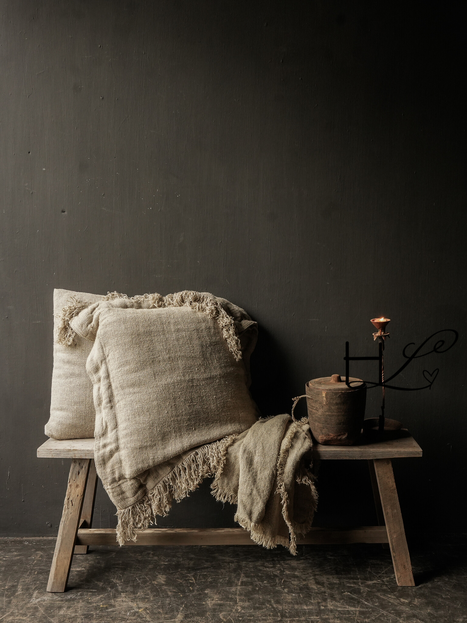 A masterpiece in the way of weaving. Because with this handwoven cushion in the size 70x70 you get something in Home.. this heavy quality 100% linen cushion from the Vlaszz collection fits everywhere. In the bedroom, outside in the lounge set or in the living room.. or even on the floor. Is it an eye-catcher for the eye. finallyelse fringes give the cushion the finally touch!