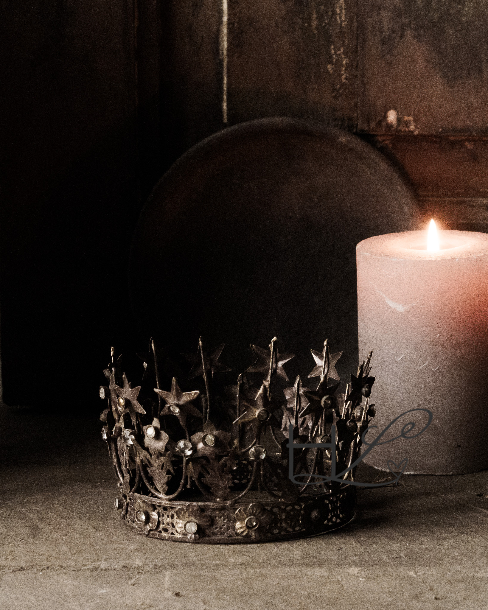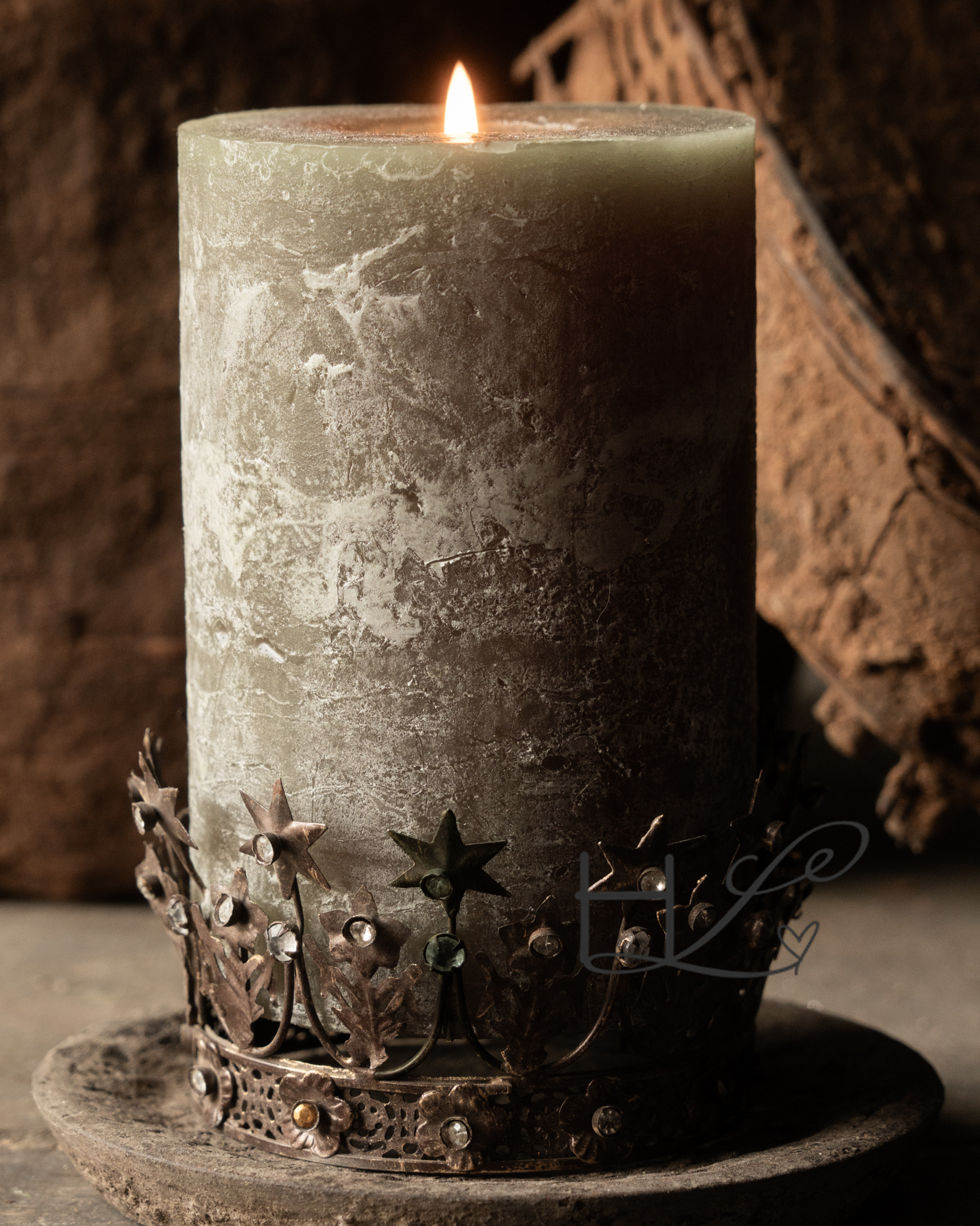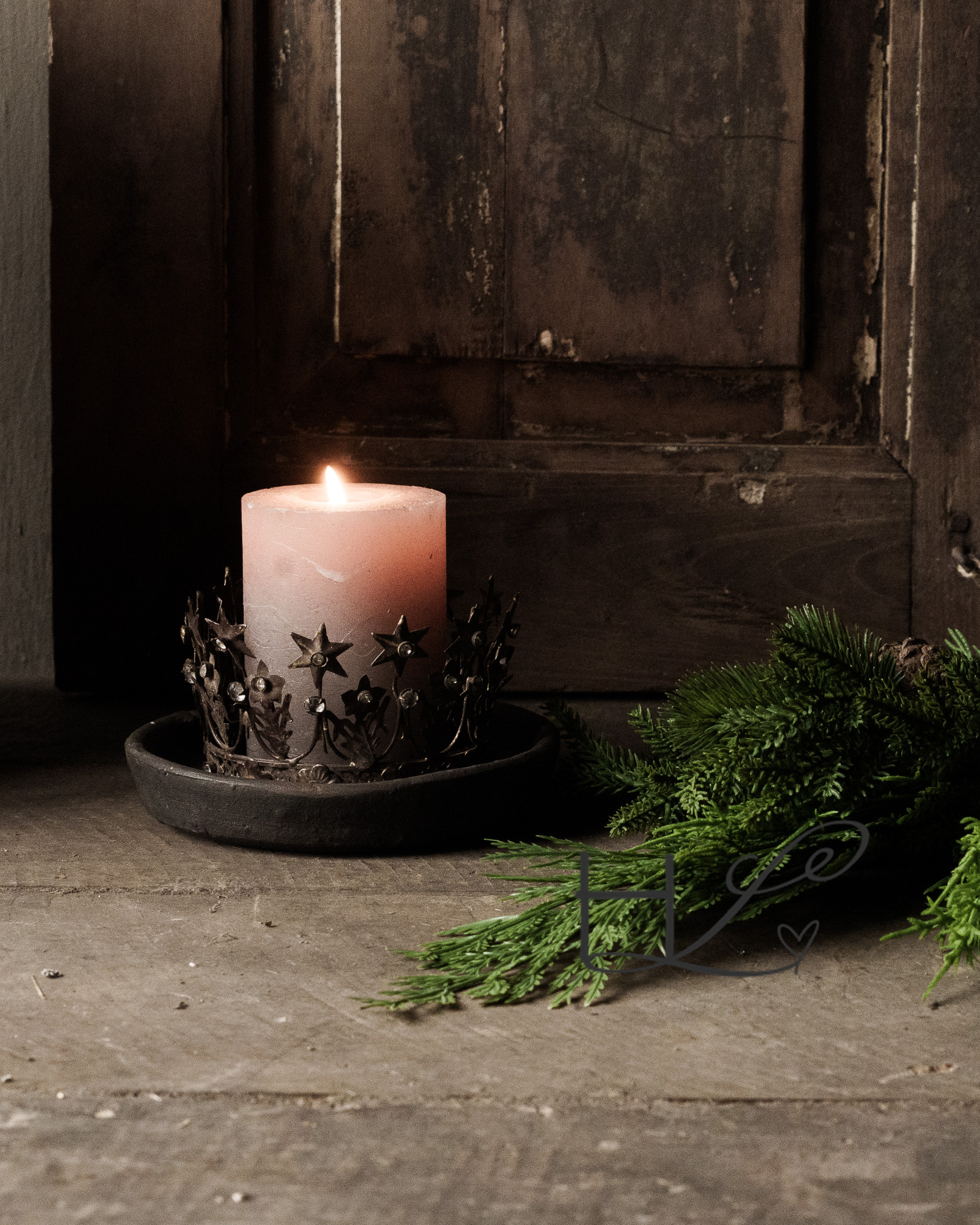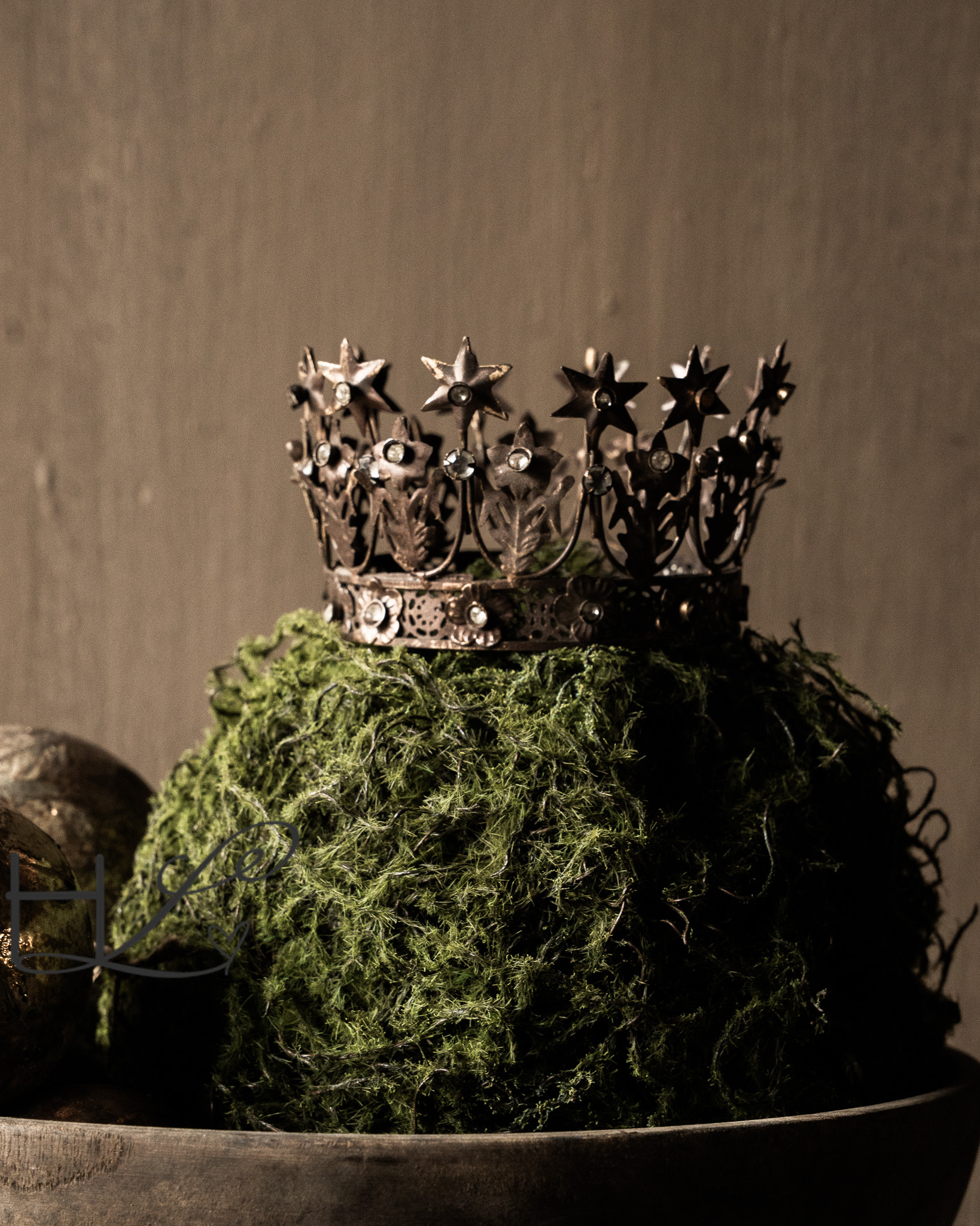 A beautiful metal crown in antique bronze. With its delicate stars and decorative details, this is an atmospheric piece that makes a pillar candle or lantern extra special. The crown adds a touch of elegance and a robust, understated look to your interior.