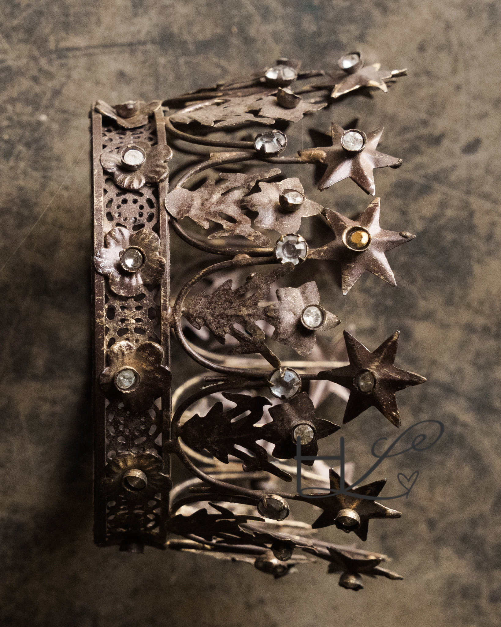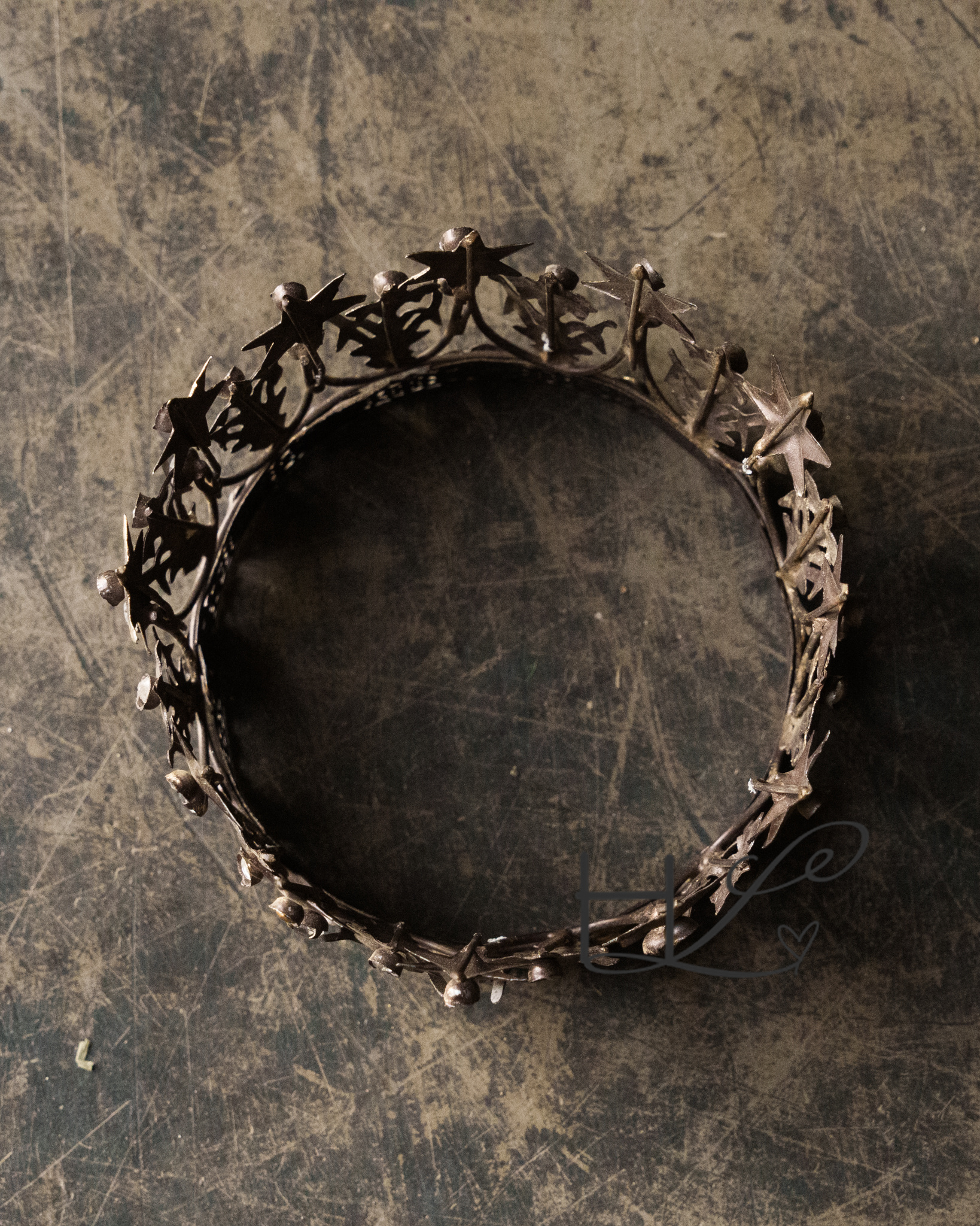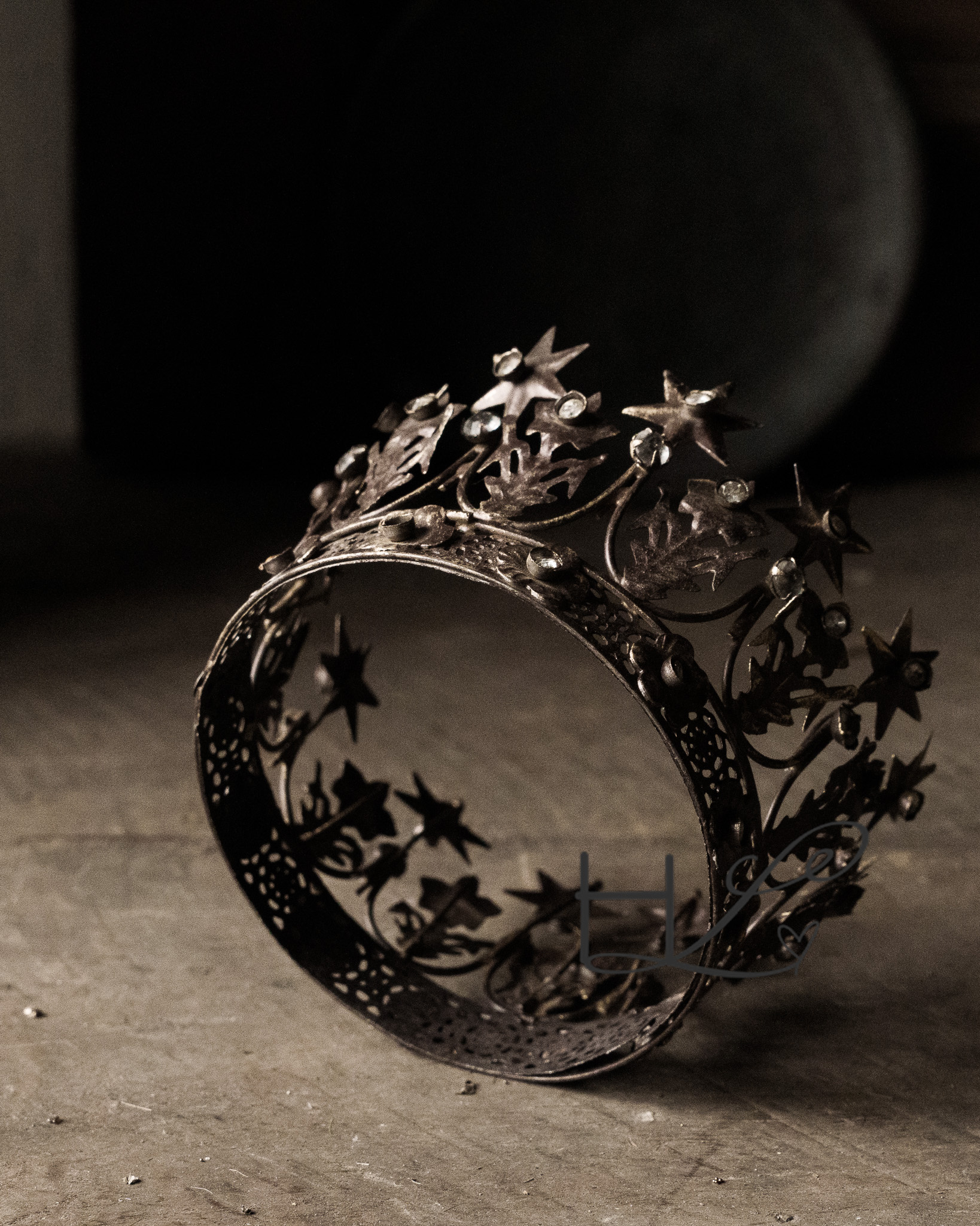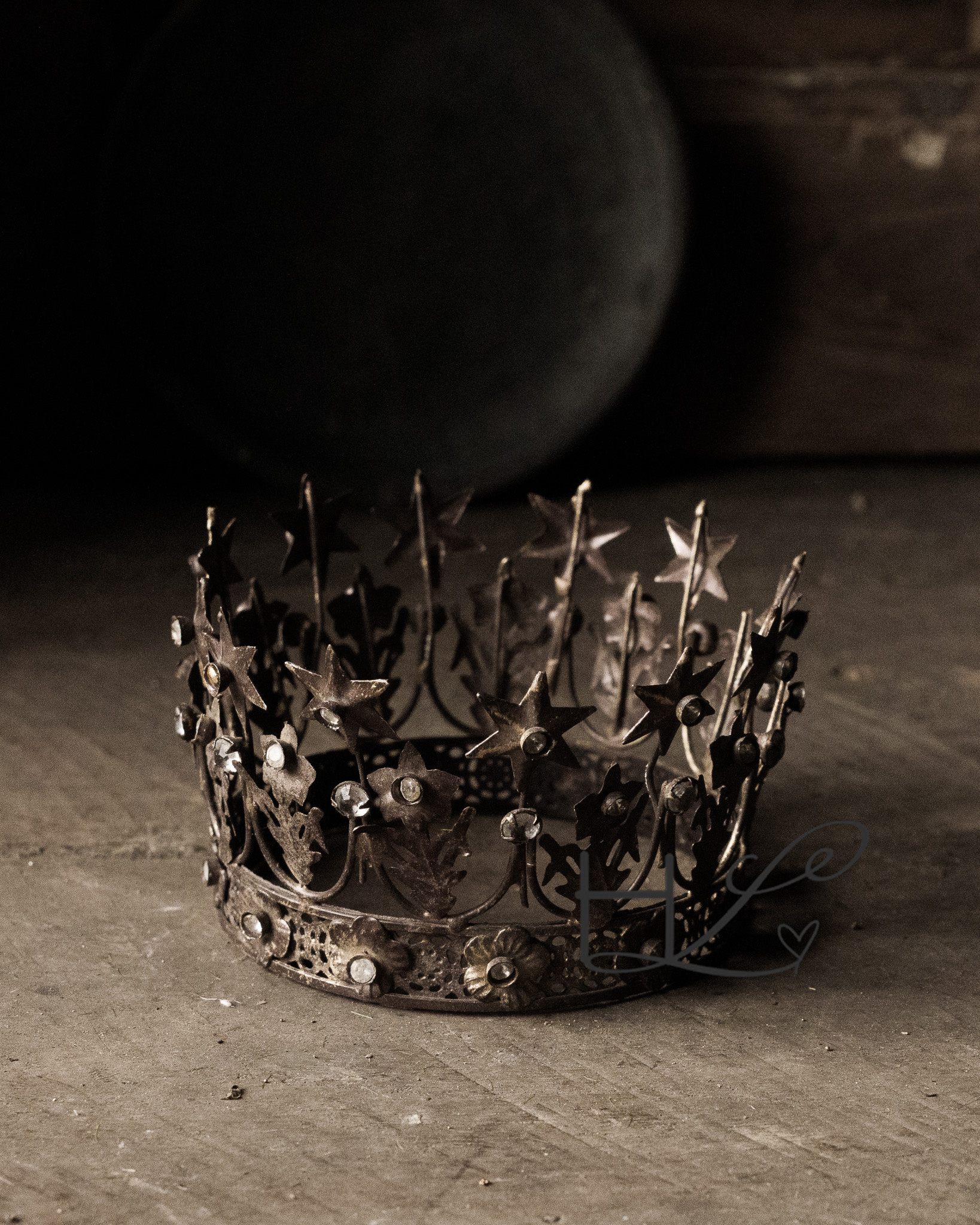 A beautiful metal crown in antique bronze. With its delicate stars and decorative details, this is an atmospheric piece that makes a pillar candle or lantern extra special. The crown adds a touch of elegance and a robust, understated look to your interior.